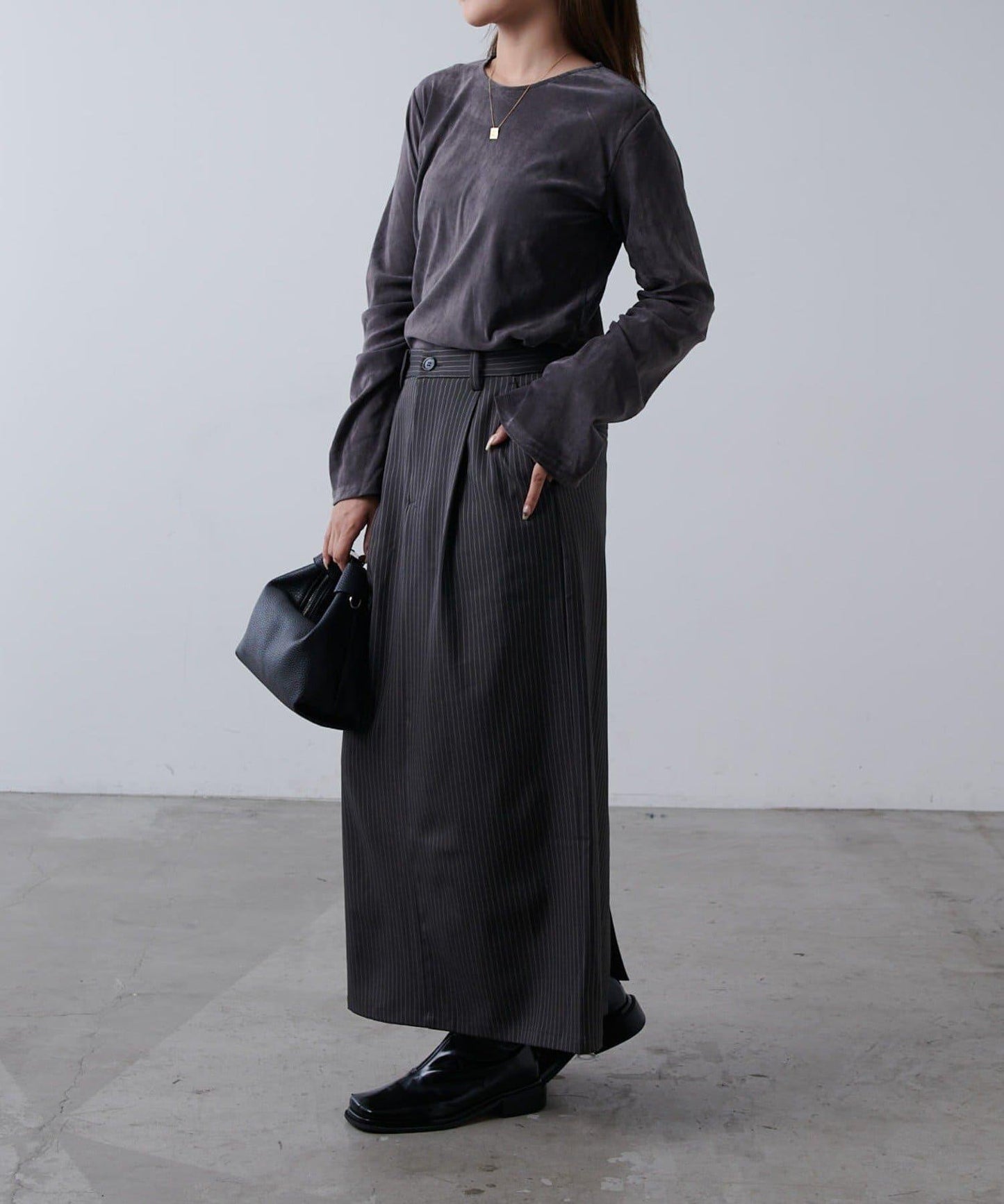 面料光滑、抗皺,具有修飾下半身的效果。