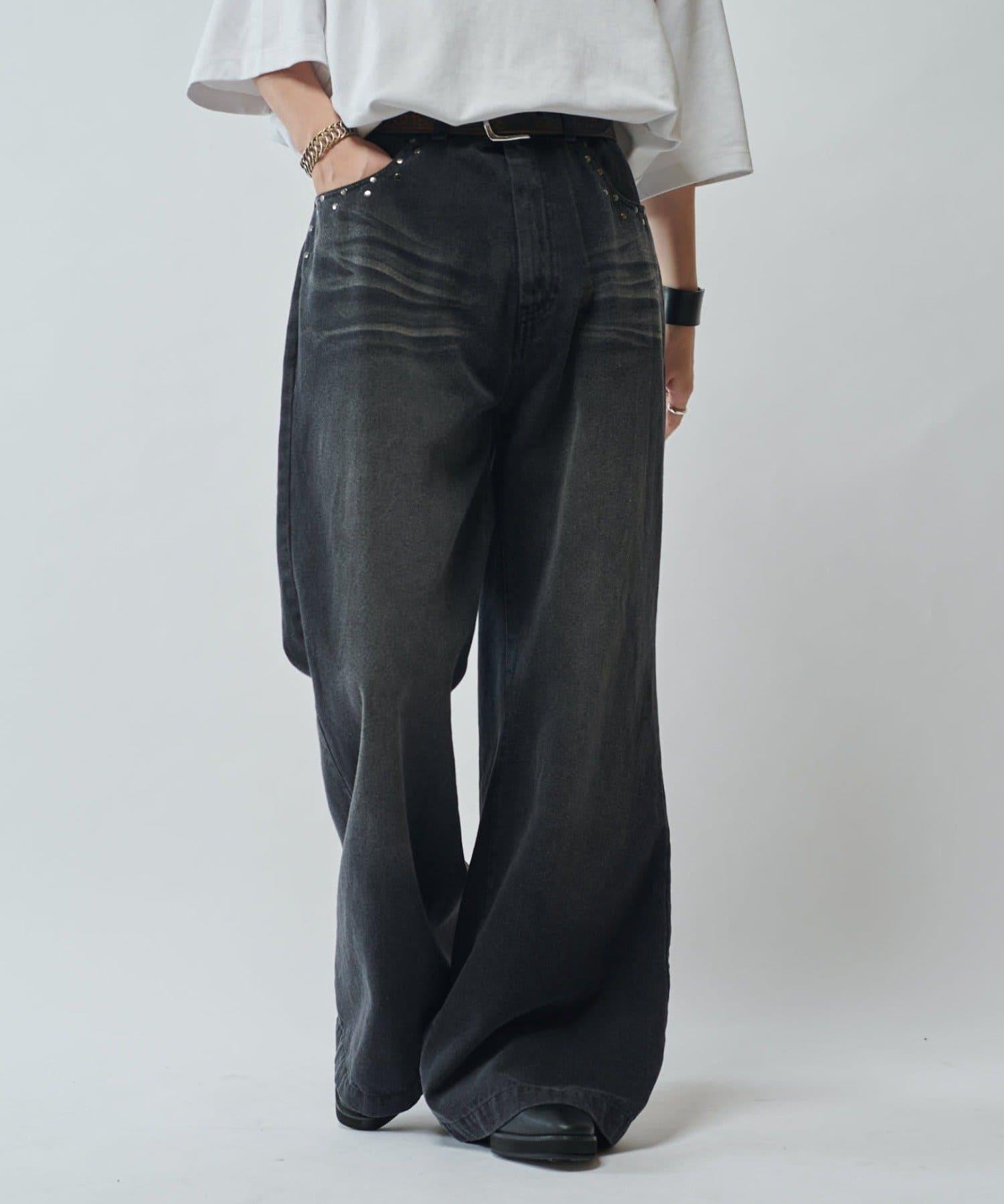 【Lui's】【SURJENT】 鉚釘寬鬆直筒牛仔褲