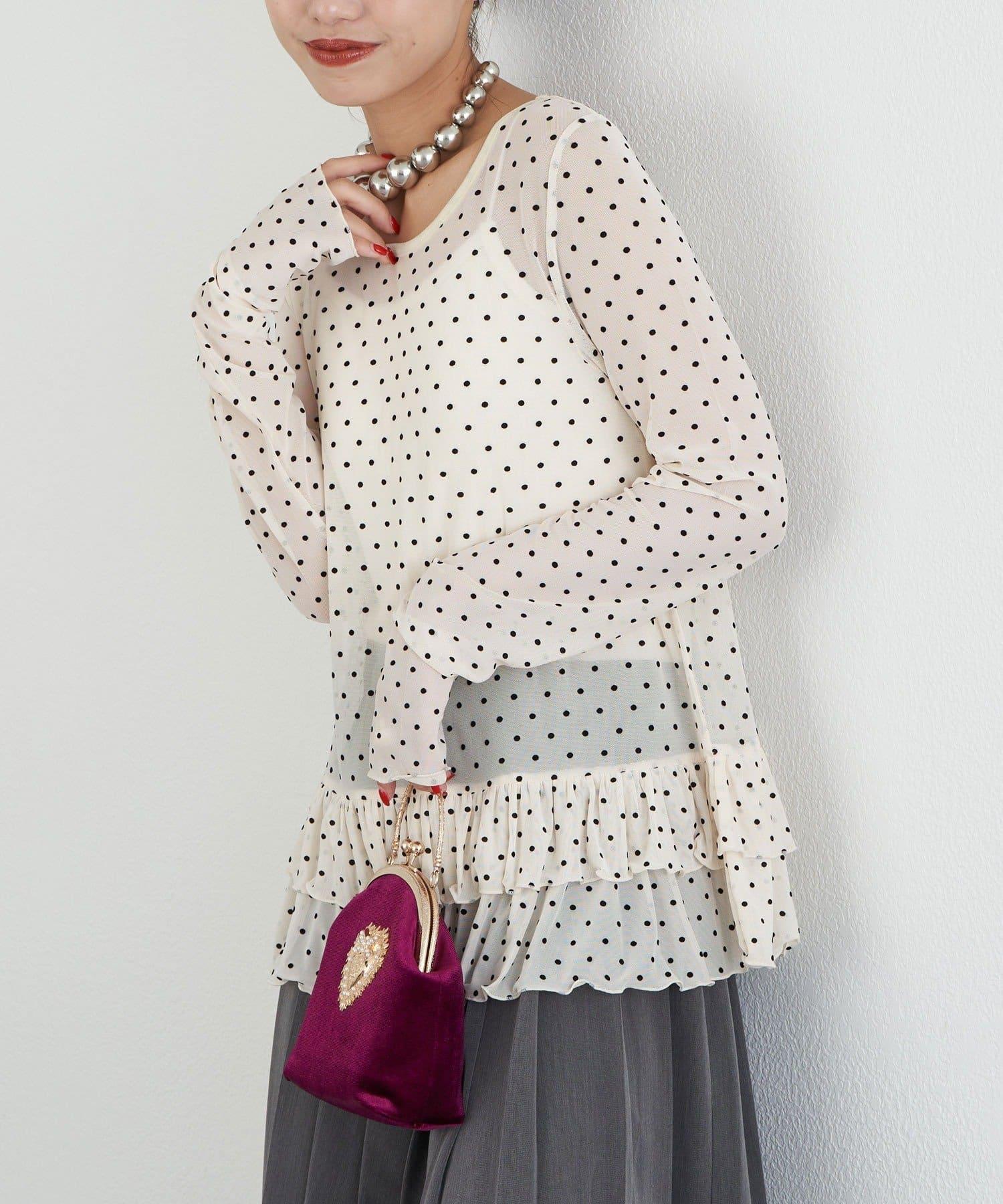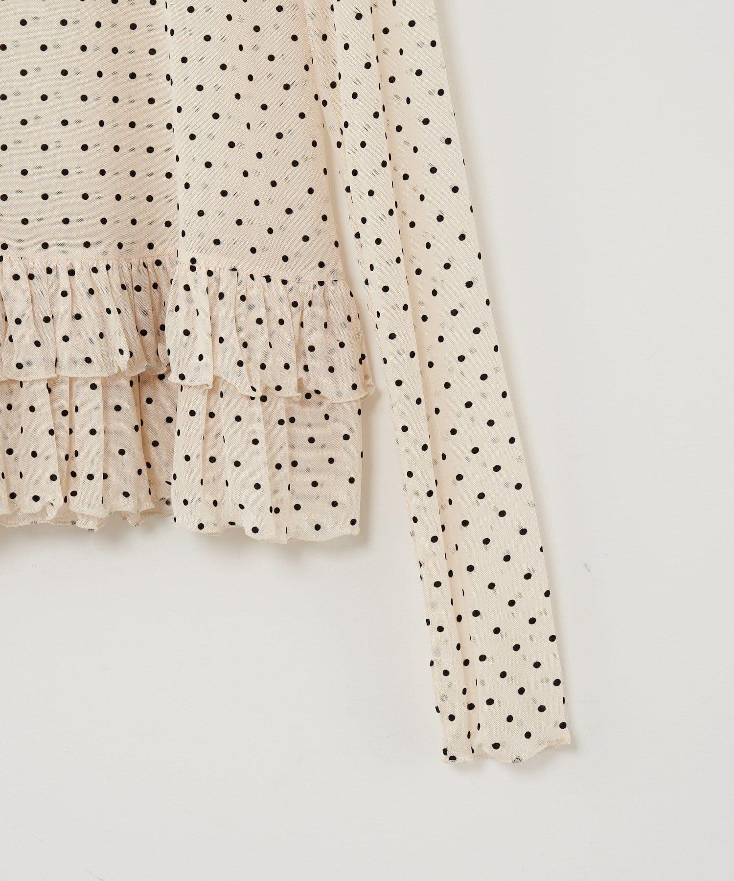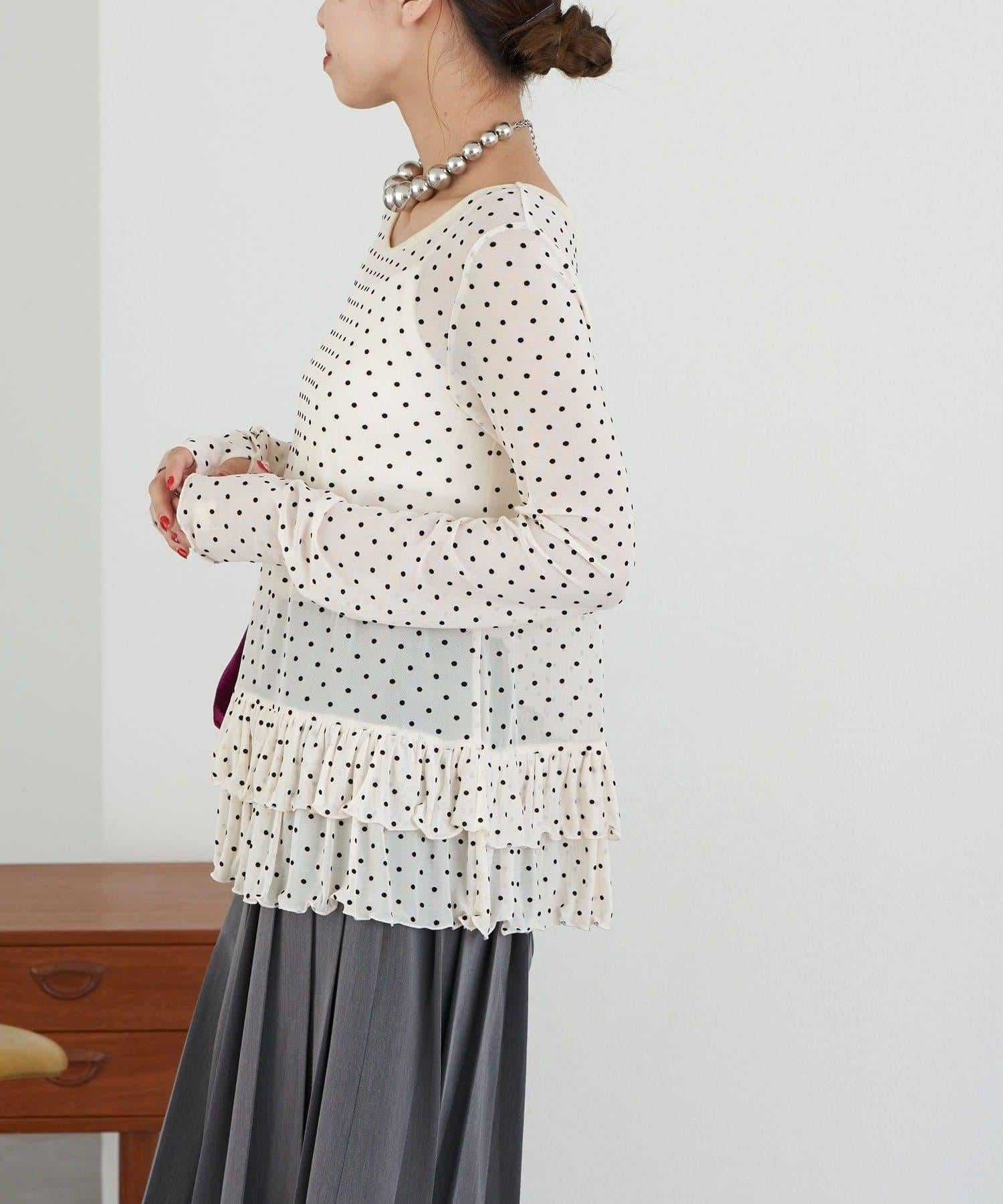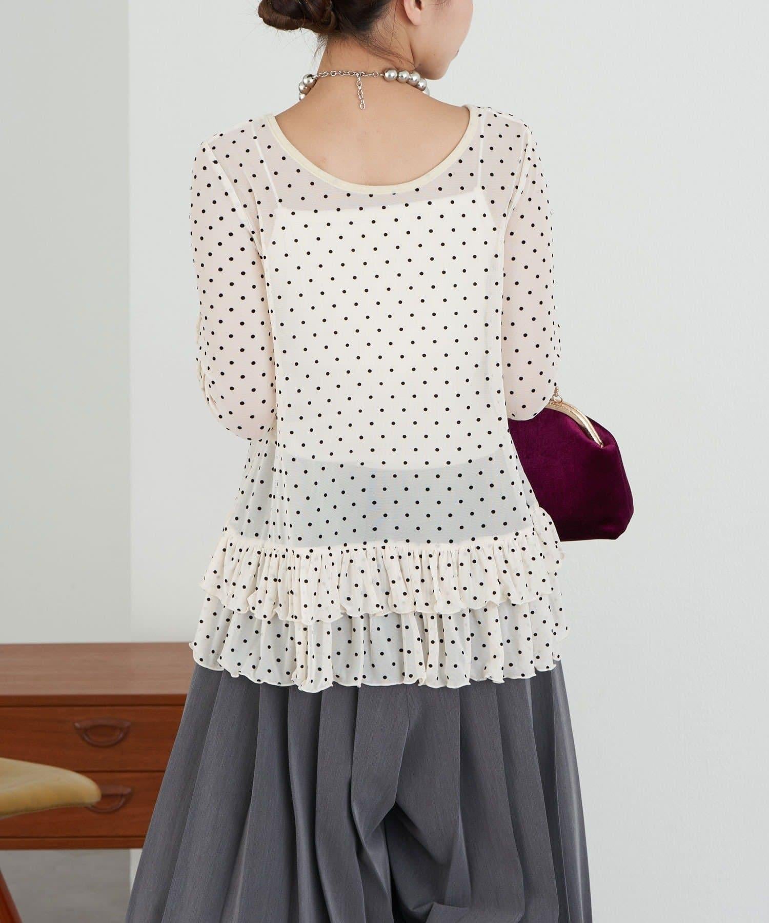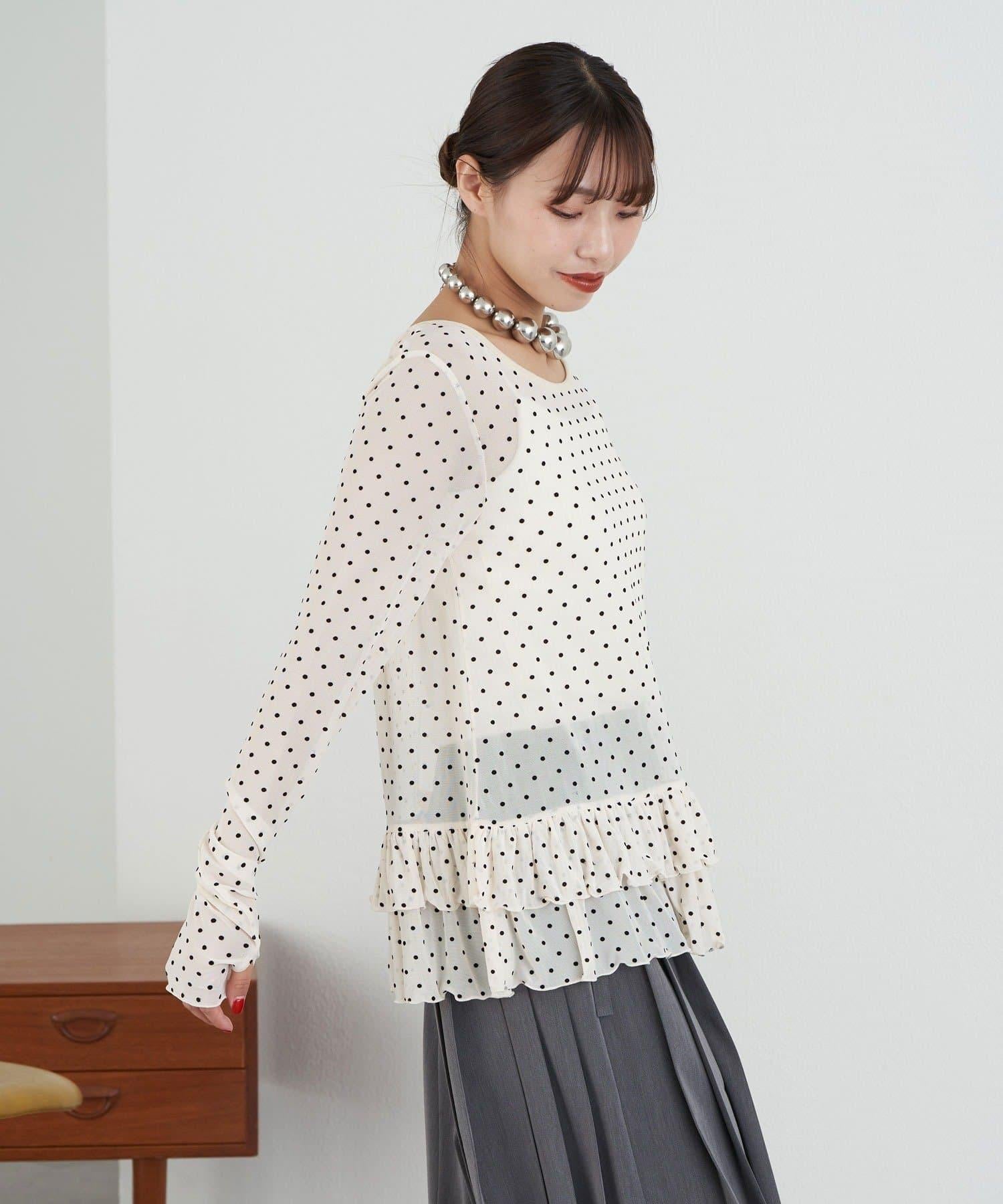 【Lumé/ルメ】下襬荷葉邊圓點雪紡上衣