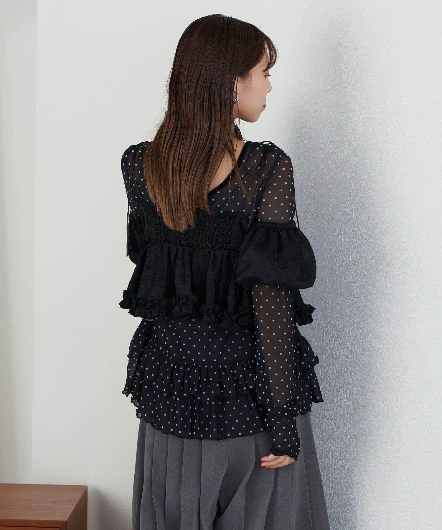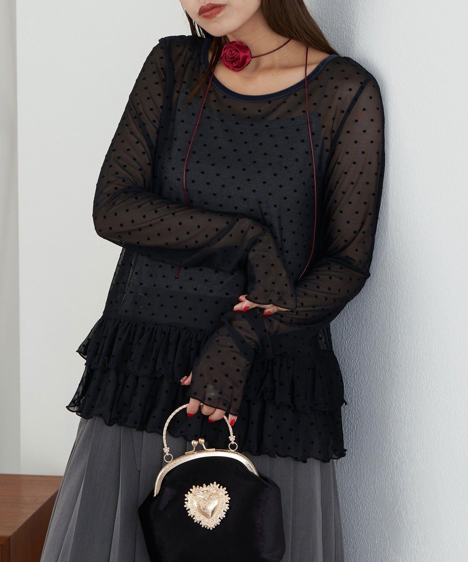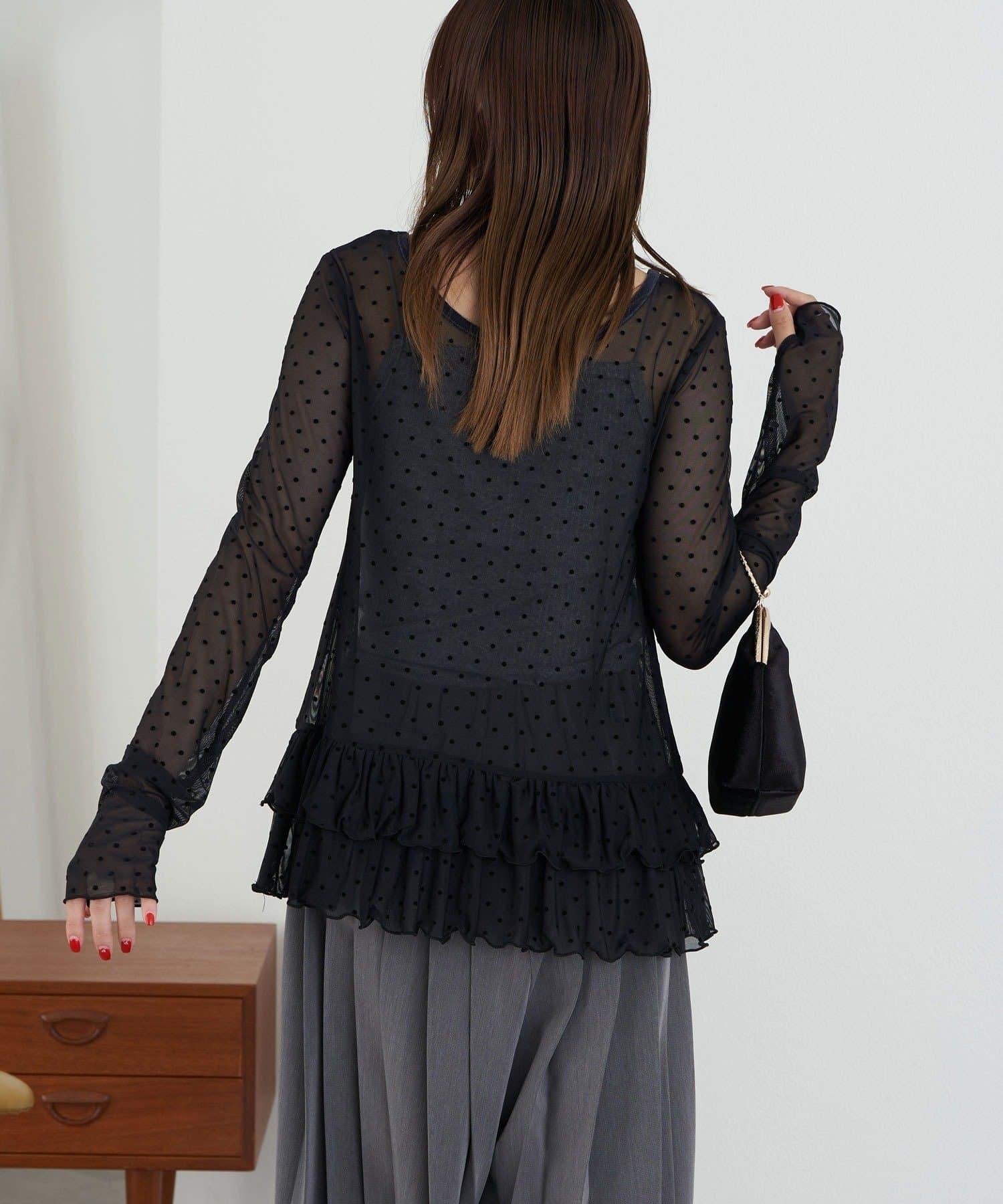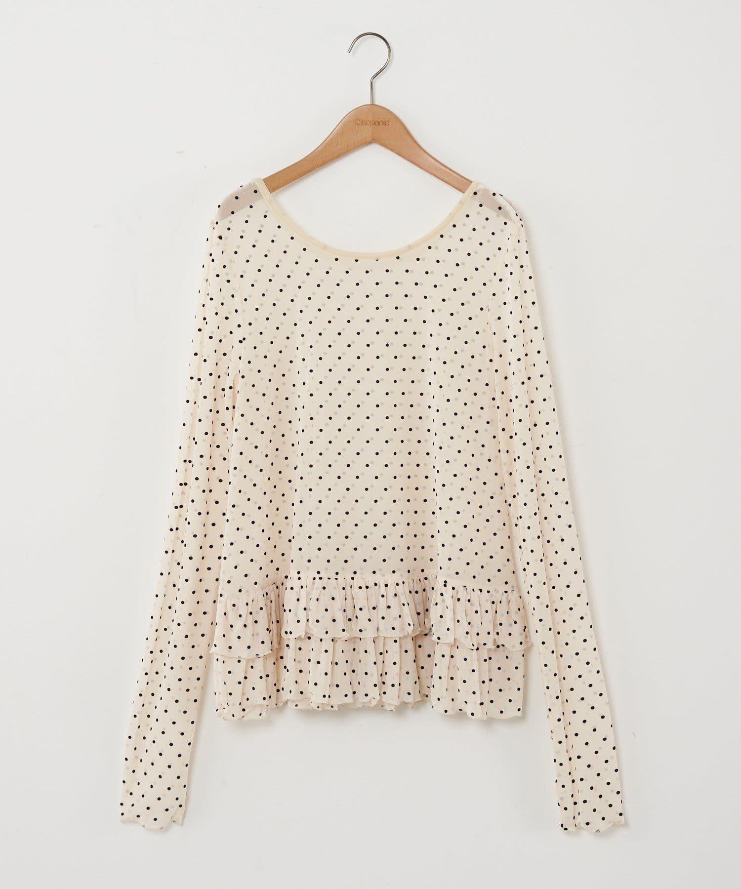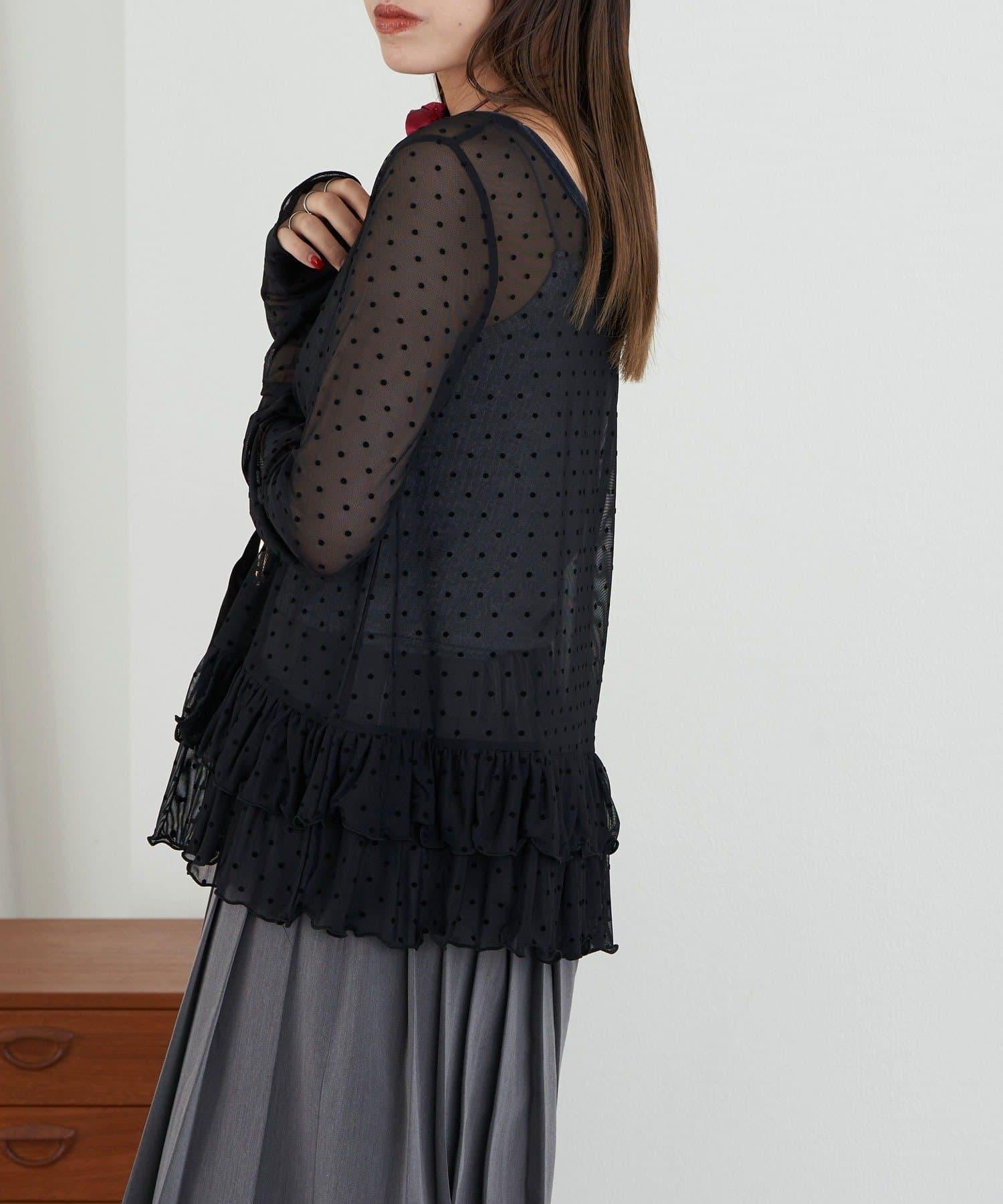 【Lumé/ルメ】下襬荷葉邊圓點雪紡上衣