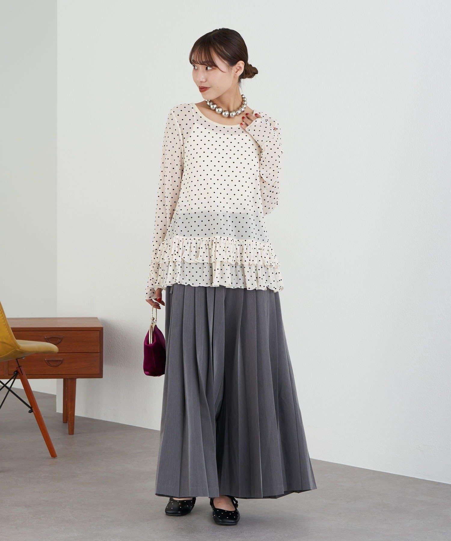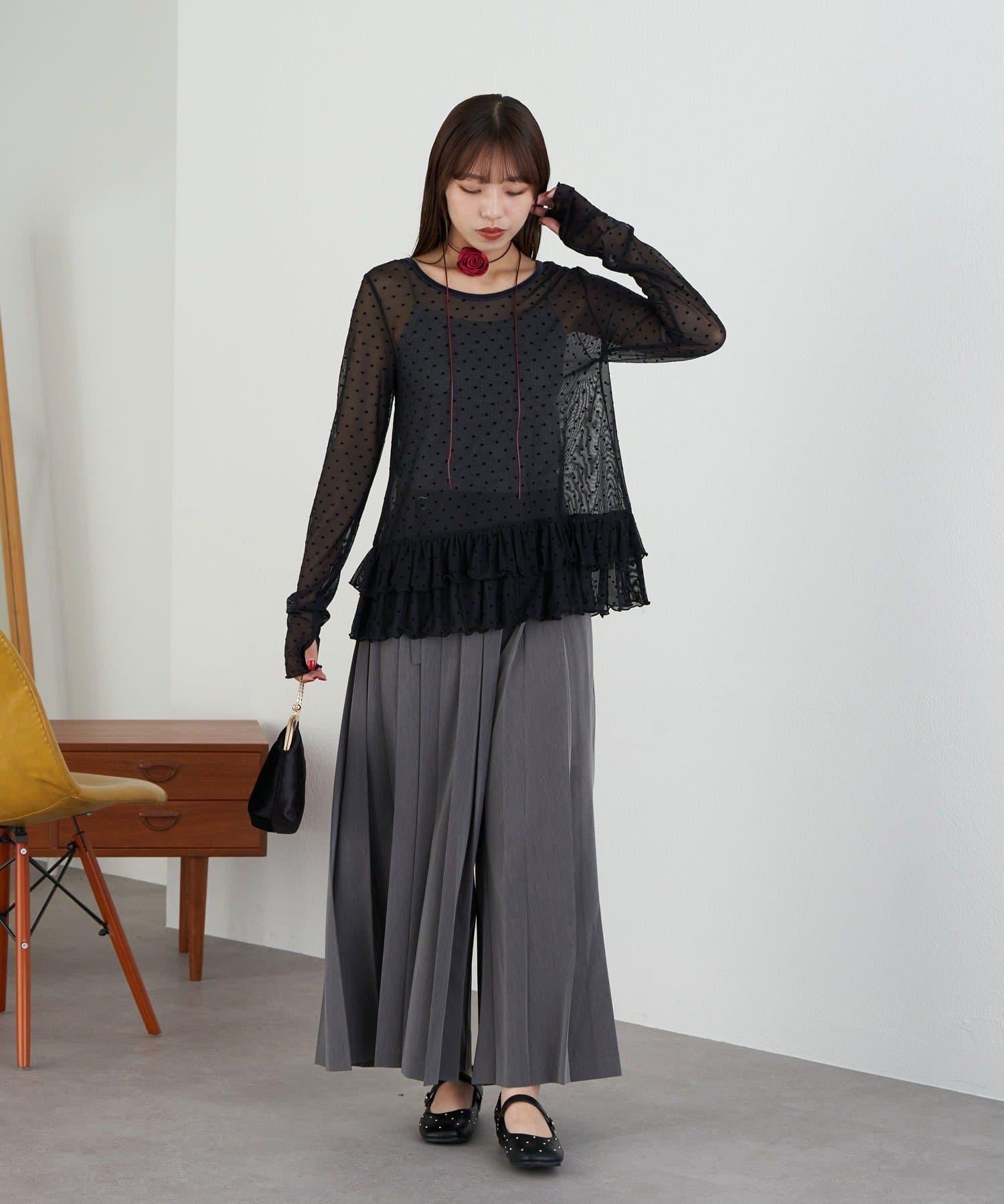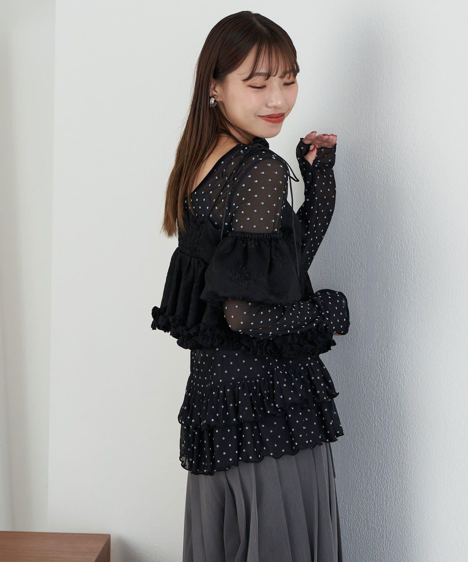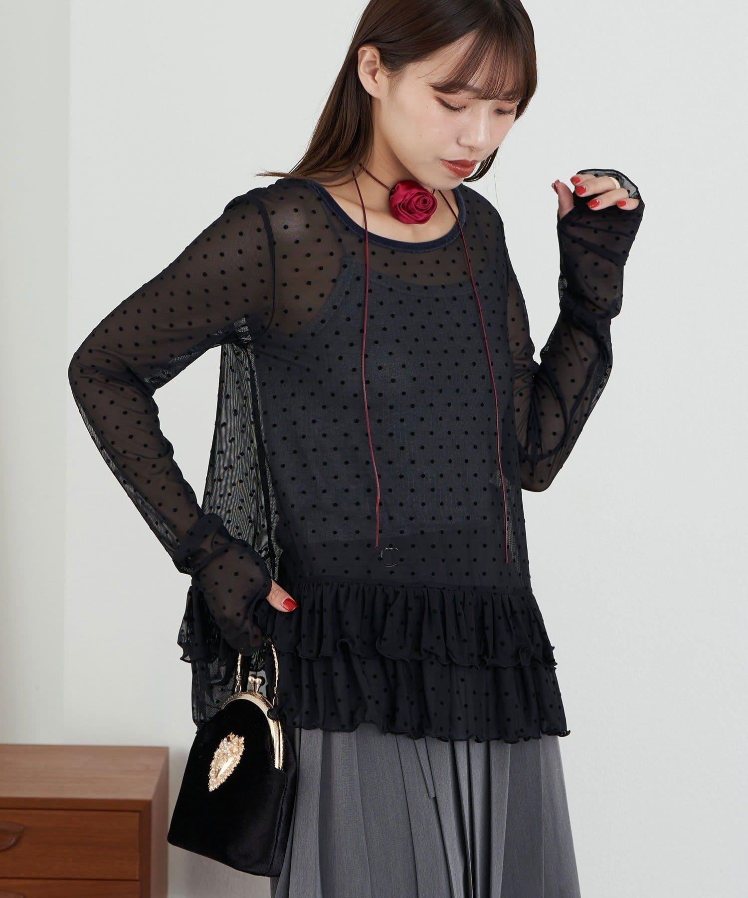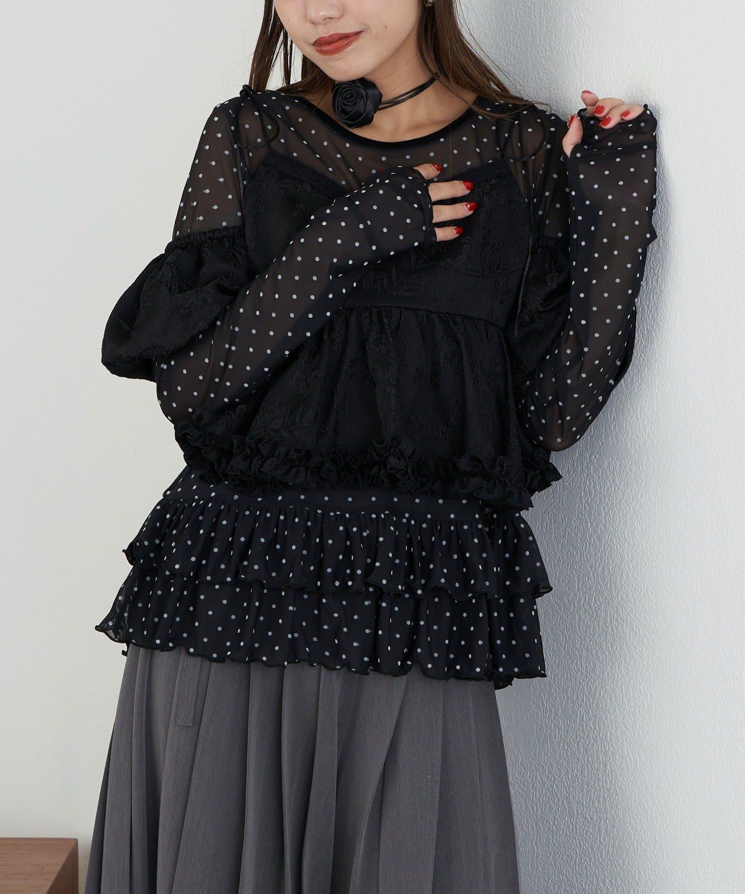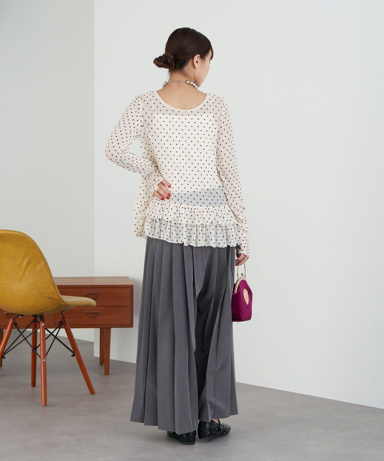 【Lumé/ルメ】下襬荷葉邊圓點雪紡上衣
