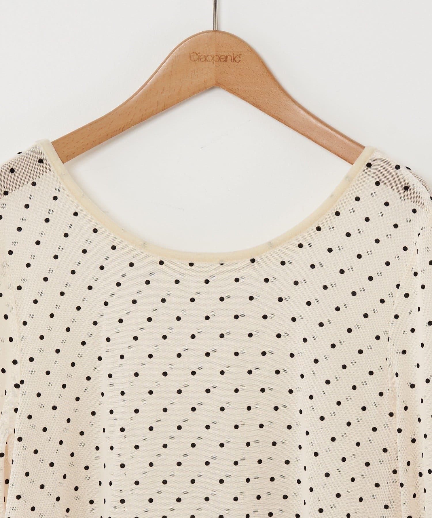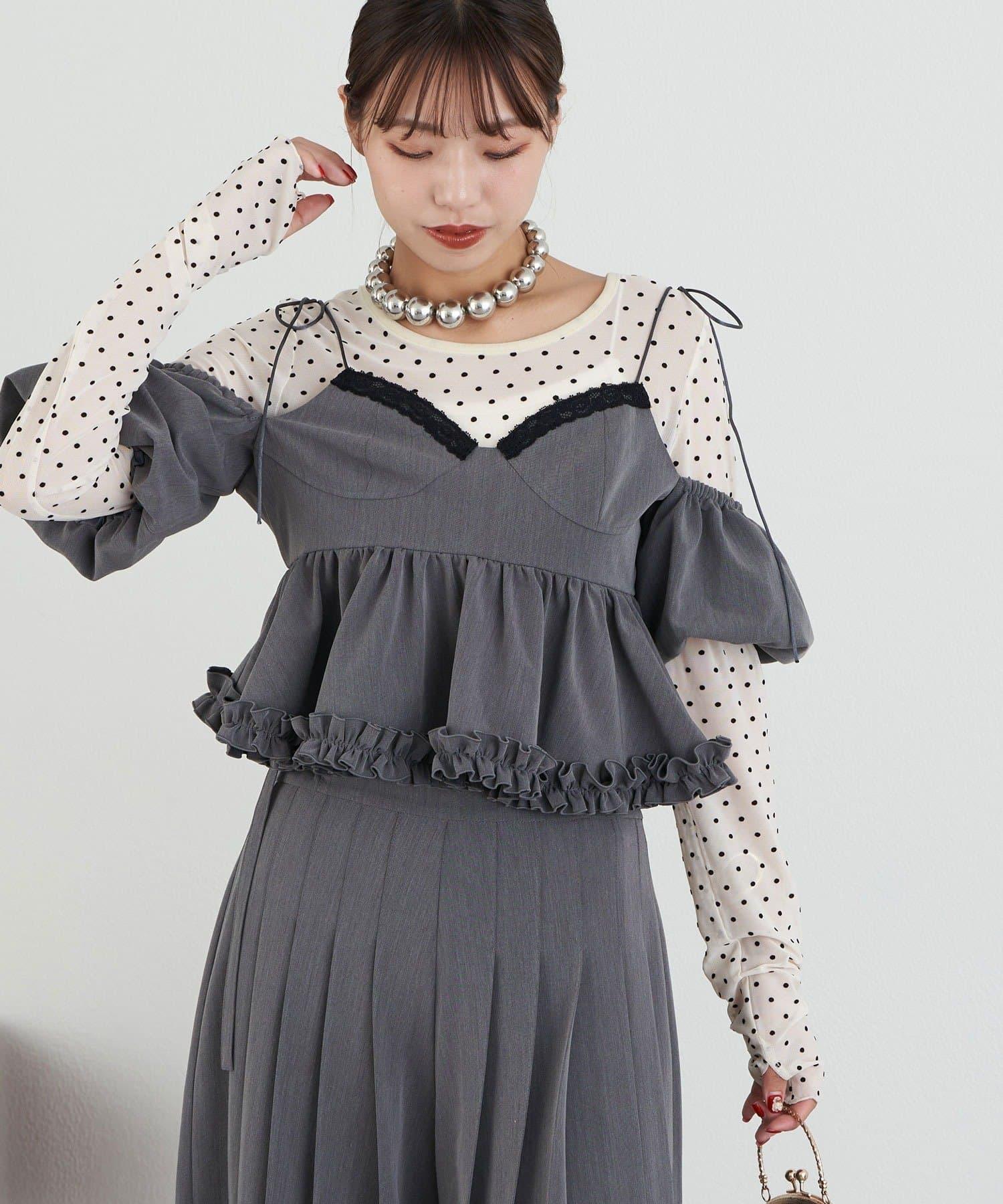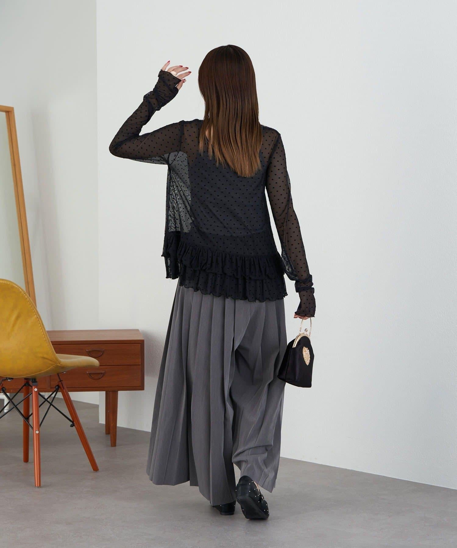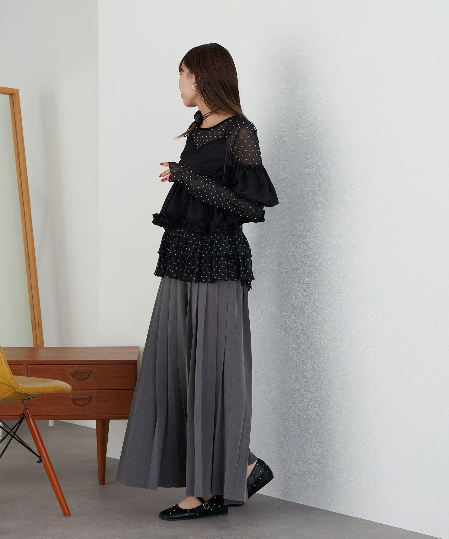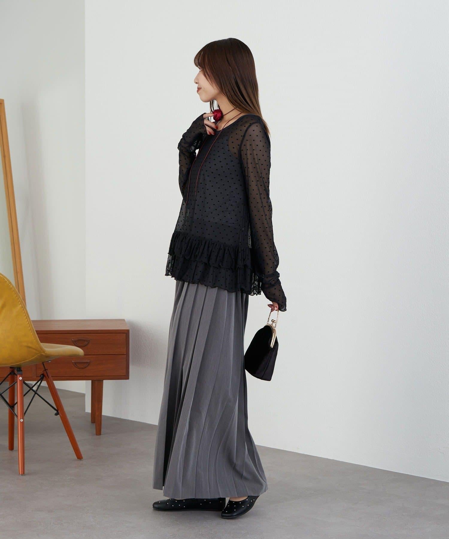 【Lumé/ルメ】下襬荷葉邊圓點雪紡上衣