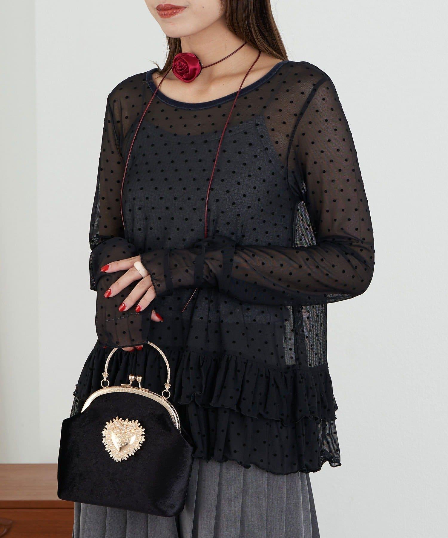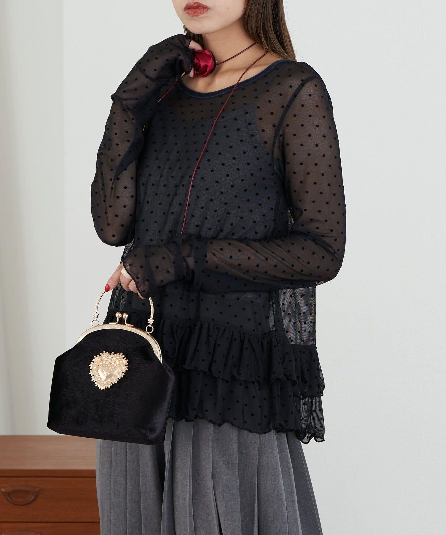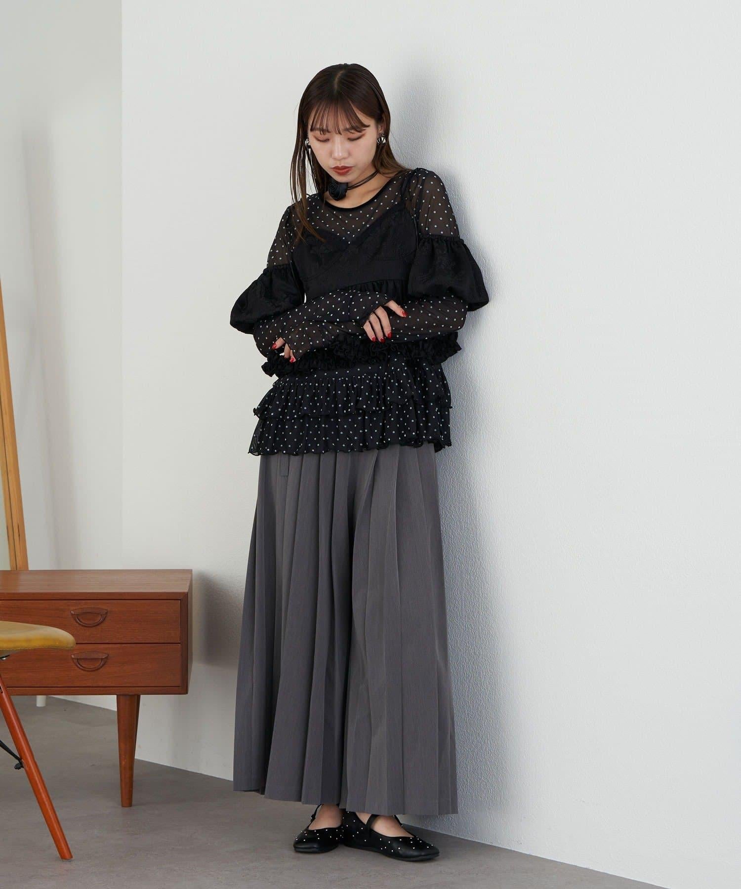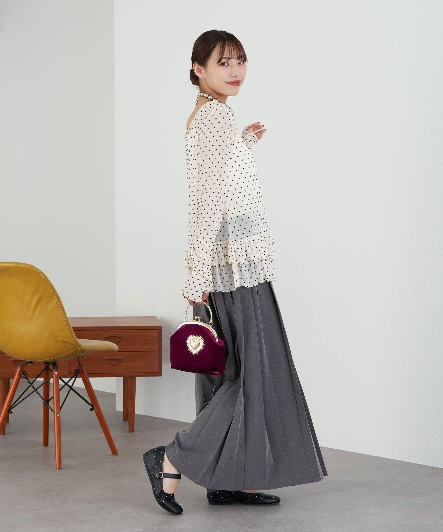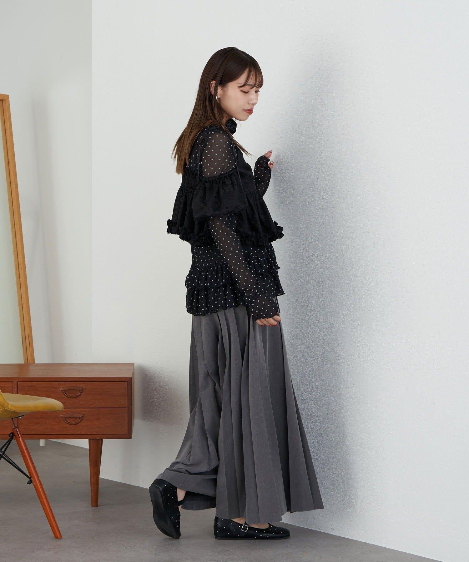 【Lumé/ルメ】下襬荷葉邊圓點雪紡上衣