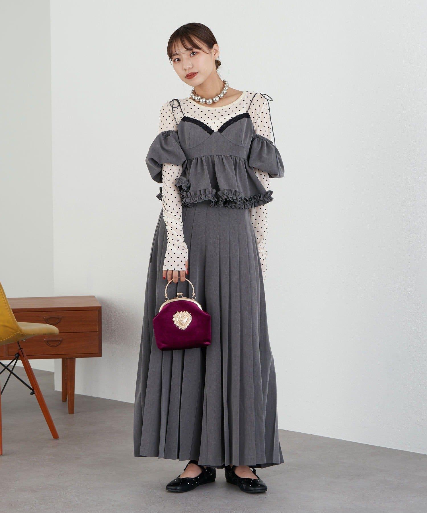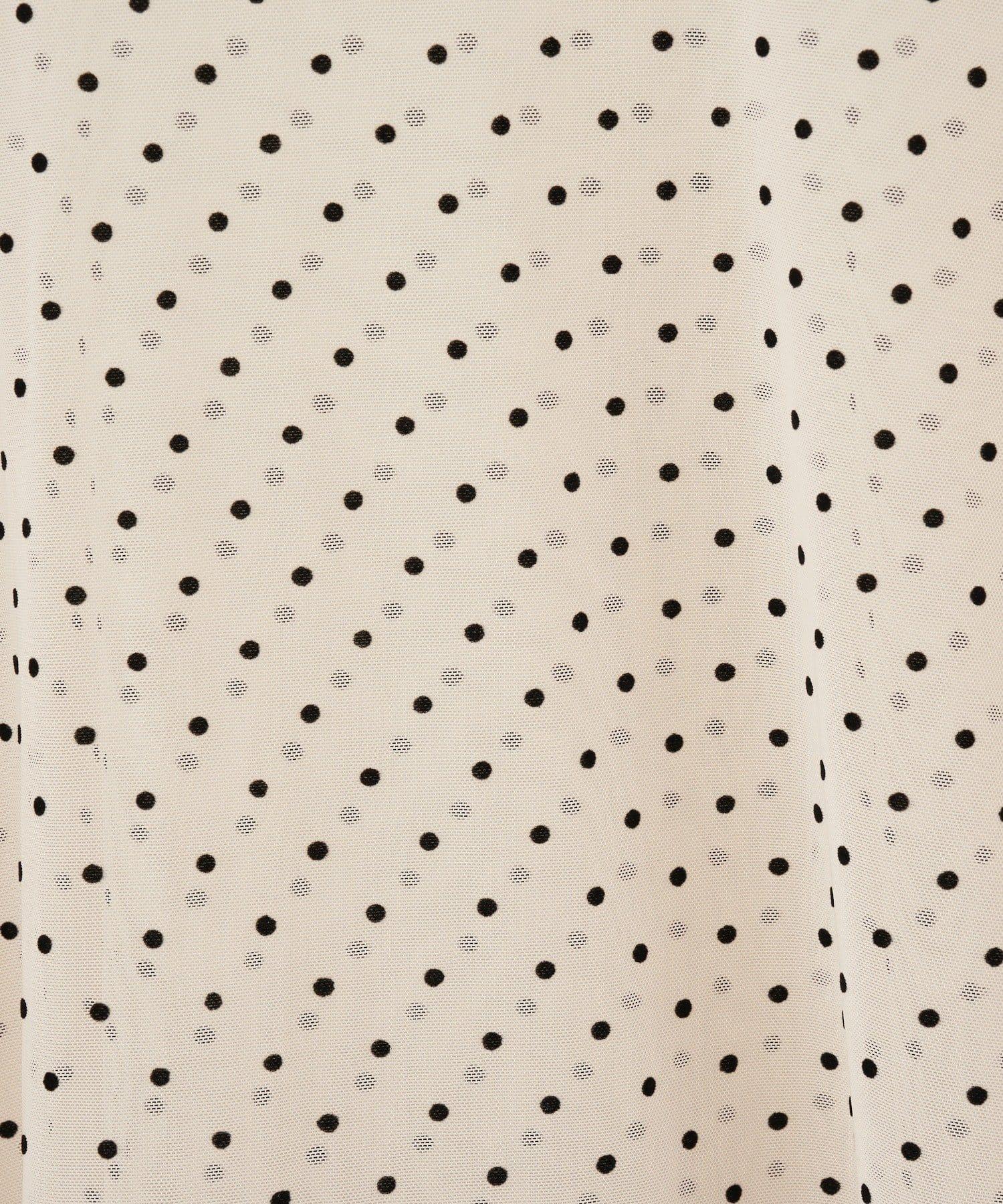 兩層下襬營造出蓬鬆感,絲絨植絨圓點讓它看起來貴氣十足。