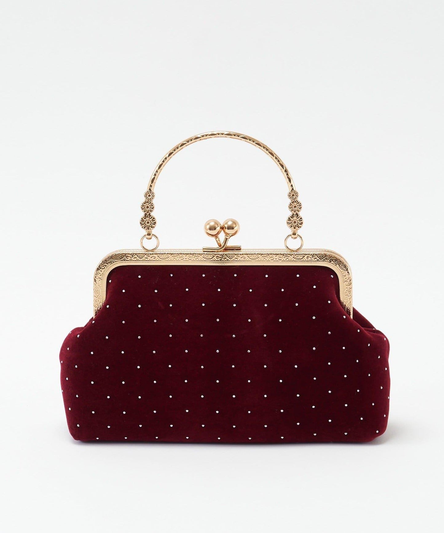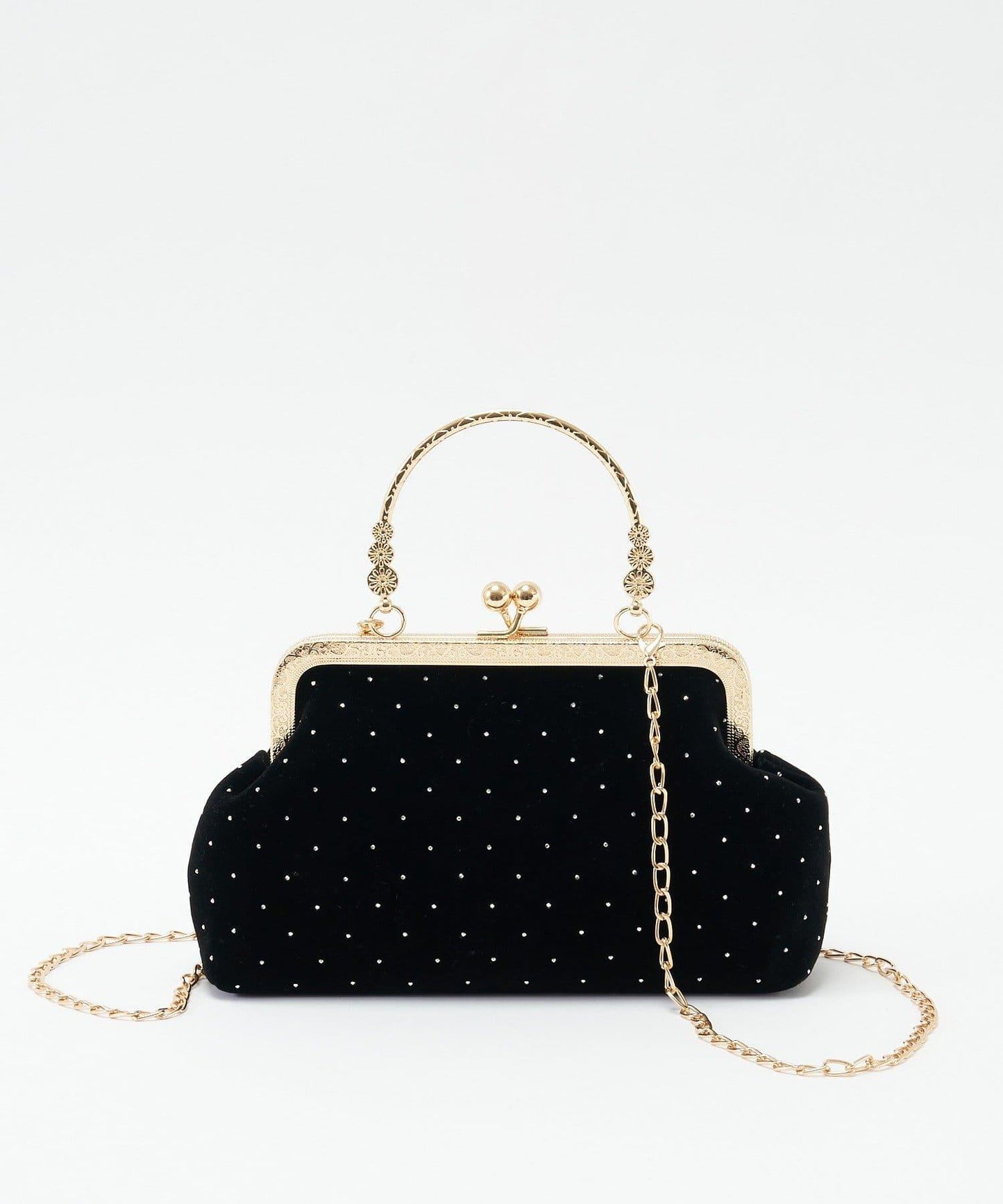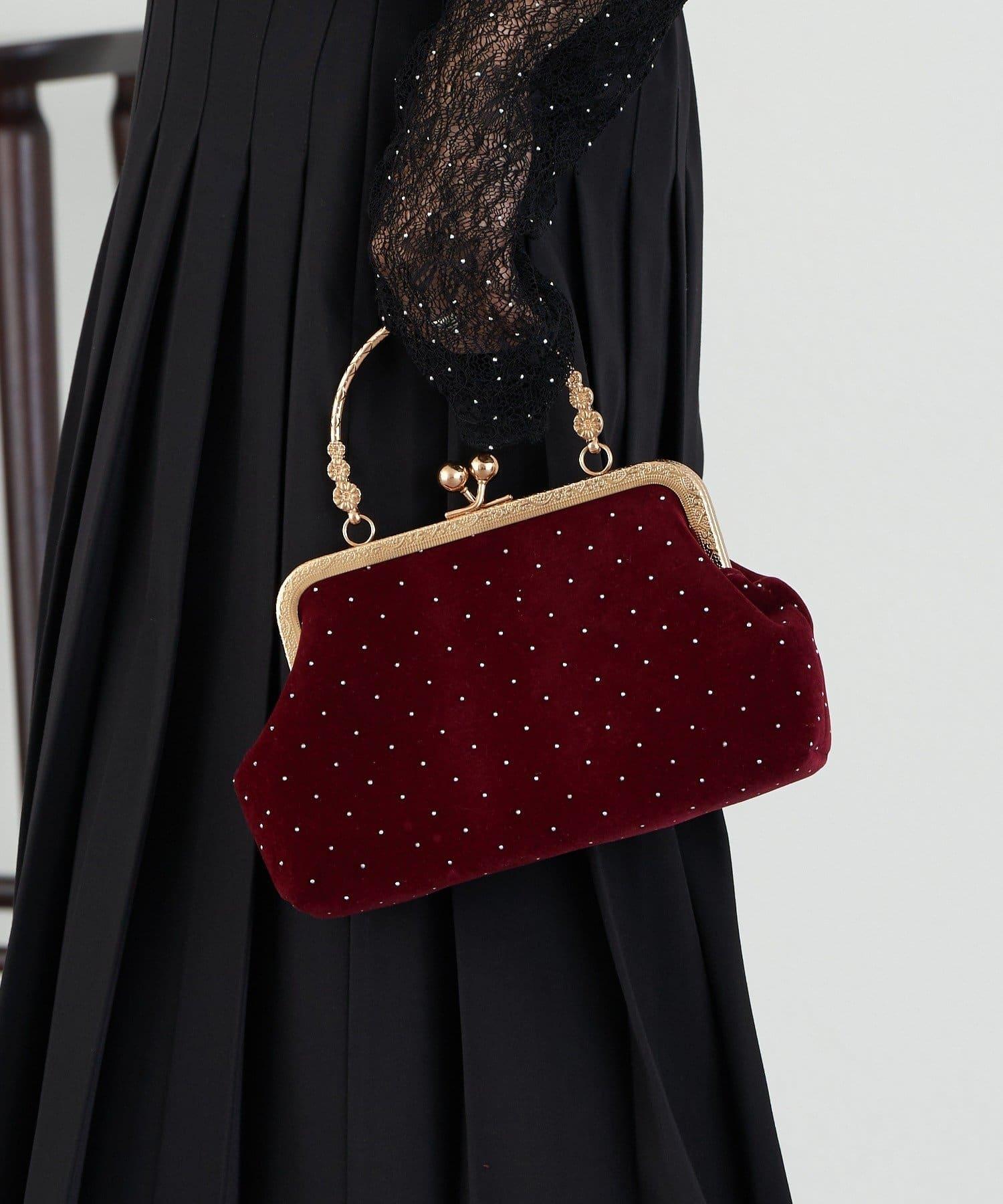 這款仿古風格的搭扣手袋由天鵝絨製成。
