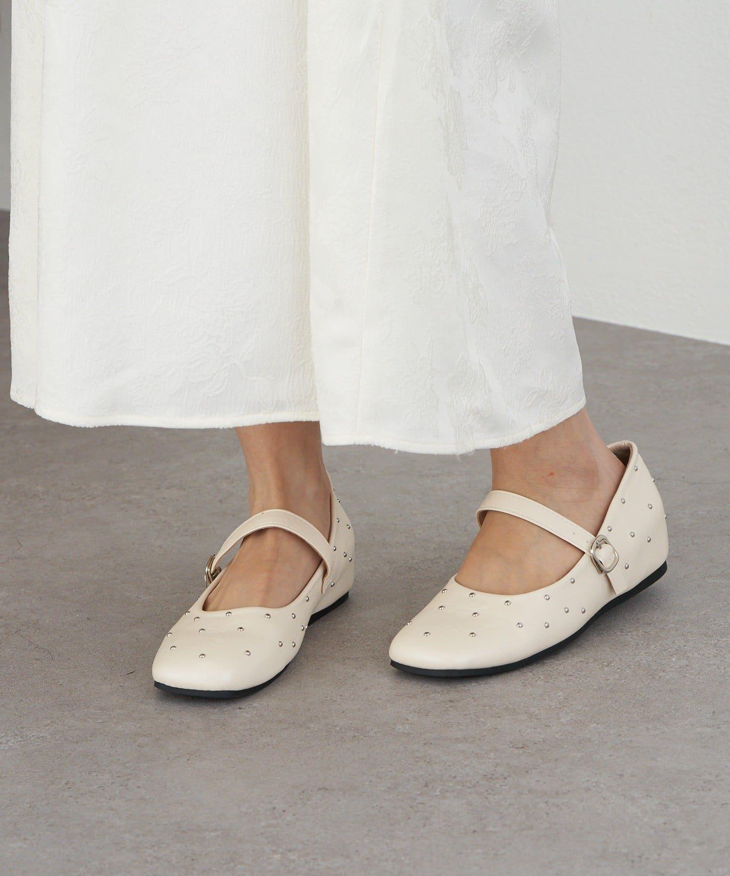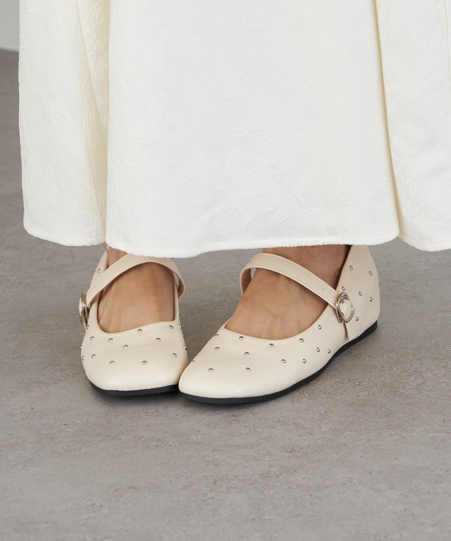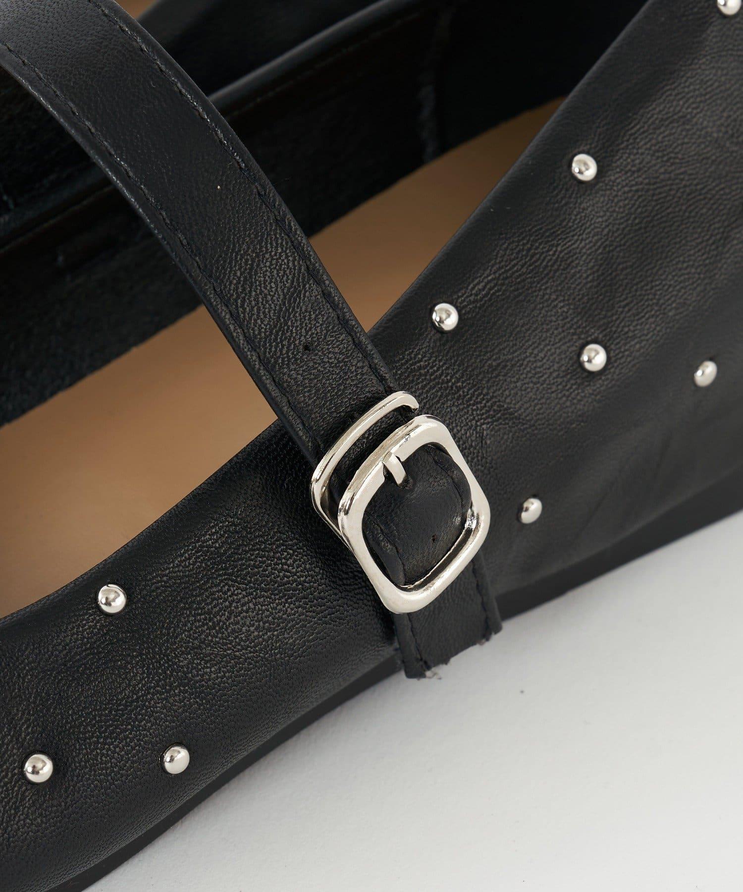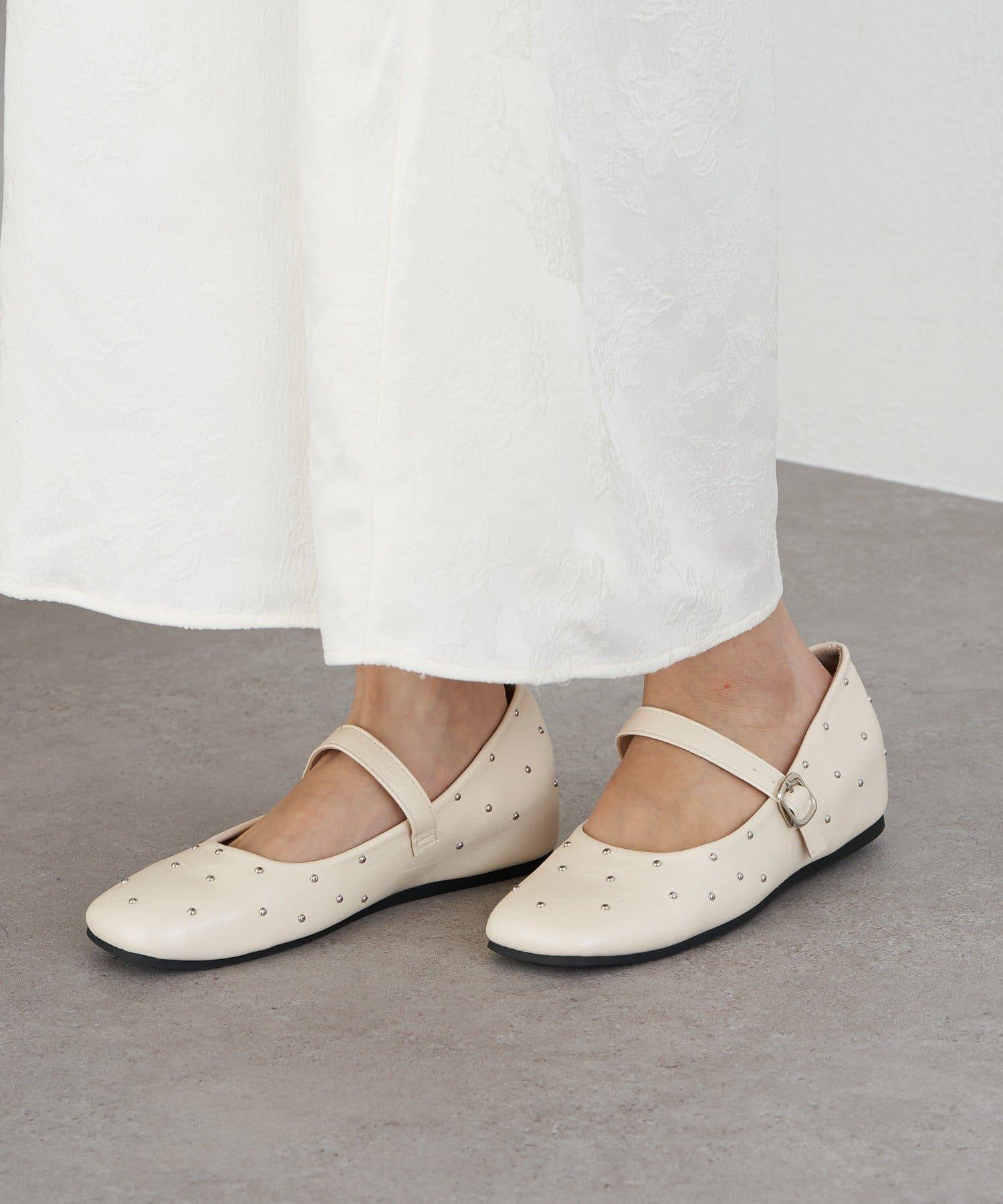 綁帶平底鞋,前衛的鉚釘裝飾。