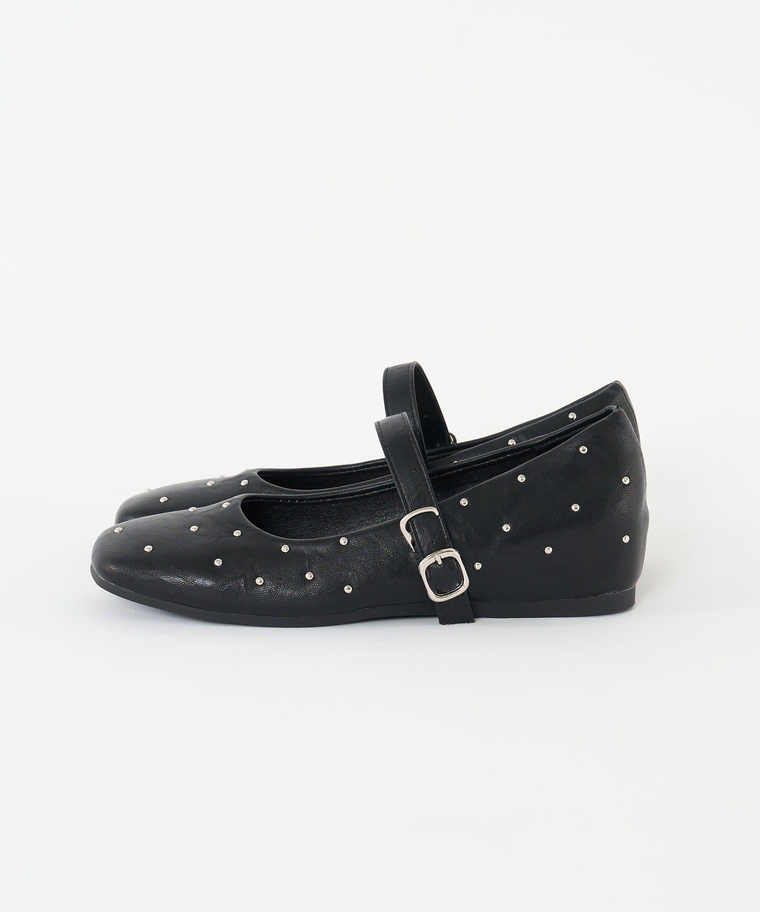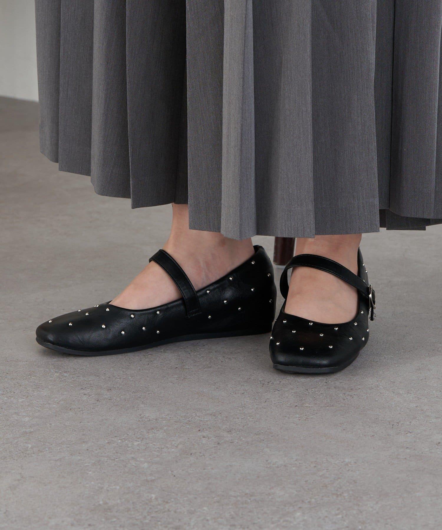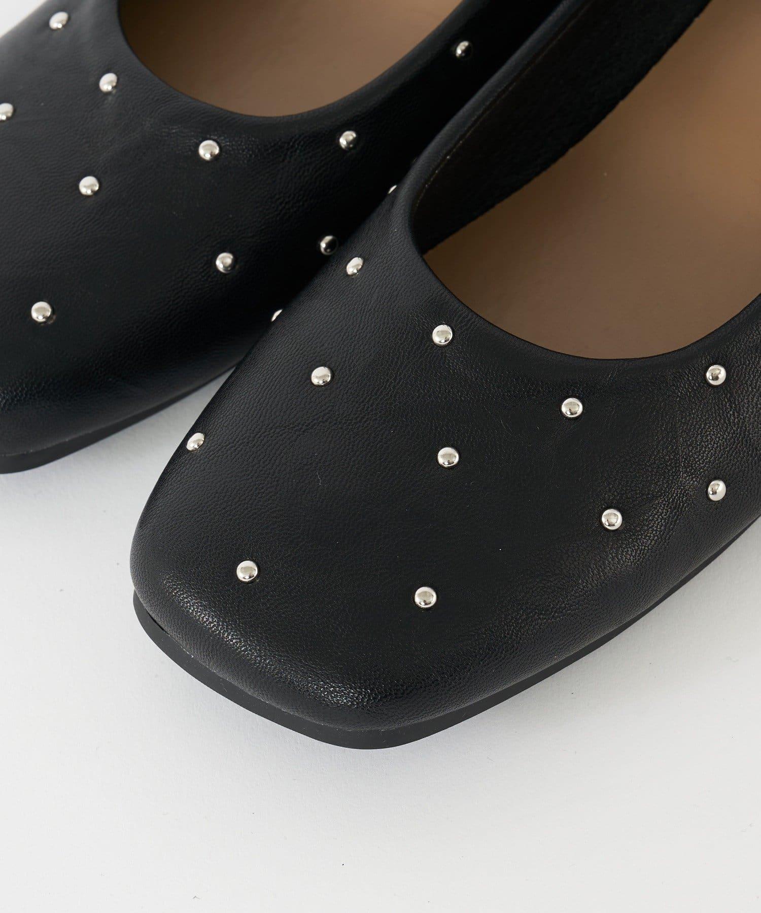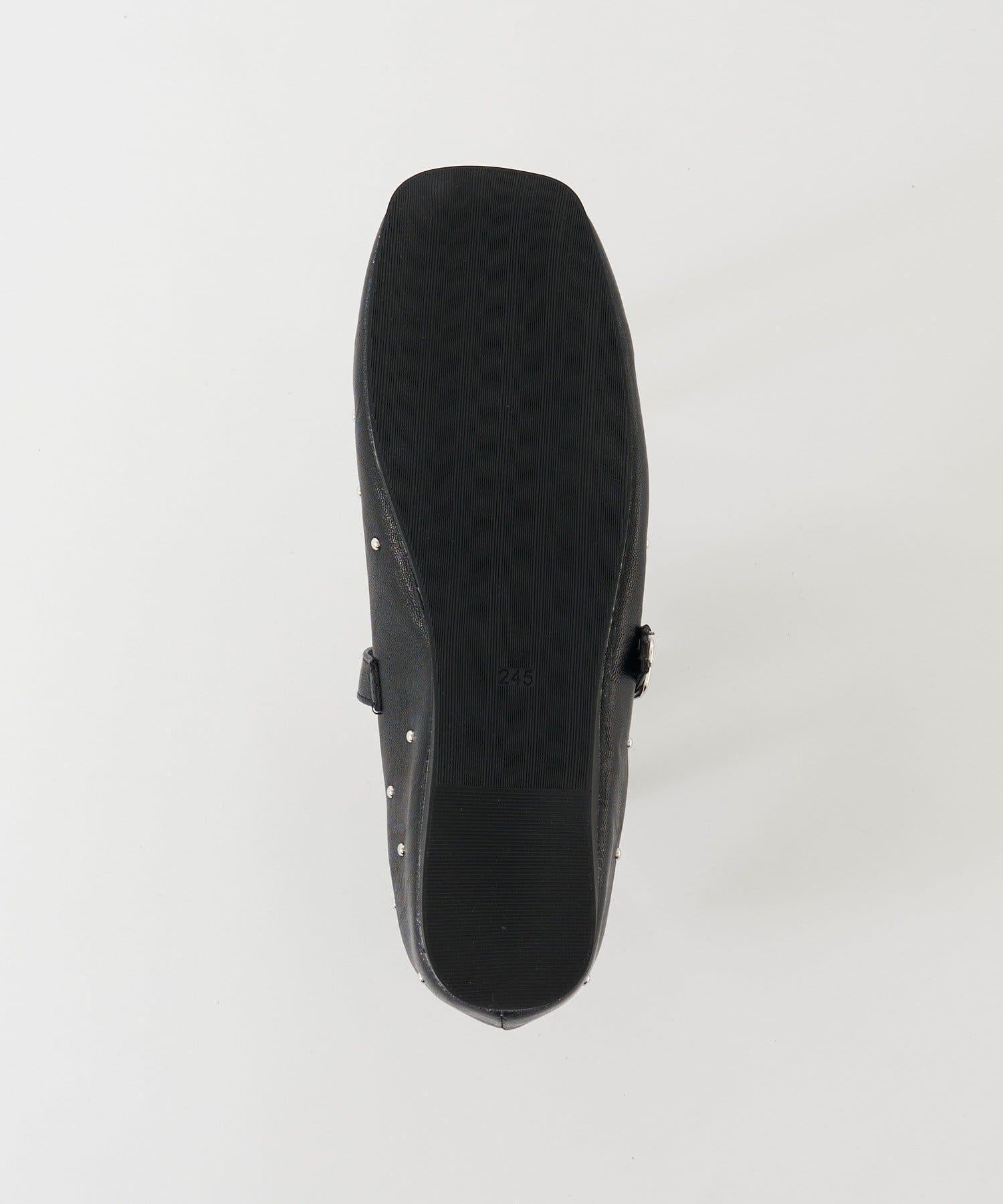 綁帶平底鞋,前衛的鉚釘裝飾。