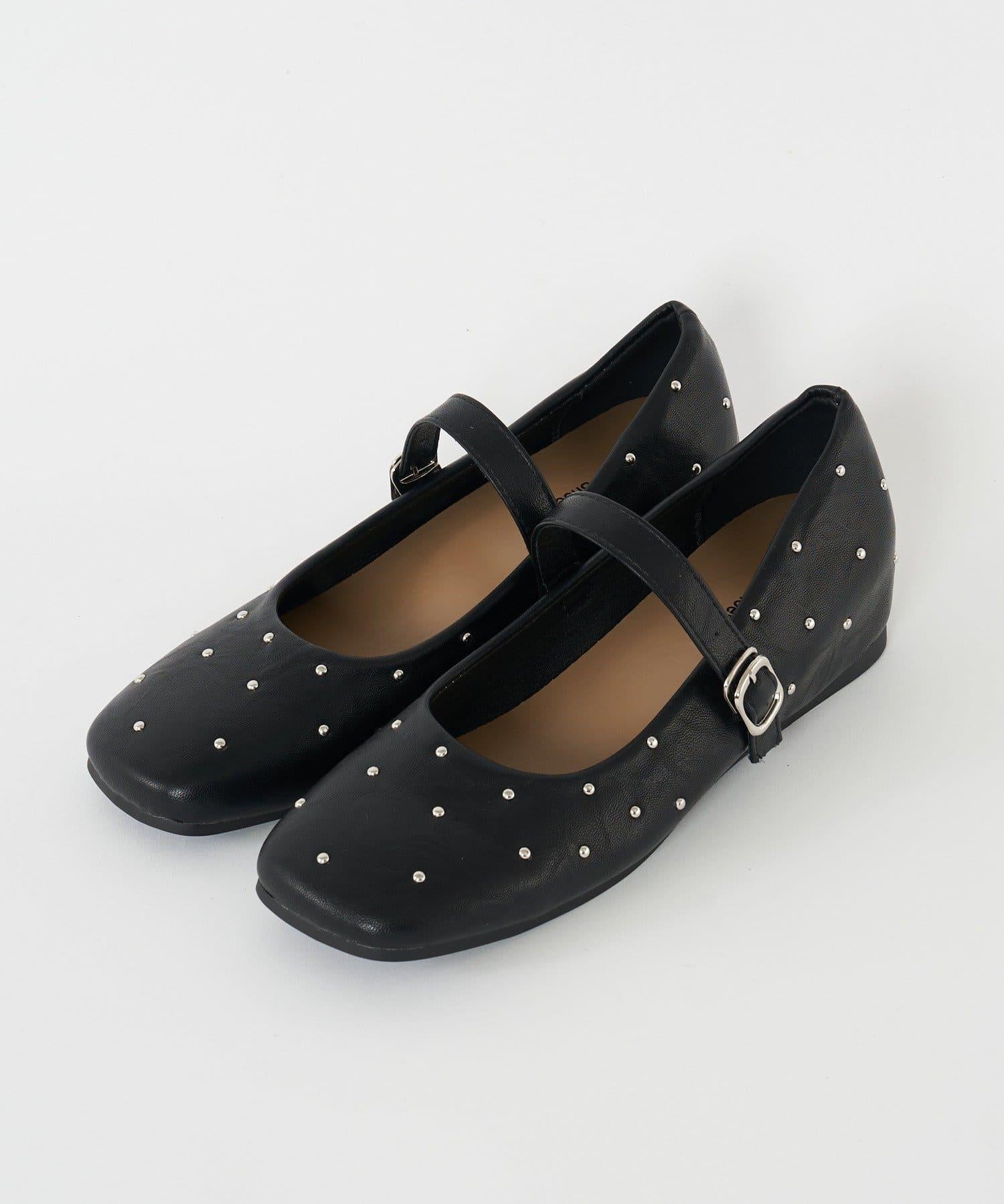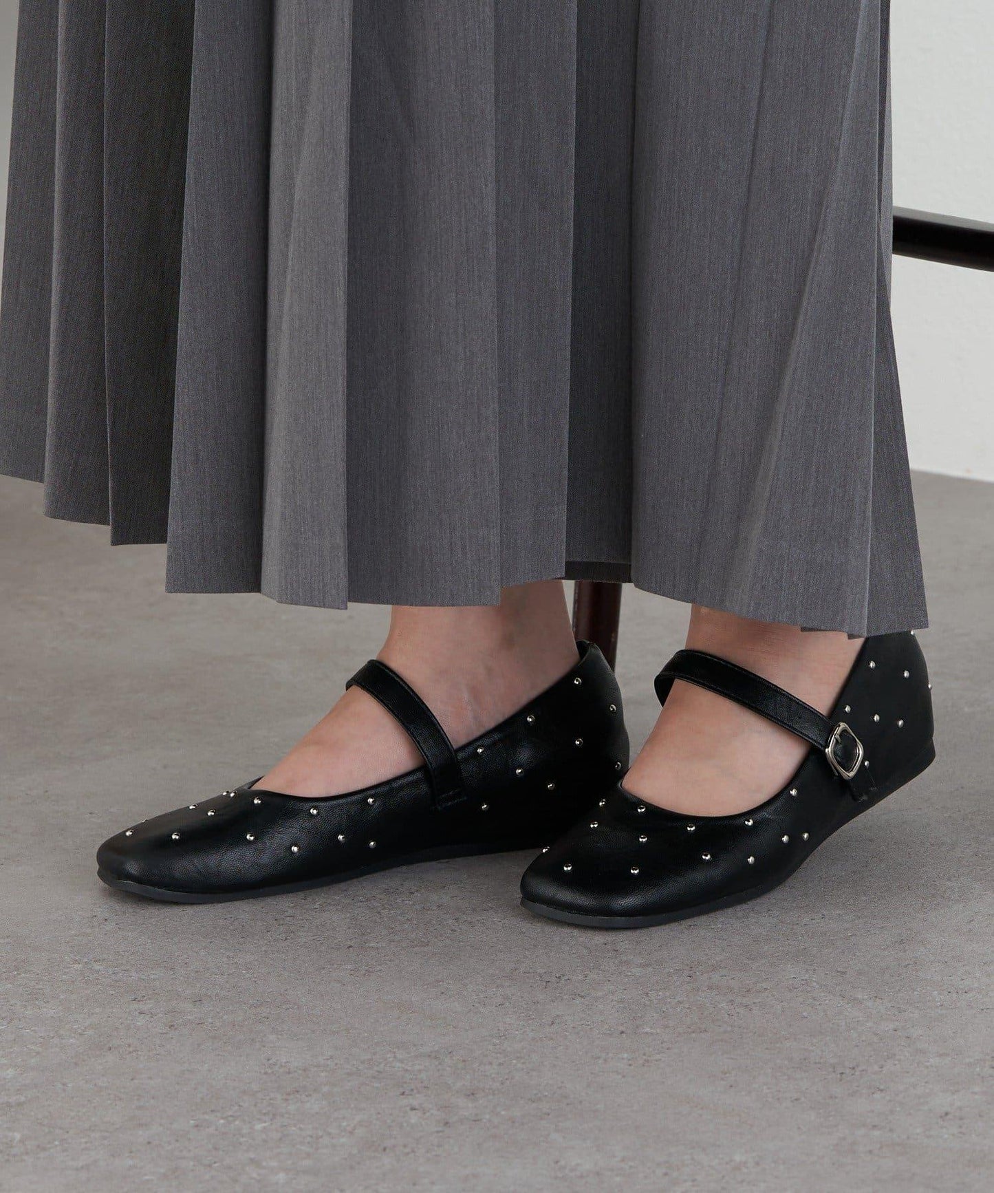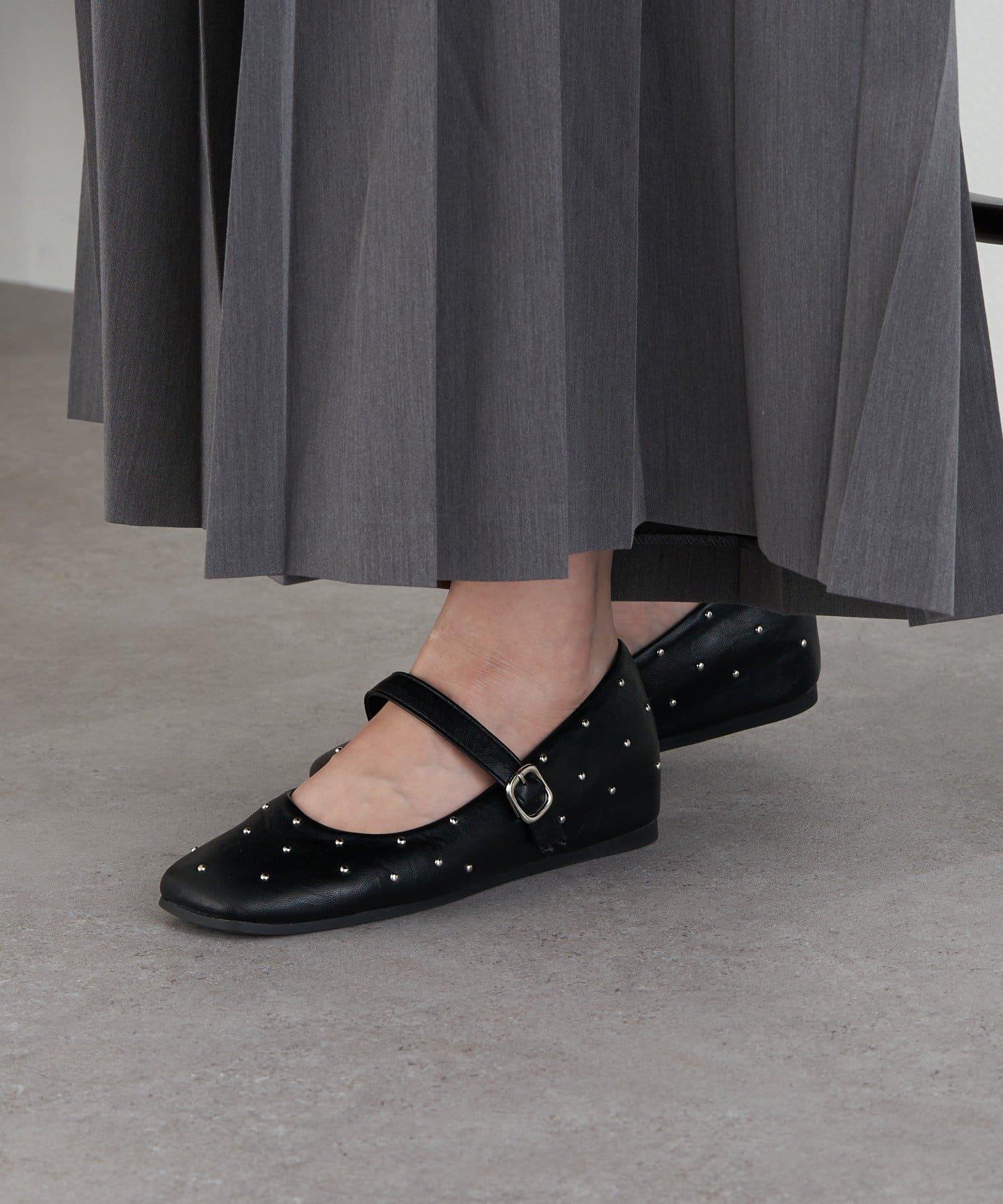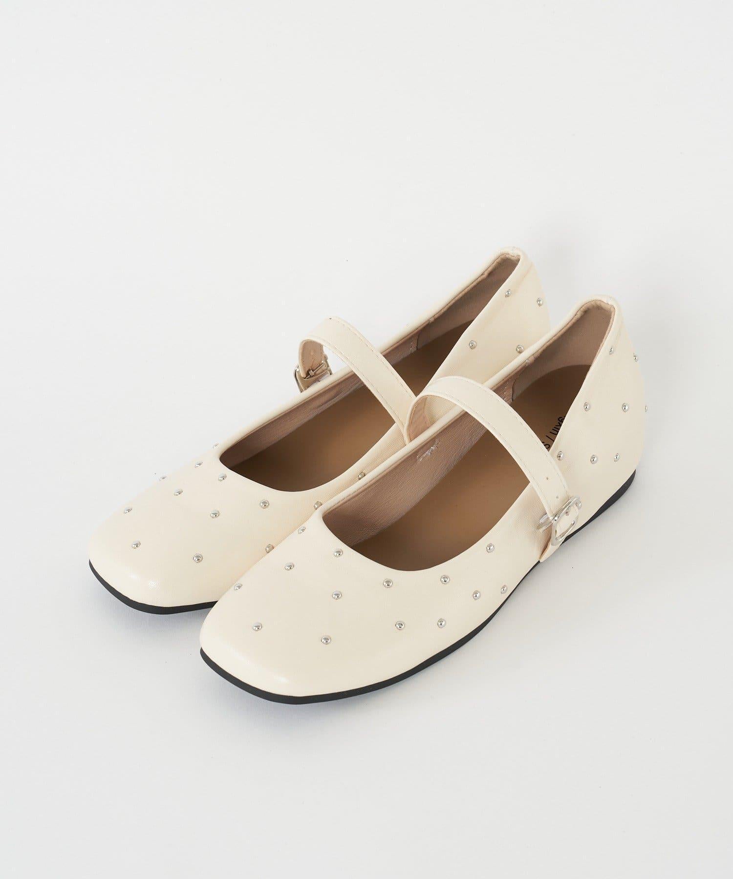 綁帶平底鞋,前衛的鉚釘裝飾。