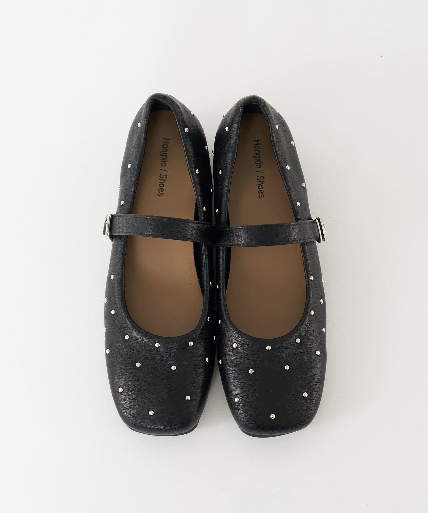 【Lumé/盧梅】鉚釘綁帶平底鞋