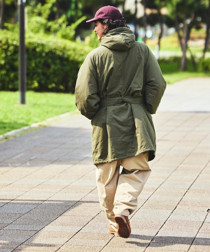 M-64 野戰派克大衣採用超大輪廓和腰帶設計,可有多種穿法。可搭配基本款牛仔褲或貨郎褲,打造硬朗的軍裝風格;也可搭配休閒褲或牛仔褲,打造現代戶外時尚造型。如果去掉內襯,它還可以作為初秋和春季的輕便外衣,與運動鞋、靴子、帽子和其他配件疊穿,盡享季節感。