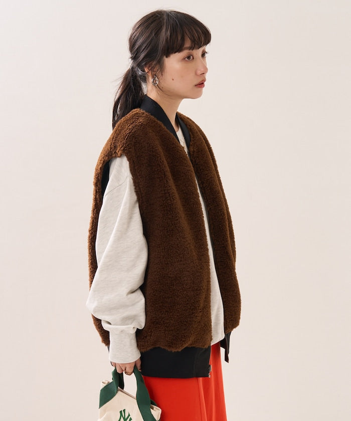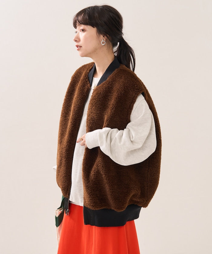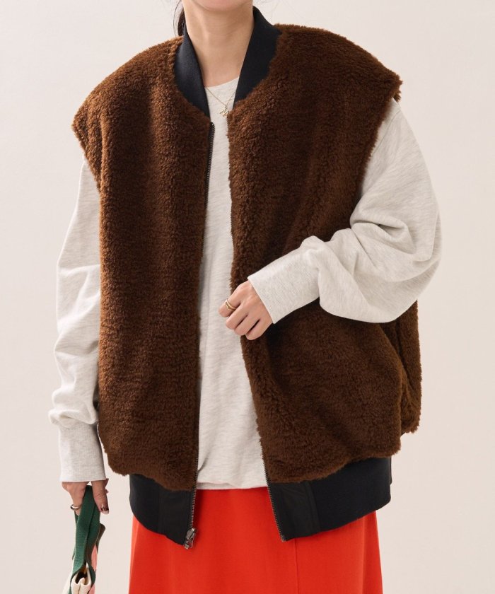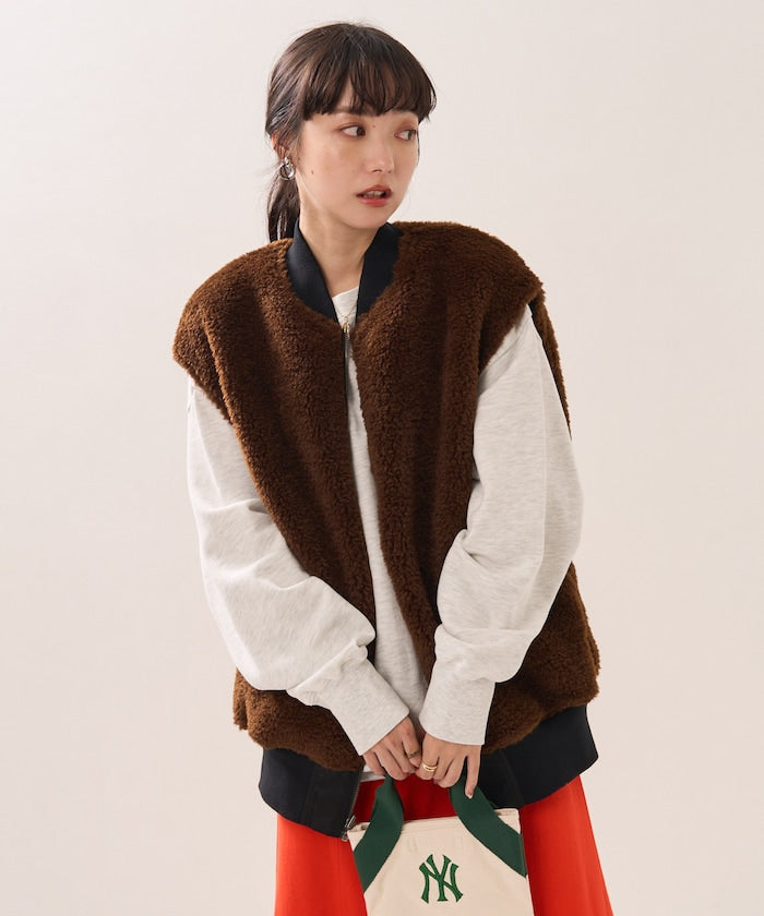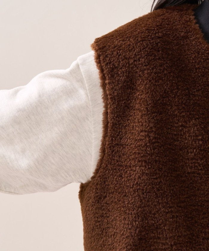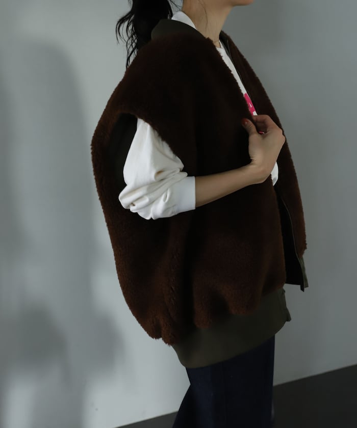 可翻轉皮草馬甲,採用時髦的可翻轉皮草設計。