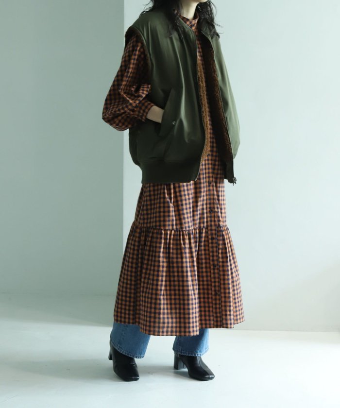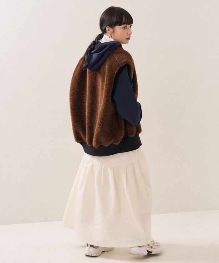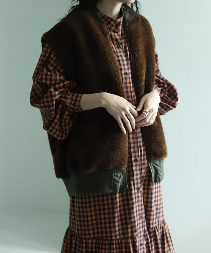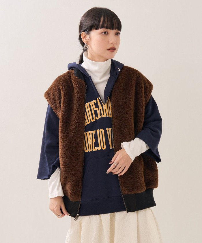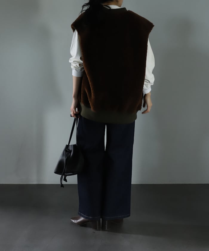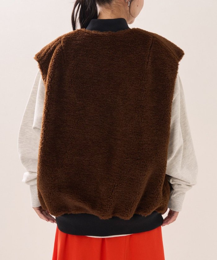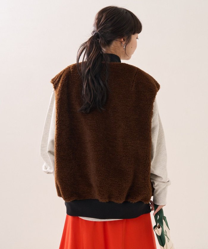 可翻轉皮草馬甲,採用時髦的可翻轉皮草設計。