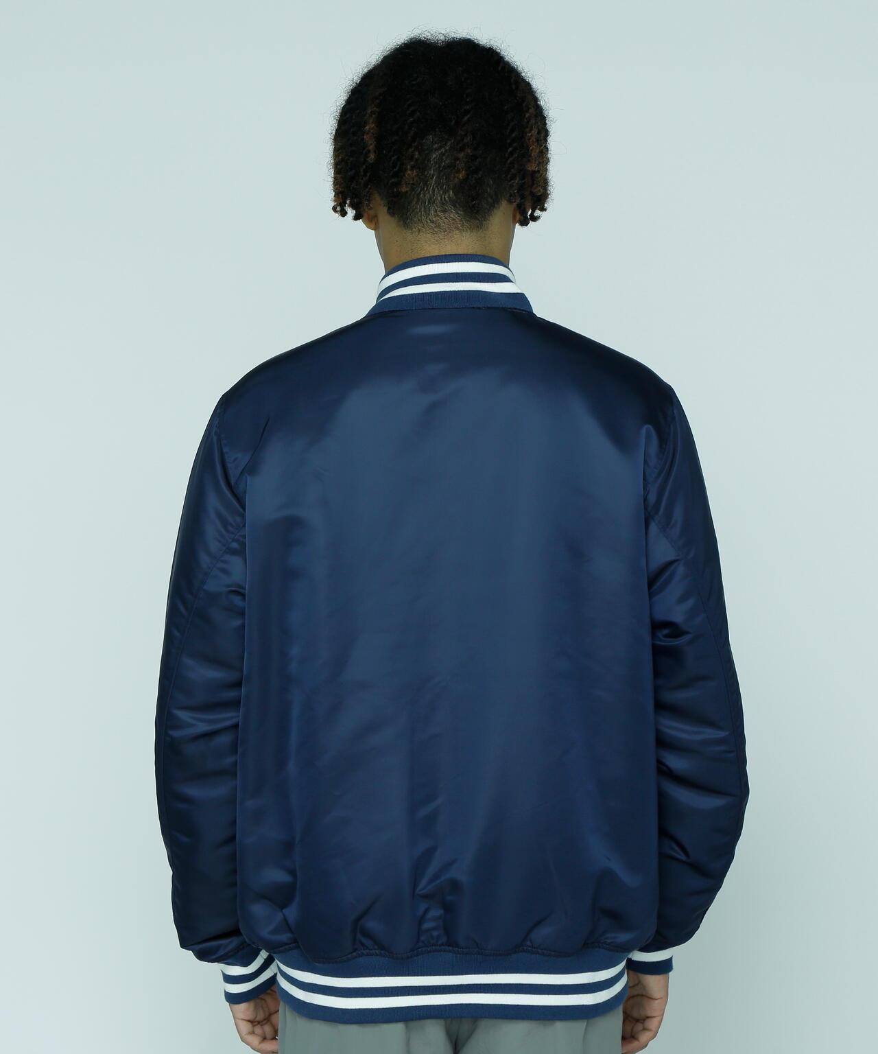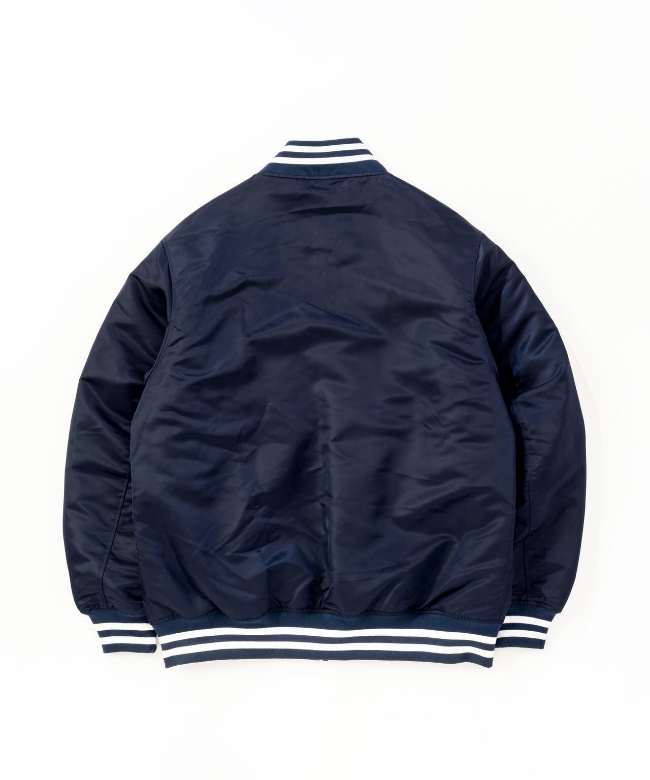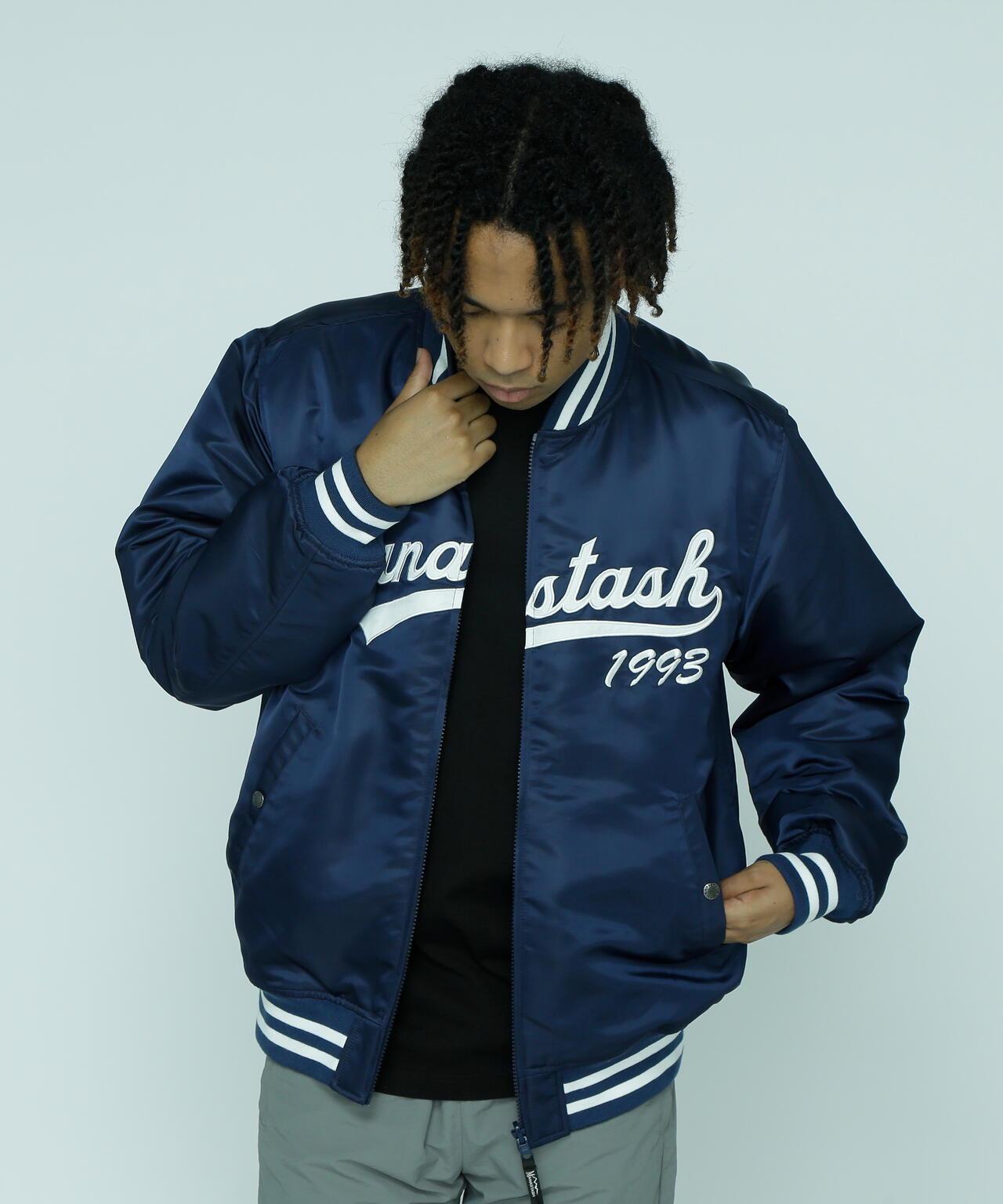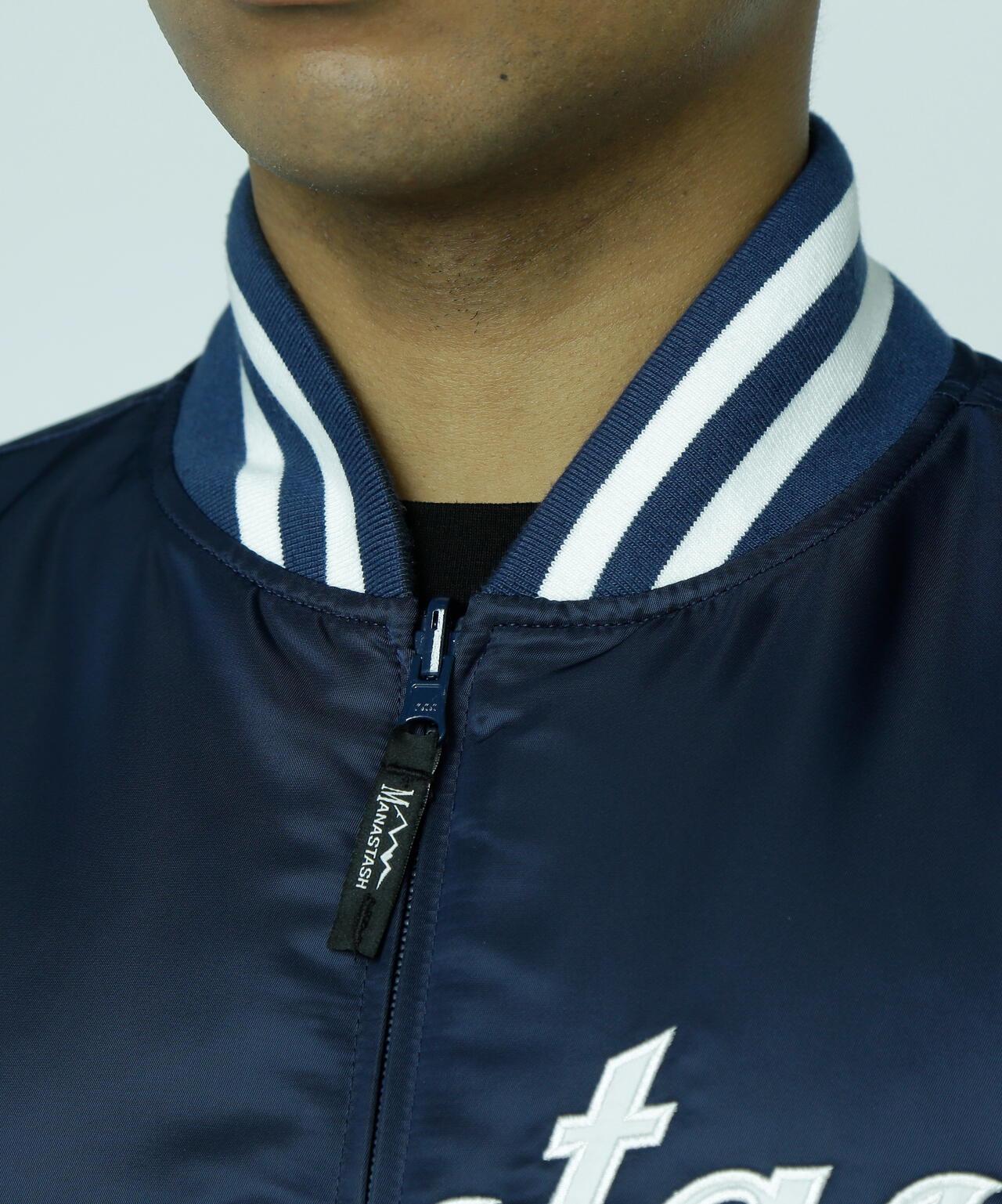 MANASTASH / MANASTASH / REVERSIBLE NYLON VARSITY JACKET / REVERSIBLE NYLON VARSITY JACKET 棒球夾克,前幅印有徽標,傳承自 90 年代的街頭風格。運動風格的街頭味道和獨特的舒適感油然而生。可翻轉,因此有兩種穿法。有黑色、海軍藍和卡其色可供選擇。