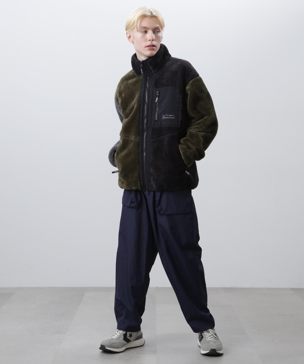 MANASTASH / MANASTASH / BIGFOOT JACKET '24 / BIGFOOT JACKET 材質--獨創的絨毛材質加防風片,被稱為[大腳夾克],是MANASTASH的標準開發產品。表面是絨毛,裡層是羊毛,中間是防風透氣薄膜的三層結構,除防風外,還具有排出水蒸氣、降低體溫的作用。寬鬆的剪裁以及胸前和口袋的剪裁方式讓人感受到 90 年代的氣息。長褲(7924210001)採用相同材質,可作為套裝穿著。MANASTASH] <MANASTASH>於 1993 年在美國西雅圖創立。品牌名稱。