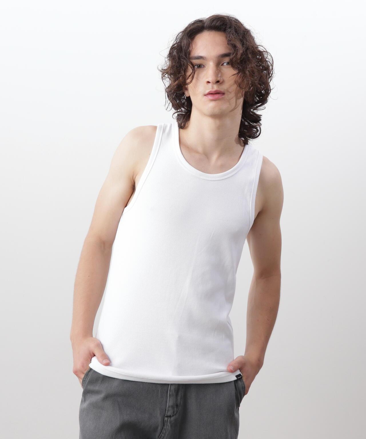 MANASTASH / MANASTASH / RIB TANK TOPS (2P) / 羅紋背心 - 採用高張力聚氨酯紗線羅紋針織面料製成。面料採用高張力聚氨酯紗線羅紋針織而成。上衣柔軟,即使緊身穿著也不會產生壓力。兩件套適合日常穿著。緊身的剪裁使其無論是作為內搭還是單穿都非常美觀。印花標籤規格消除了穿著時的不適感。左下襬有笙標籤。後衣領處印有山地圖案。經典的包裝設計採用了品牌創立之初的檔案圖案。