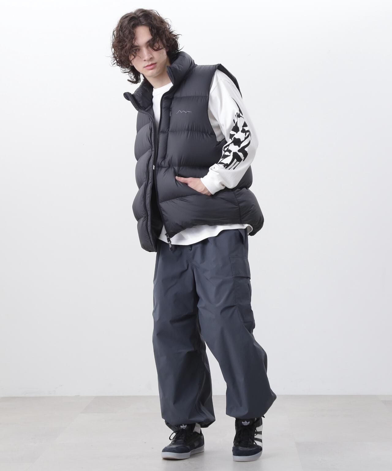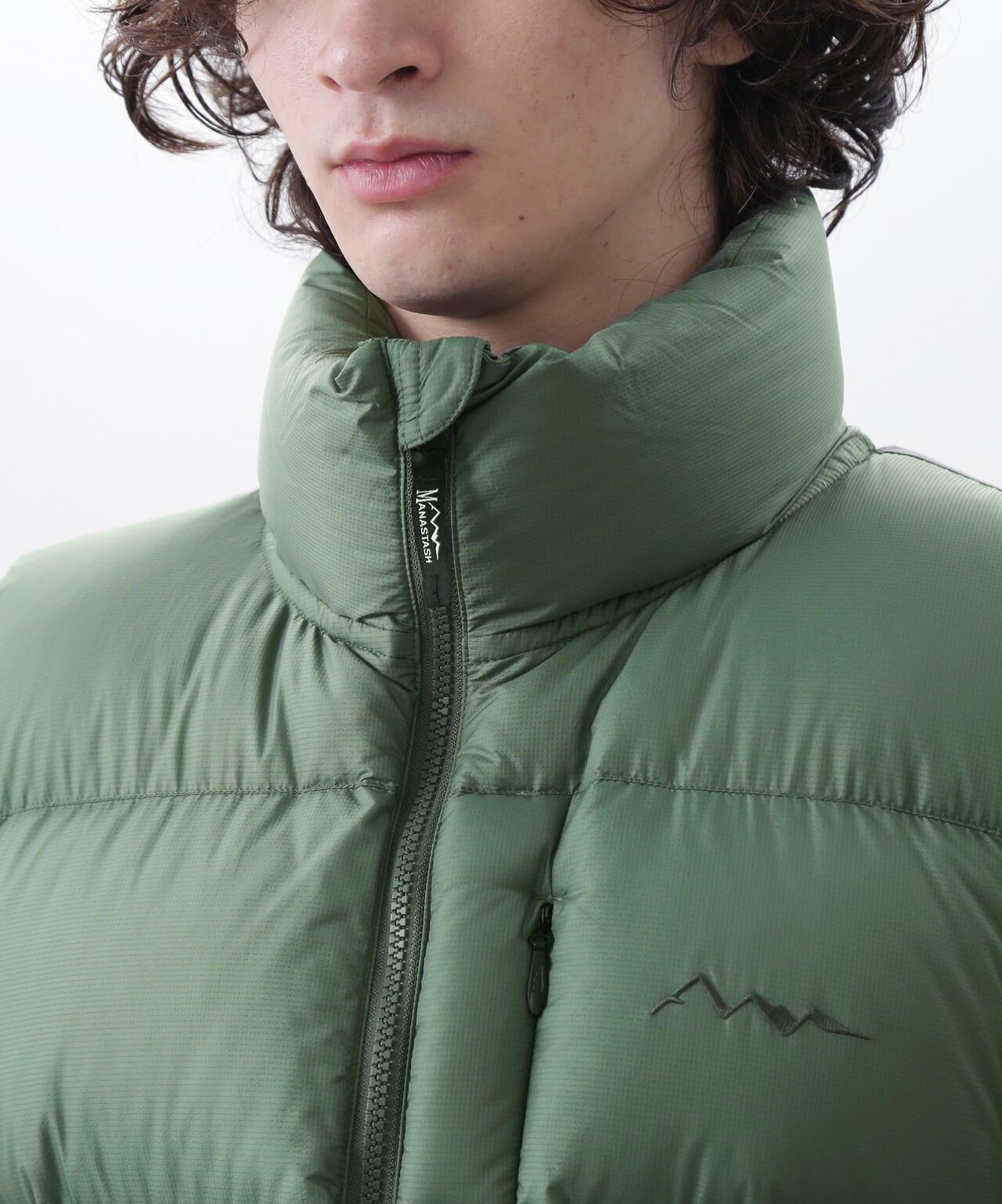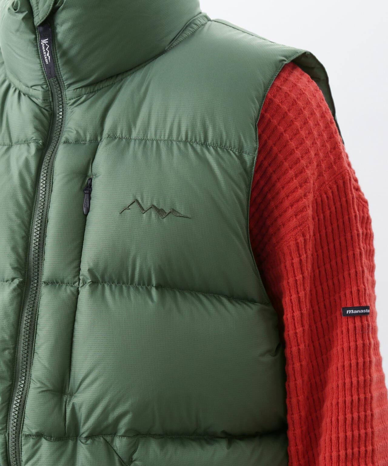 MANASTASH/MANASTASH/M-RIP DOWN VEST/Micro rip down waistcoat [Shell] - Shell material silicon resin coated on thin and light micro rip - silicon coating improves water repellency and makes it difficult to fly out without using a down pack.硅塗層提高了防水性,使羽絨在不使用羽絨包的情況下不易飛出。700 填充力,既可用於戶外,也可用於城市,提供溫暖和體積。特點 ∙ 無需羽絨包,比傳統羽絨服更柔軟、更輕便。寬鬆的廓形設計營造出輕鬆的 90 年代風格。高領設計讓您可以將其掛在脖子上。