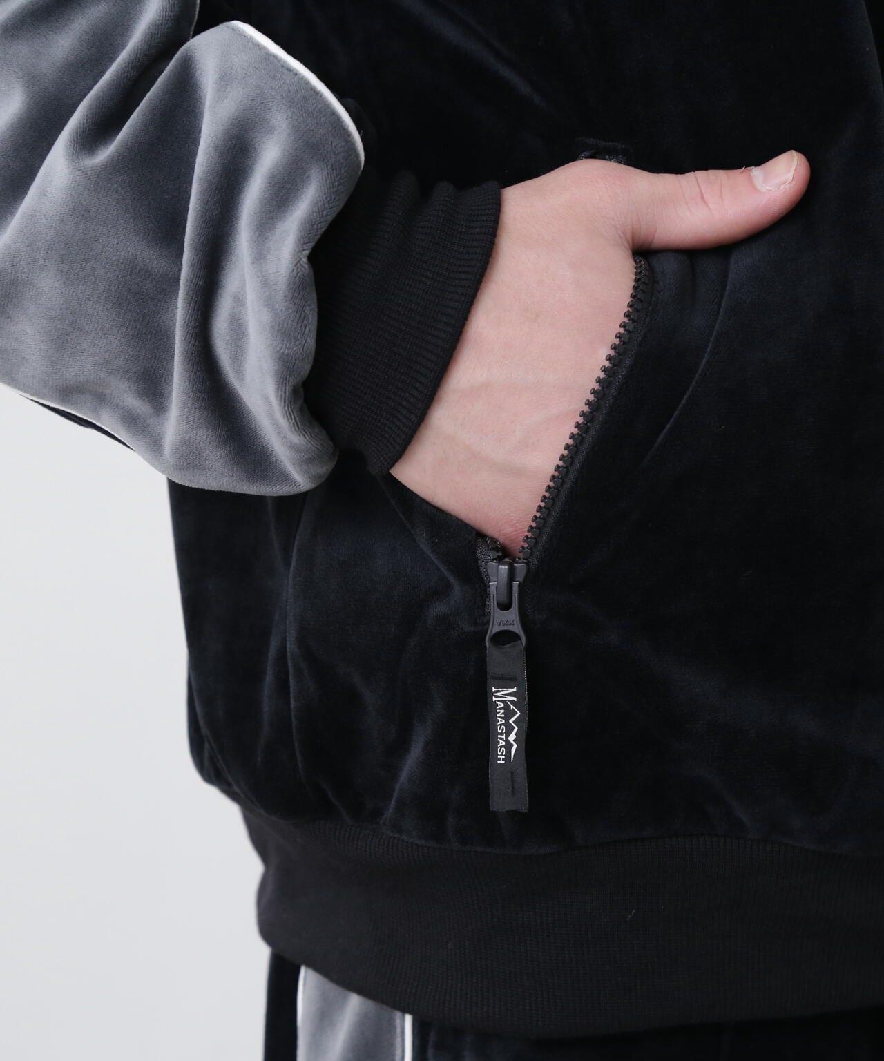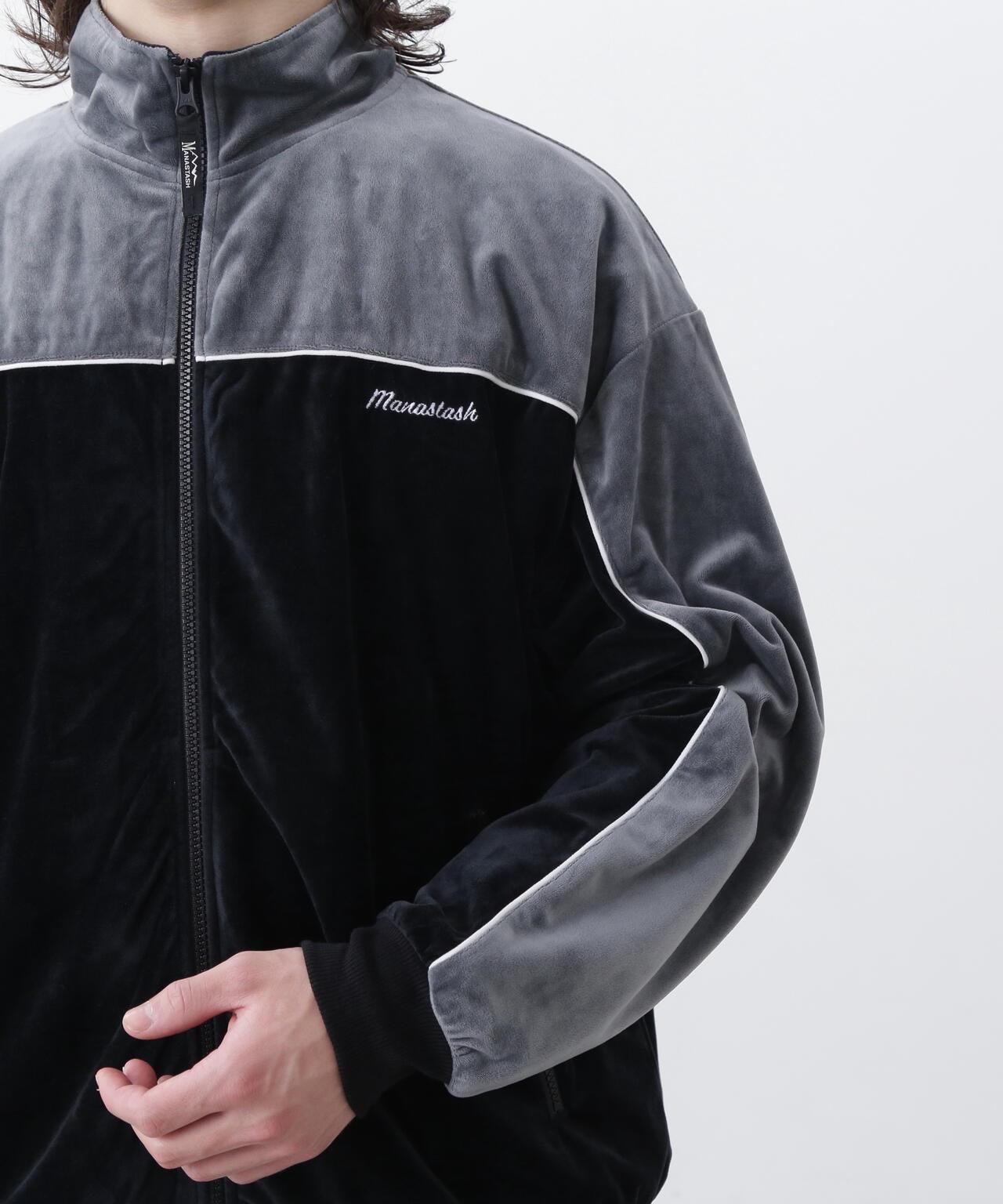 MANASTASH / MANASTASH / VELVET TRACK JACKET / 天鵝絨運動夾克面料 - 100%滌綸天鵝絨特色 - 天鵝絨面料具有獨特的光澤和柔軟度,與 90 和 00 年代流行的 Y2K 氣氛相得益彰。絲絨運動夾克,滾邊和大膽剪裁的靈感來自 MANASTASH 的 90 年代檔案。寬鬆的版型是 90 年代的寬鬆風格。這是一款非常百搭的單品,初秋時可作為外層,冬季時可作為內層。造型--搭配 TRACK PANTS (7924210018) 作為套裝穿著,重現當年的氛圍。
