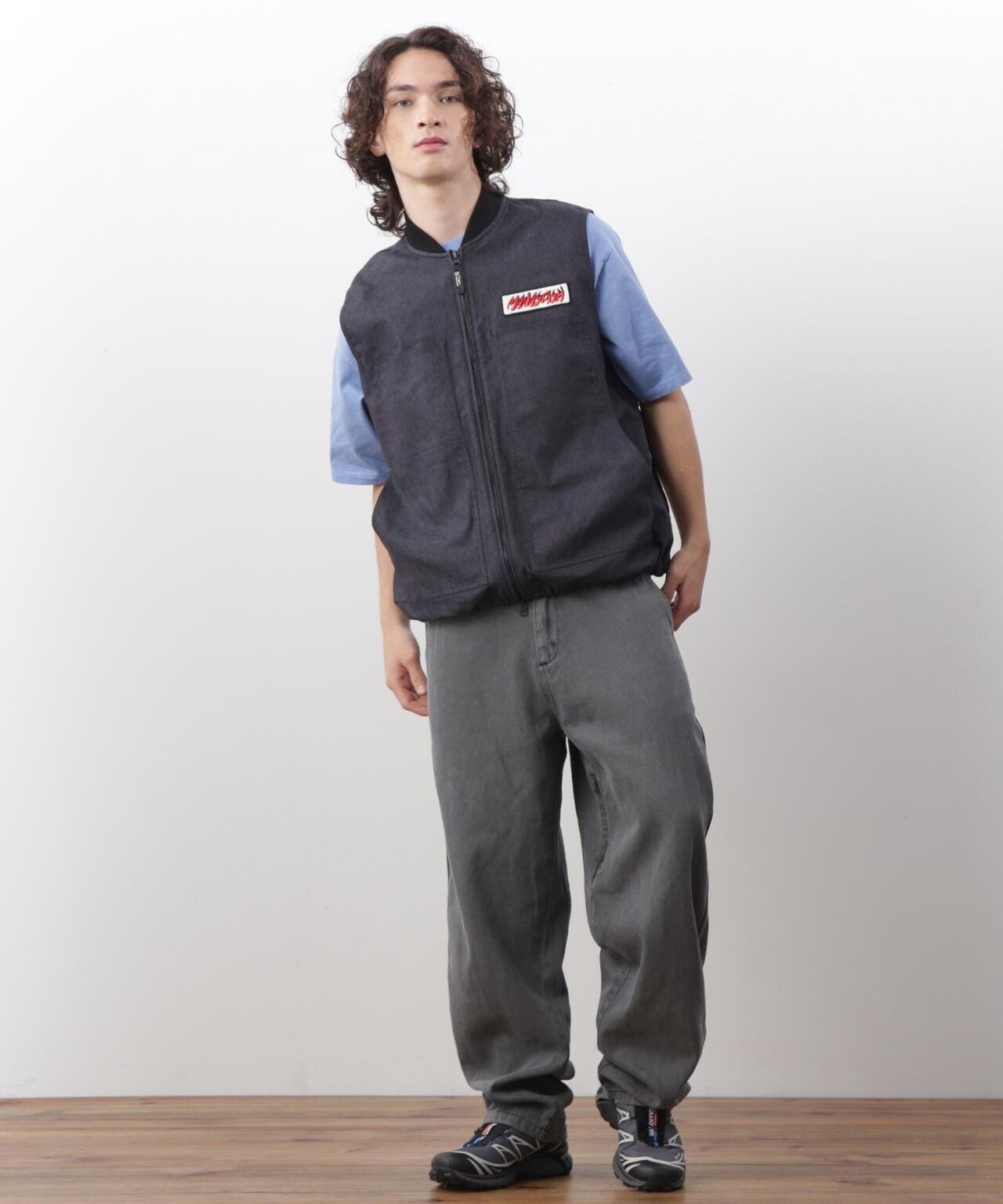 MANASTASH / PATCHED LOGO WORK VEST / PATCHED LOGO WORK VEST / 採用彩色牛仔布製成的工作背心,質地柔軟,通過將滌綸和棉染色製成牛仔布風格,貼袋分為兩部分,腰部從側面分為兩部分,胸部從頂部分為兩部分。左胸前有工作襯衫的典型貼布,下襬的抽繩可調節輪廓,後襬上的反光片確保了夜間的能見度,圖案 = [Lale Westvind] MANASTASH / ManastashMANASTASH 於 1993 年在美國西雅圖創立。品牌名稱取自北美大陸西海岸由北向南的卡斯卡特山脈(Cascade Mountains)。