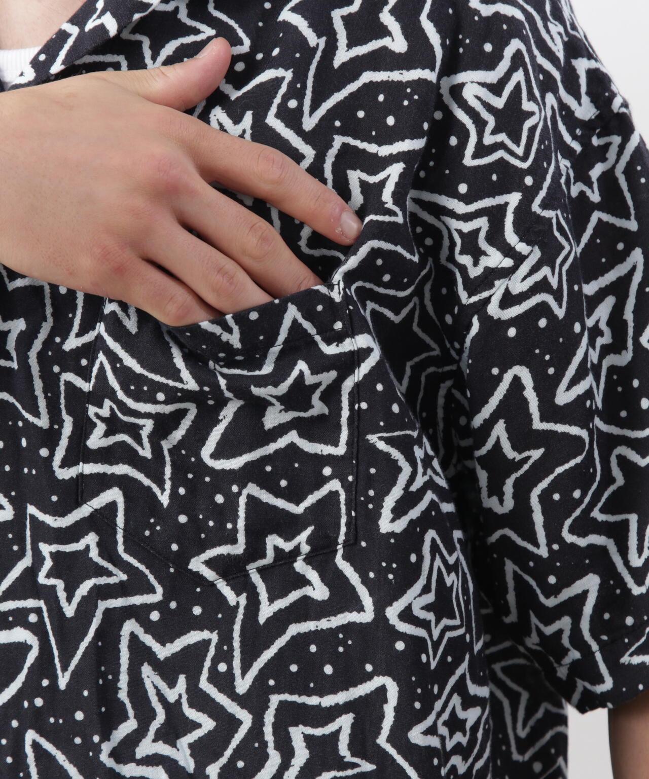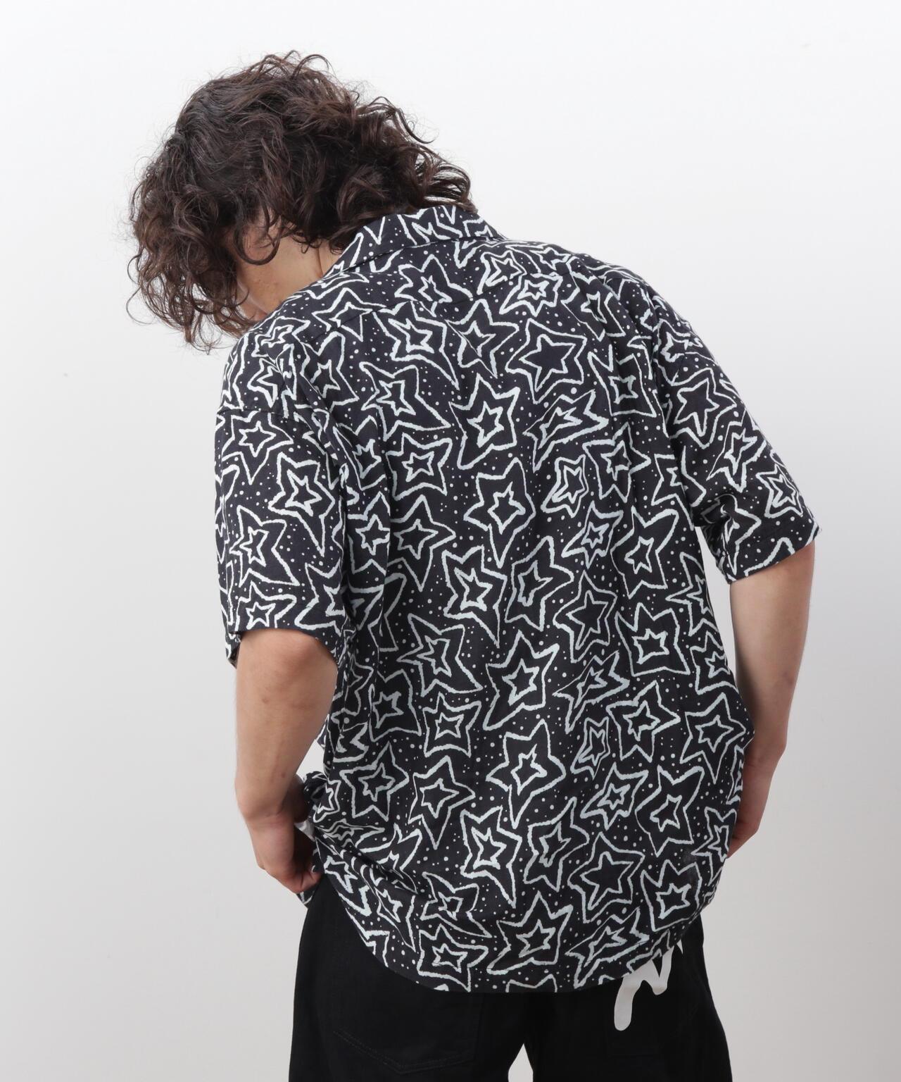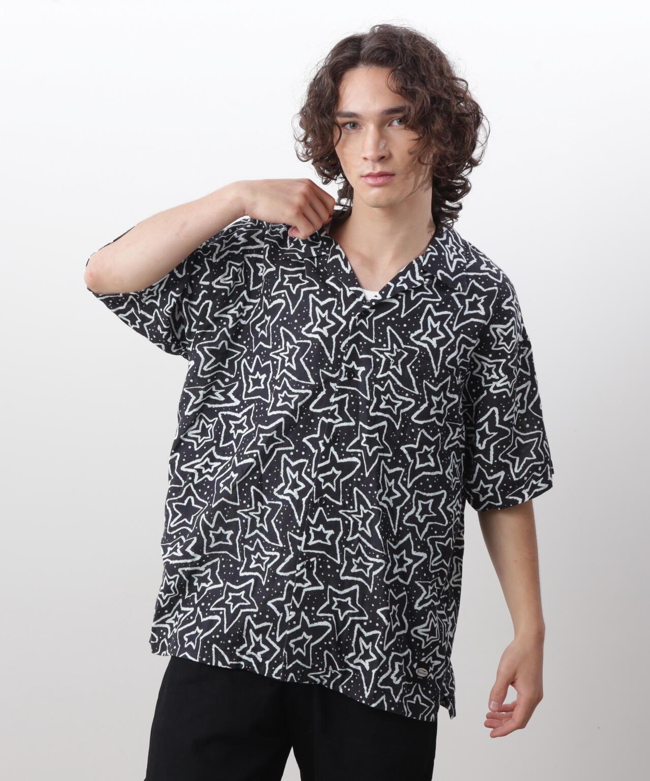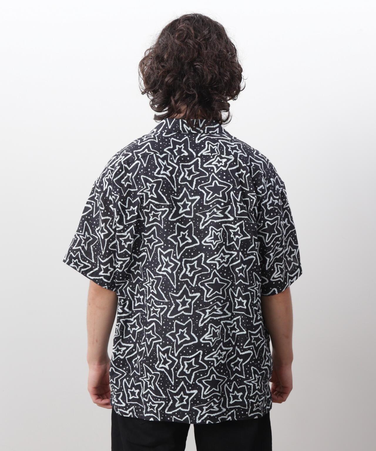 MANASTASH / MANASTASH / GAUZE MANALOHA SHIRT / Gauze Manaloha Shirt / 採用 100% 全棉雙層紗布面料製成。設計為基本款短袖開領襯衫,印有星星圖案和波普藝術風格的 MANASTASH 字樣。NAOKI/ Naoki""SAND""Yamamoto]MANASTASH/MANASTASH <MANASTASH>於 1993 年在美國西雅圖創立。品牌名稱源自北美大陸西海岸自北向南延伸的喀斯喀特山脈。