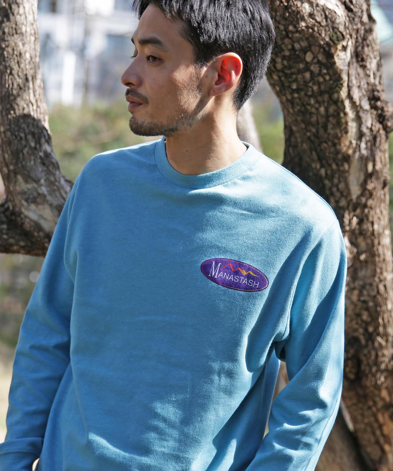 MANASTASH/HEMP L/S TEE ORIGINAL LOGO・HEMP 55% 棉 45% T恤面料,由 MANASTASH 開發,四季皆宜。該面料的紫外線阻隔率高達 99.9%(比棉質面料高出 50%以上),適合戶外穿著。圖案為標誌性的橢圓形徽標,自公司成立以來,該徽標一直是 MANASTASH 的代名詞。