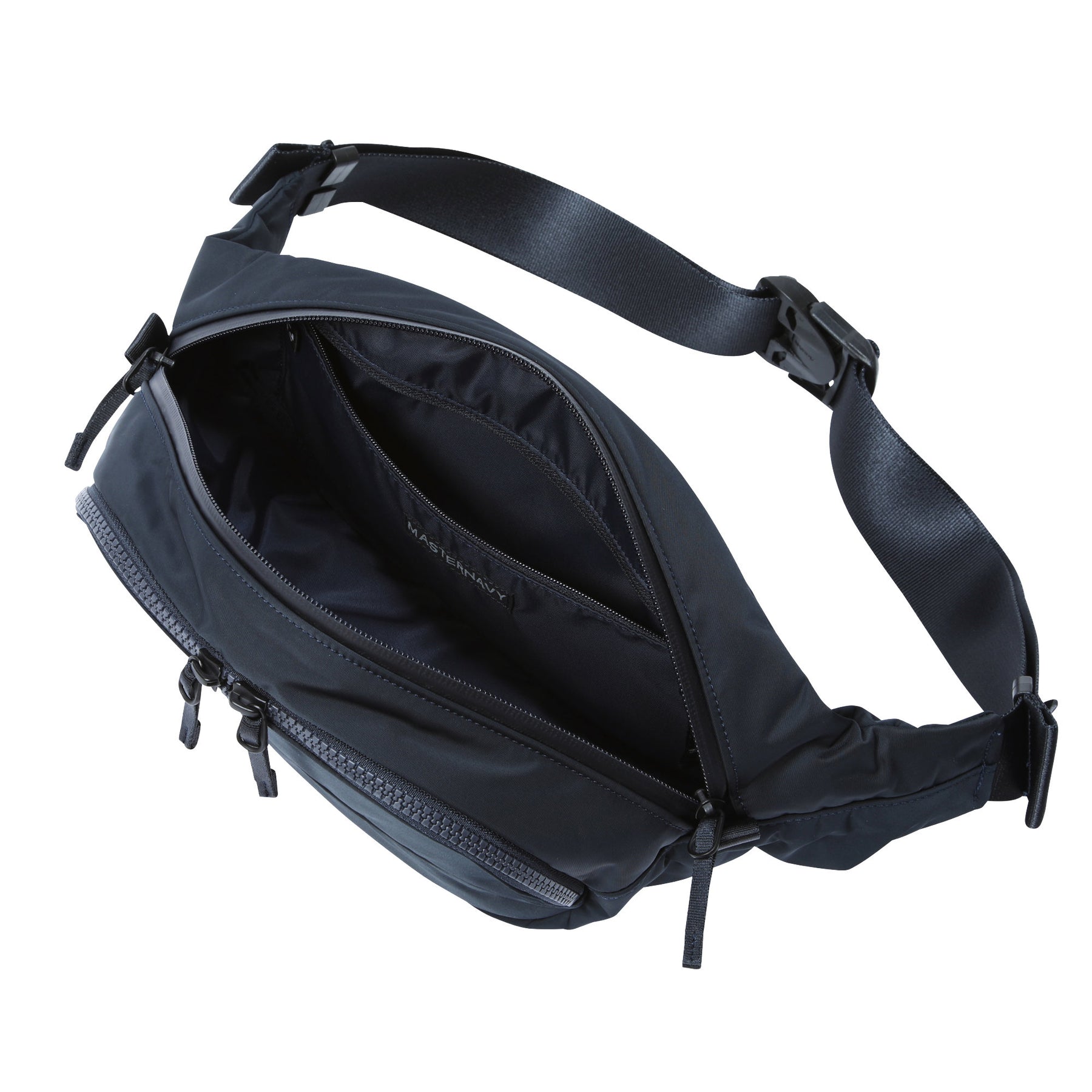 橢圓型腰包的設計很容易與身體貼合。包的主倉外有各種口袋,便於整理。