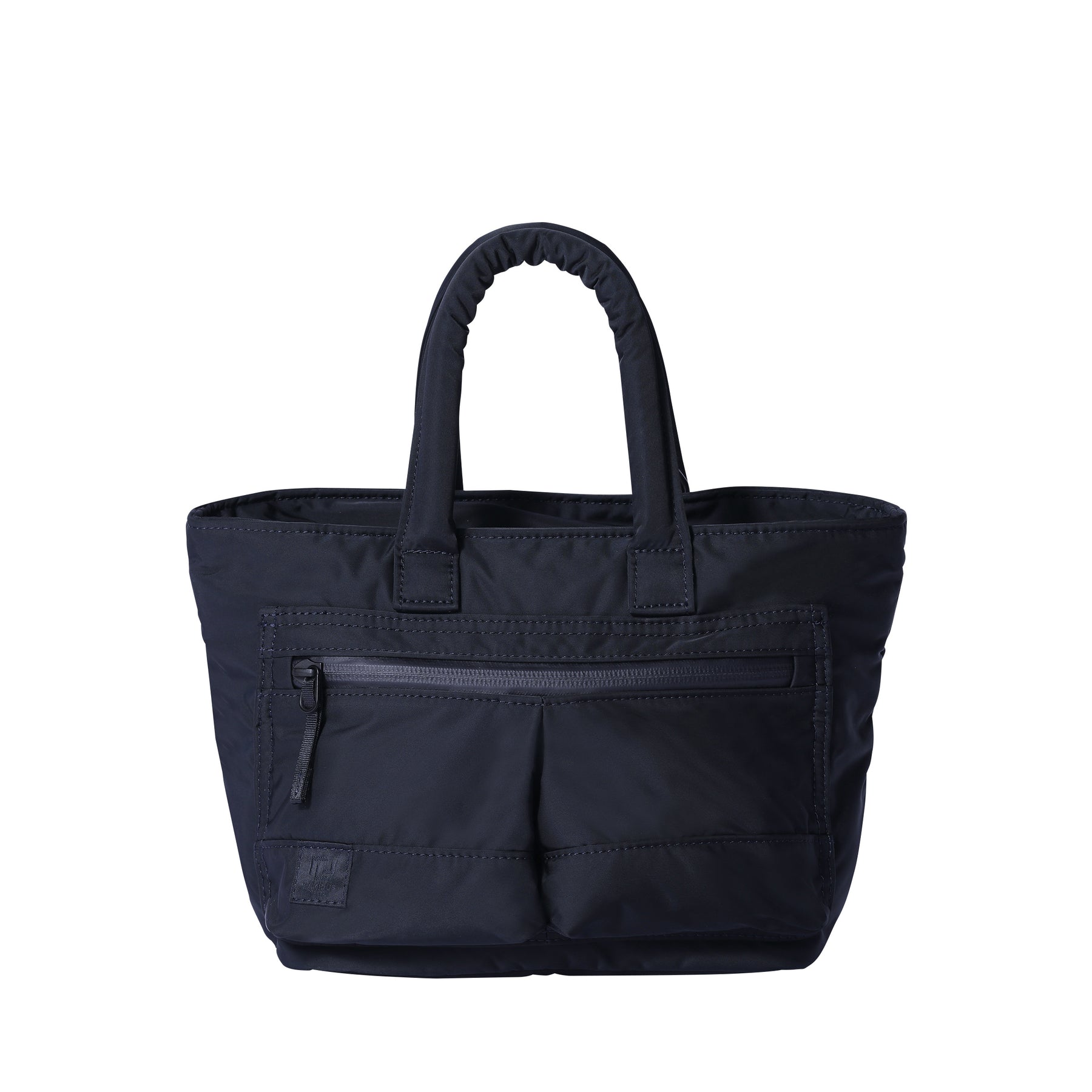 正面:品牌名稱標籤,兩個拉鍊口袋。