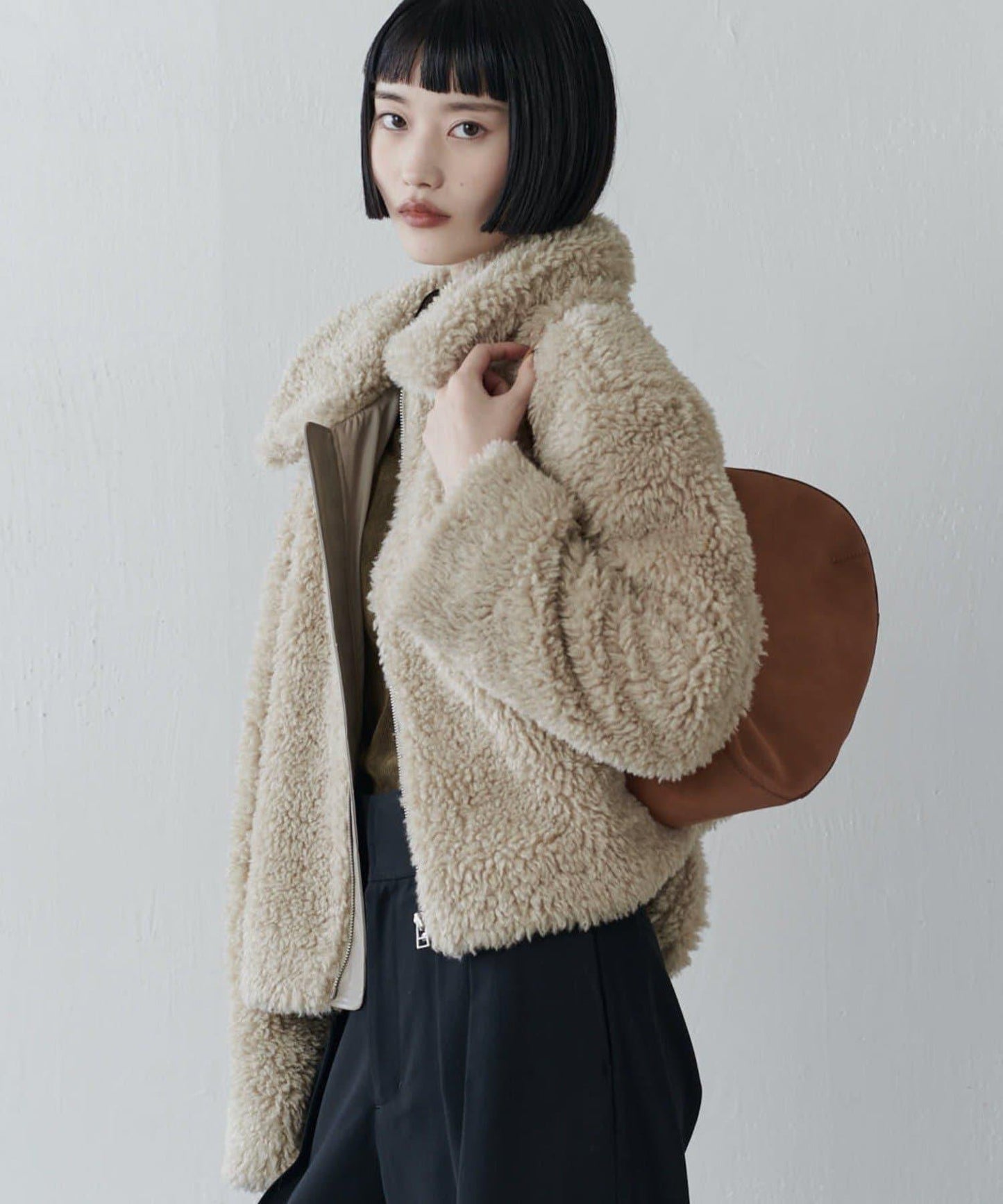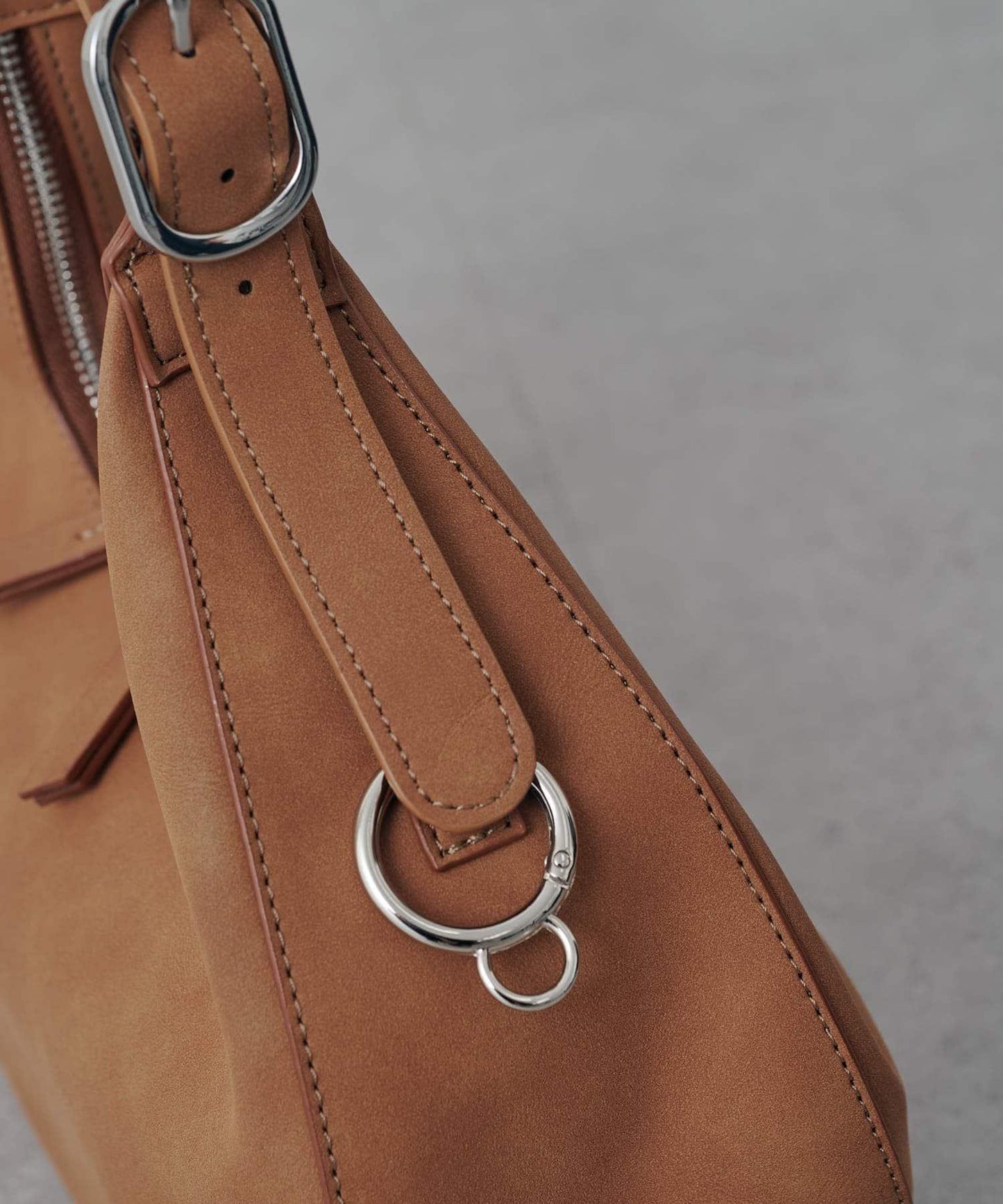 半月形手袋的豐滿外形和皮革包身使其看起來可愛而優雅。
