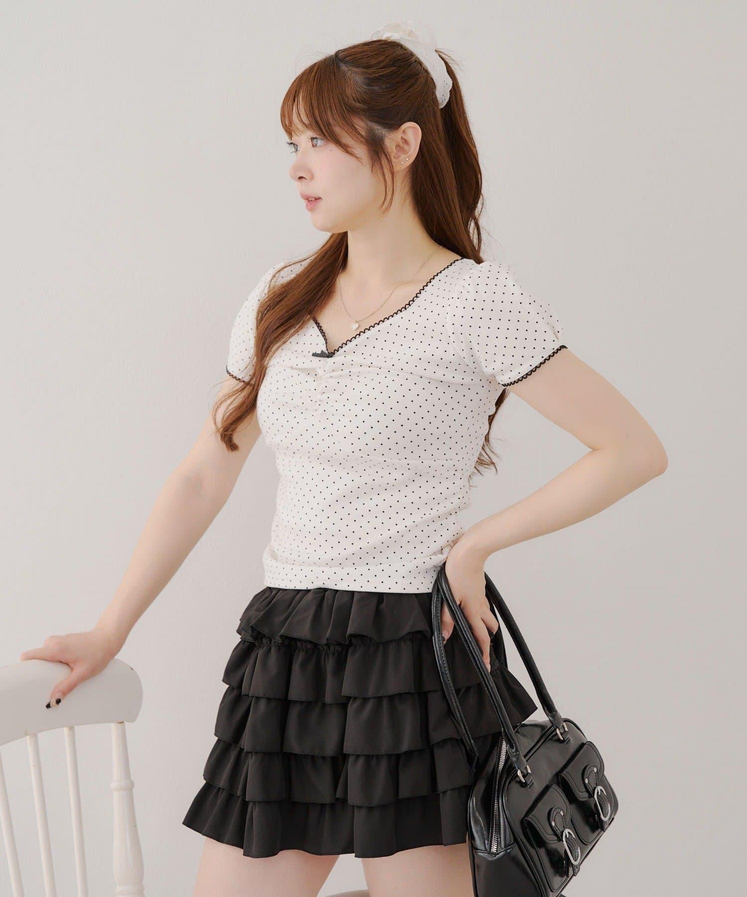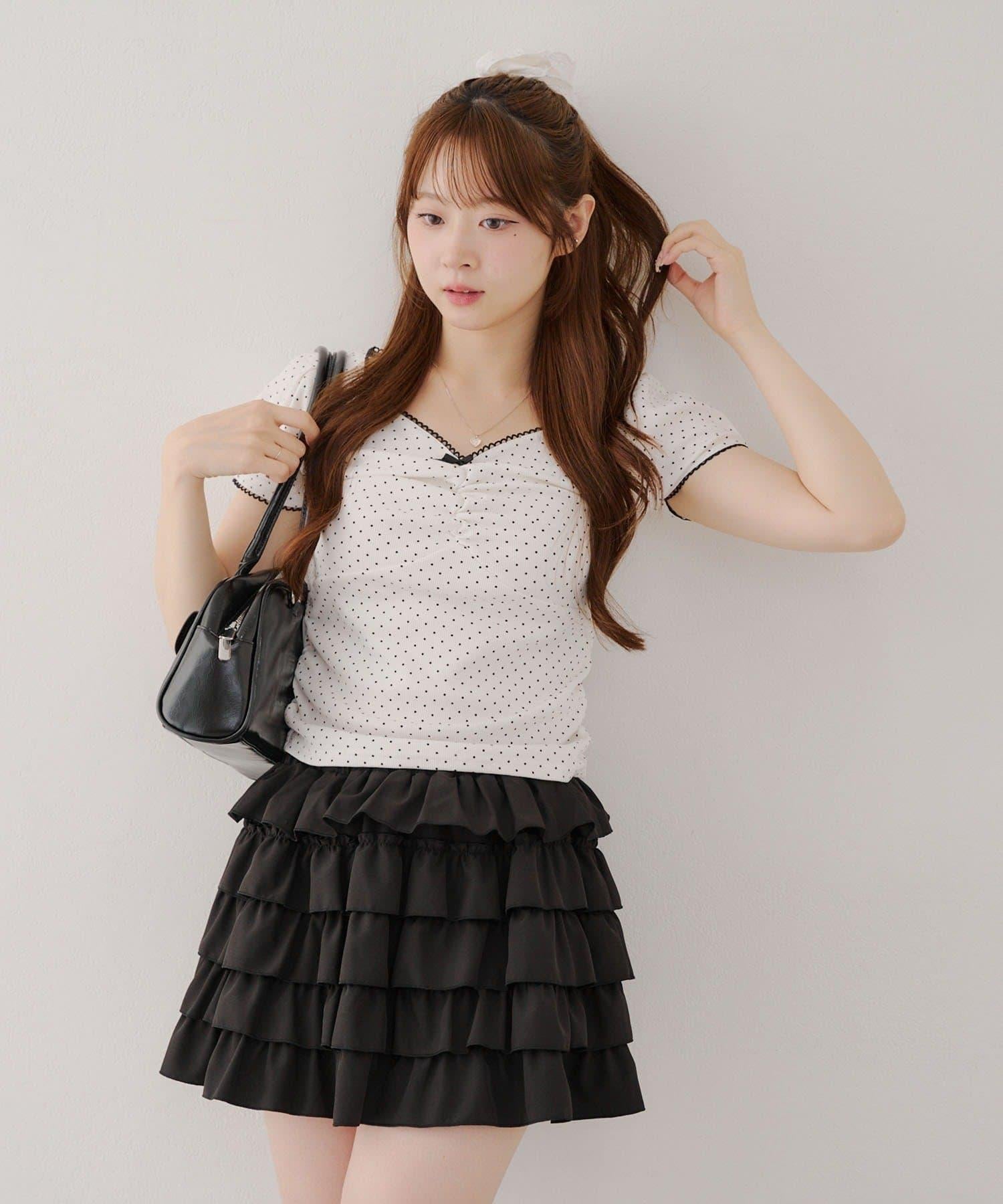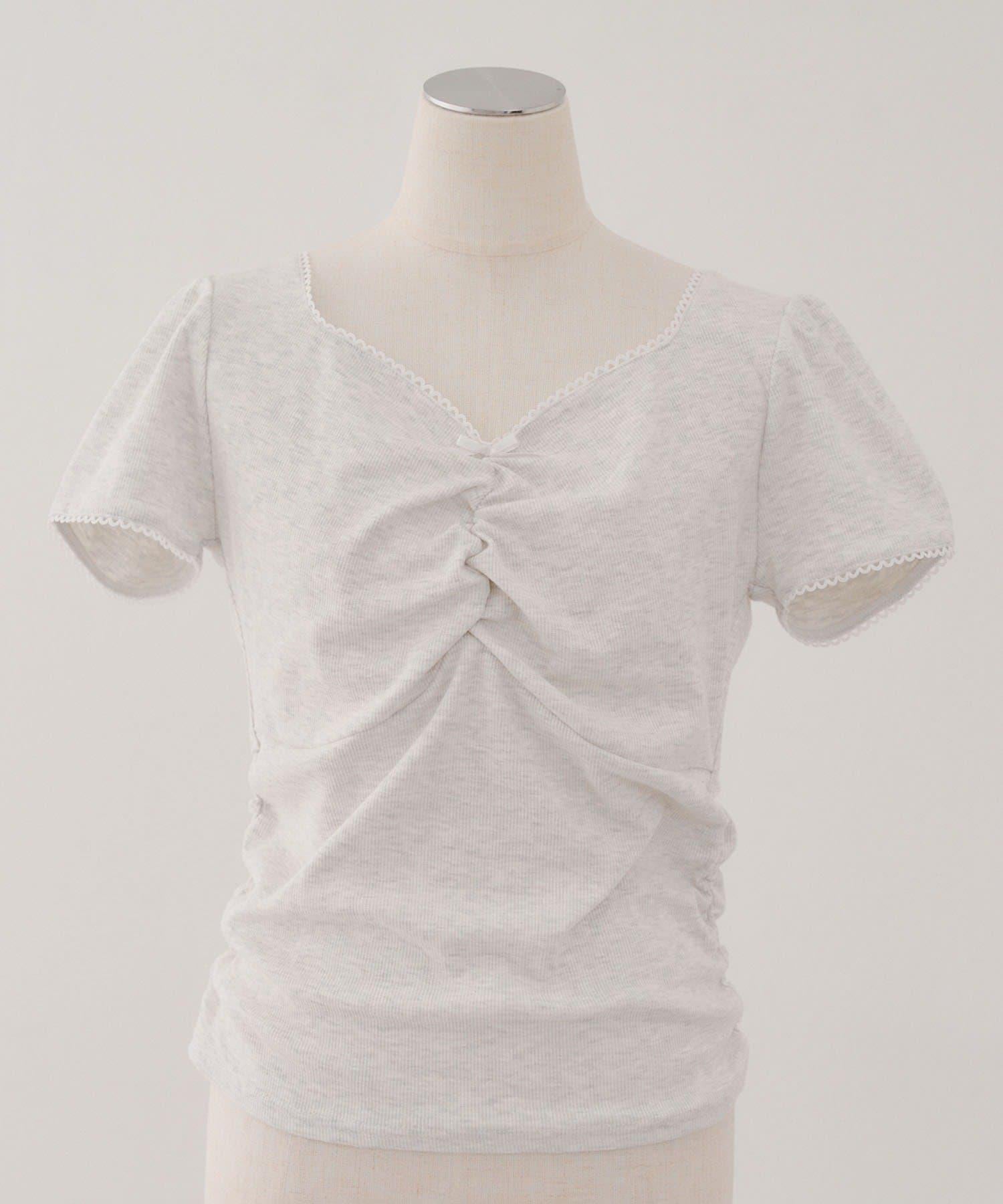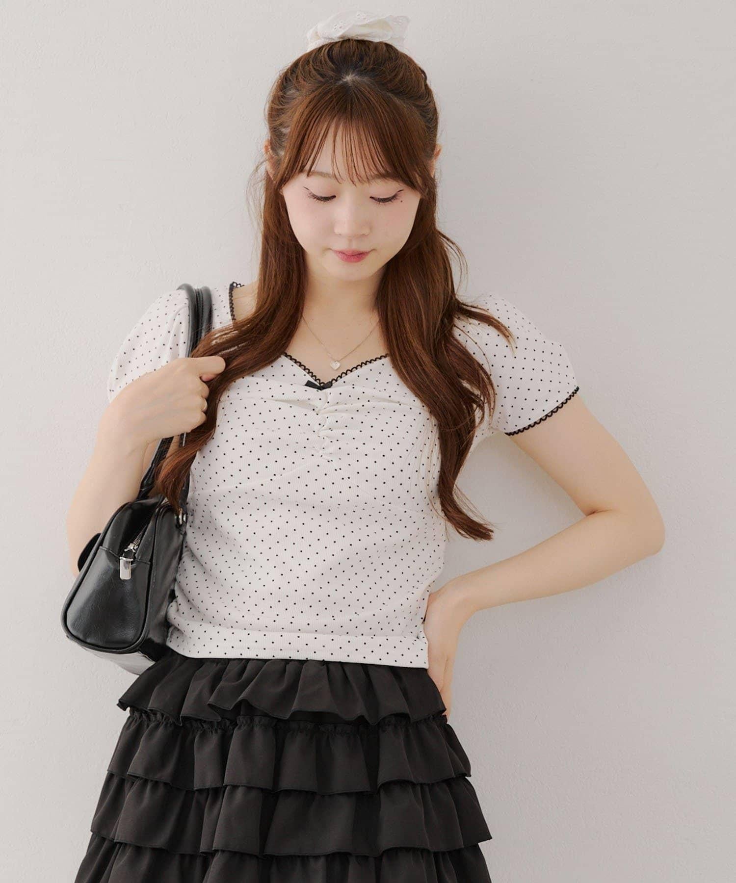這款 T 恤胸前的蕾絲花邊彰顯女性魅力。