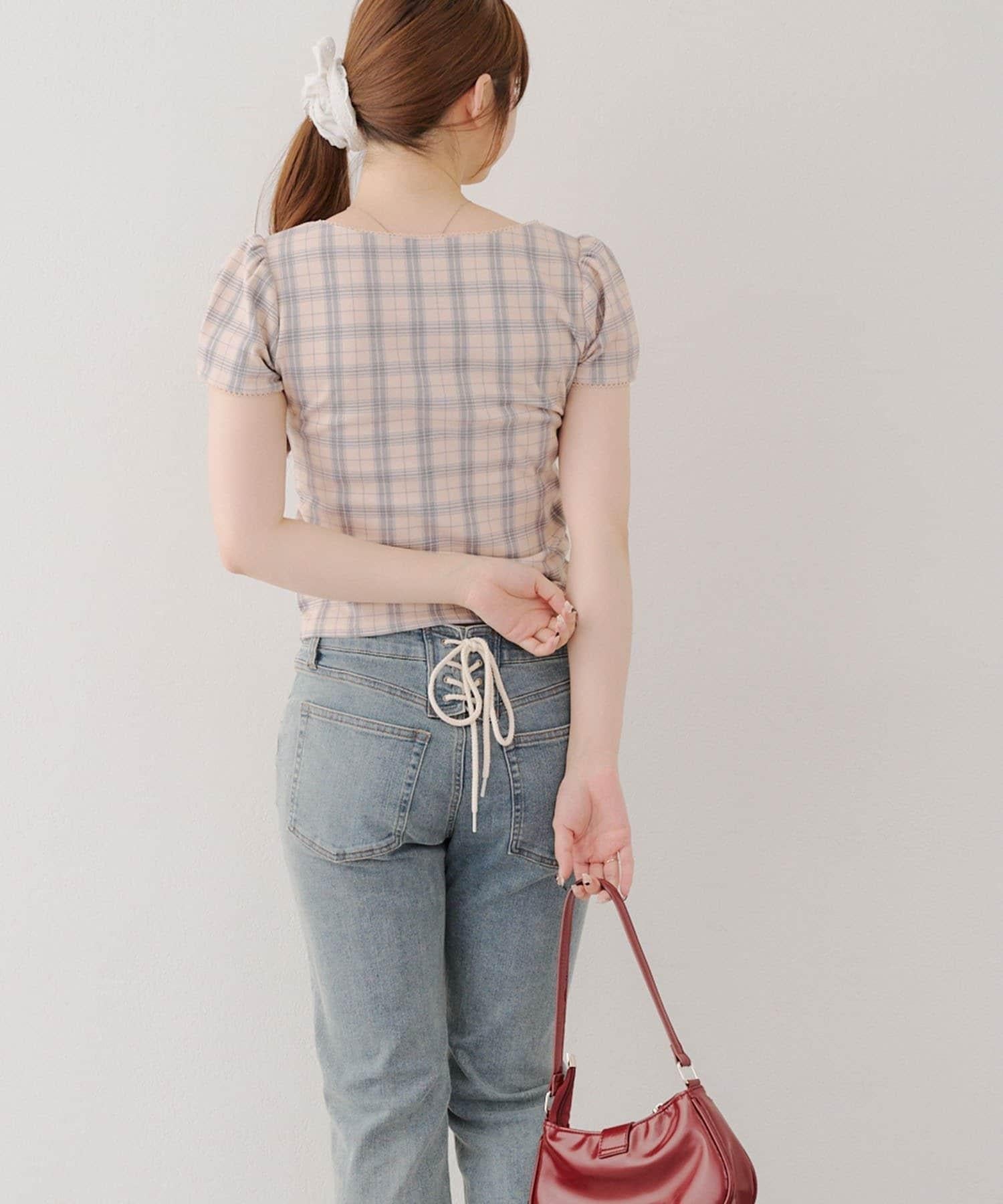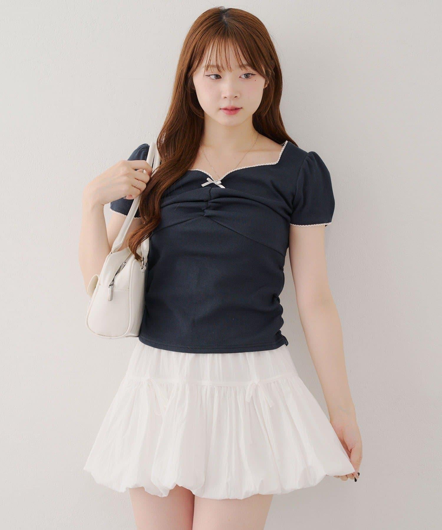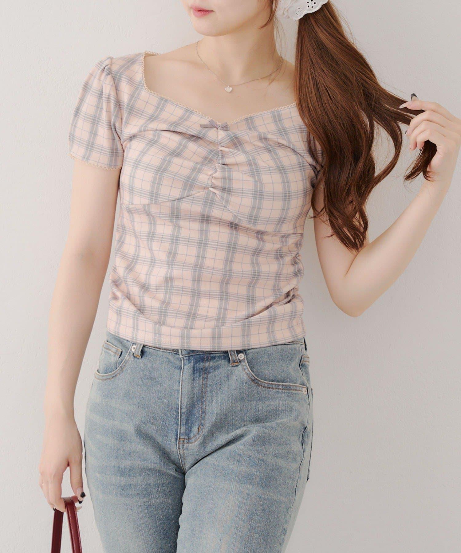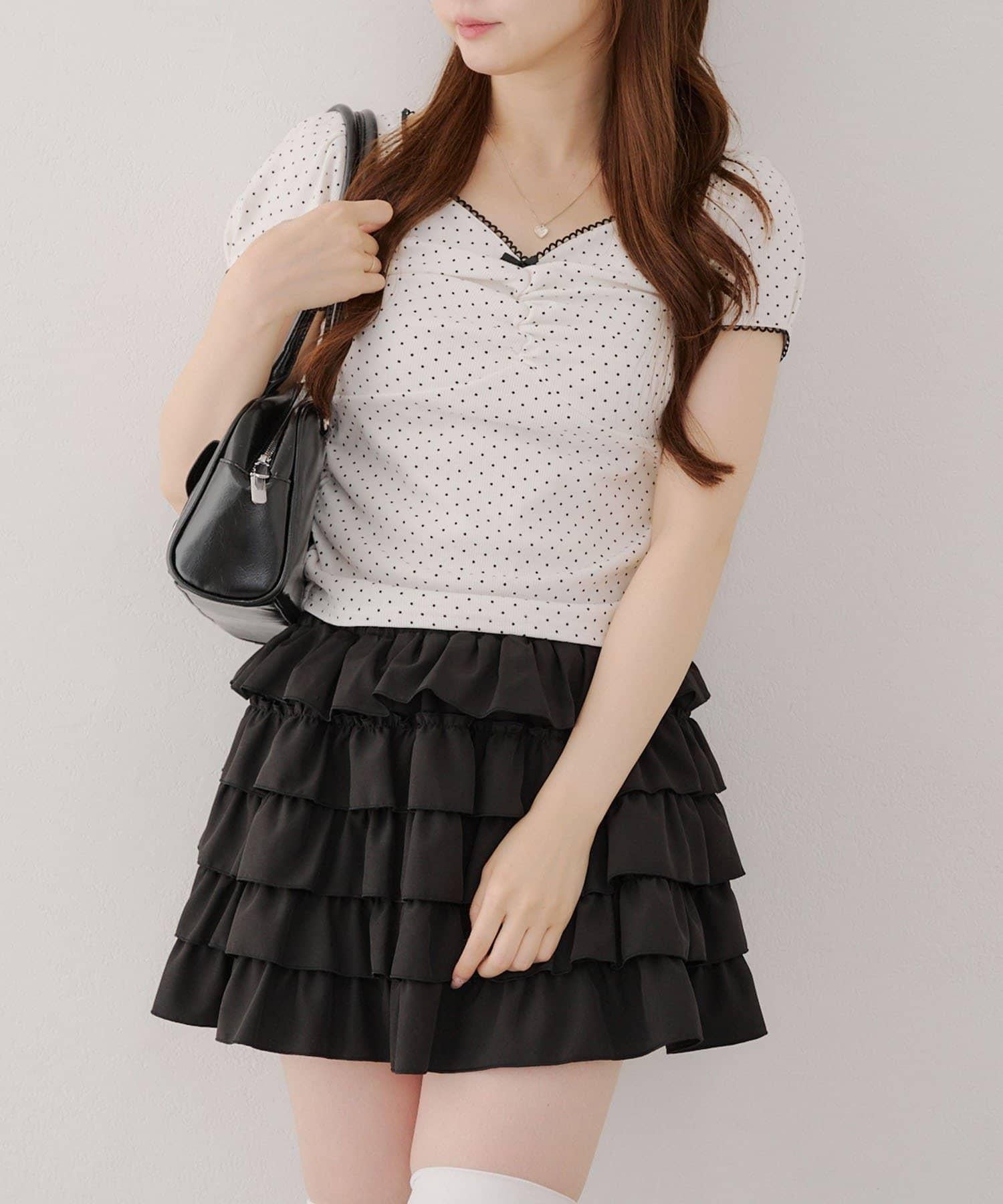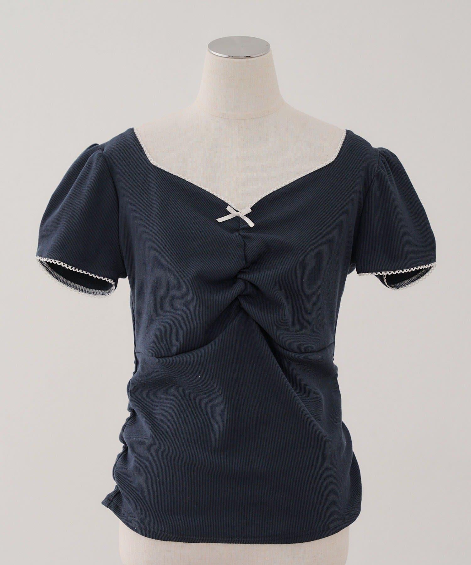 這款 T 恤胸前的蕾絲花邊彰顯女性魅力。
