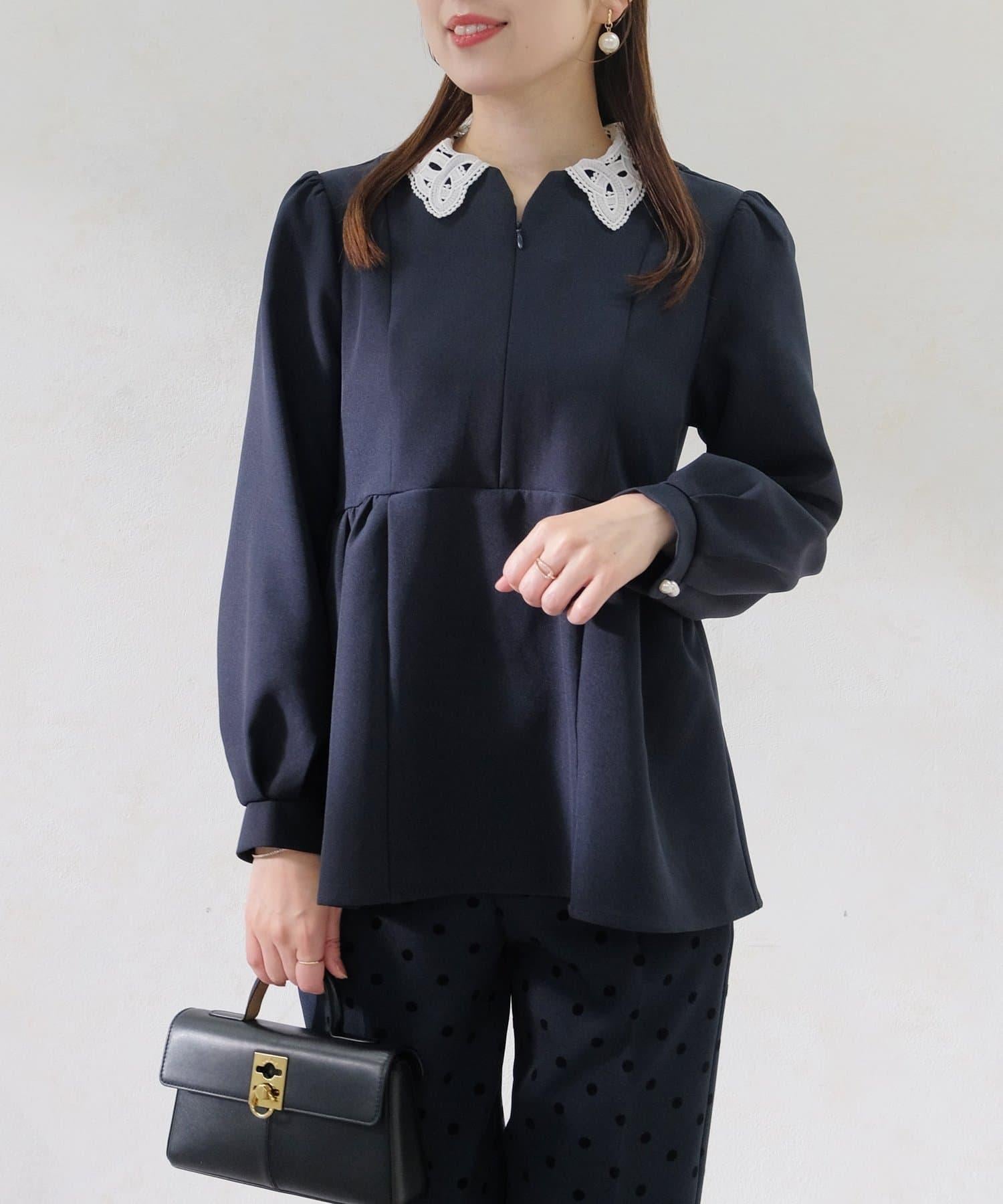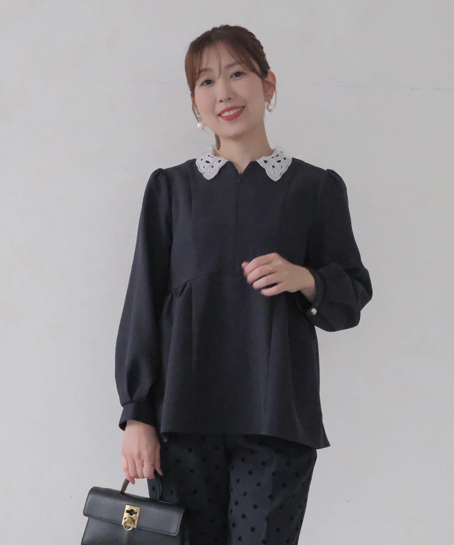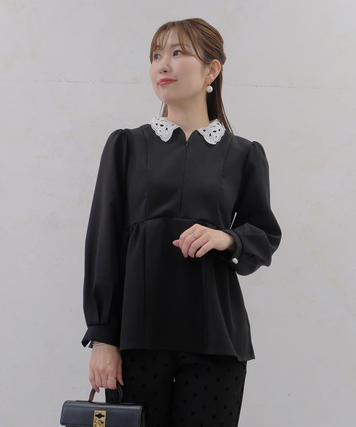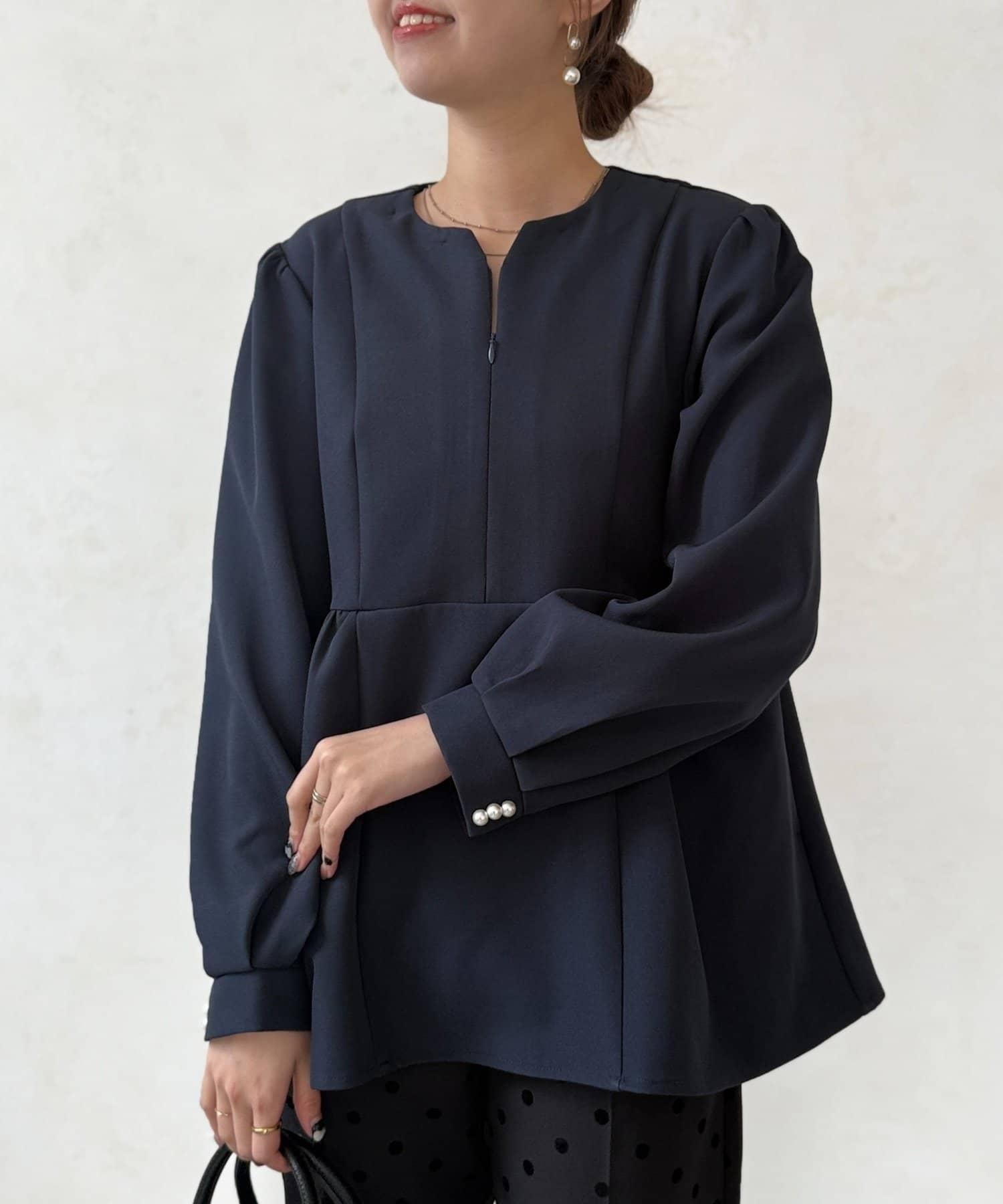 【MAYURI企畫】【適合正式場合】可拆卸領前拉鍊荷葉邊下襬襯衫