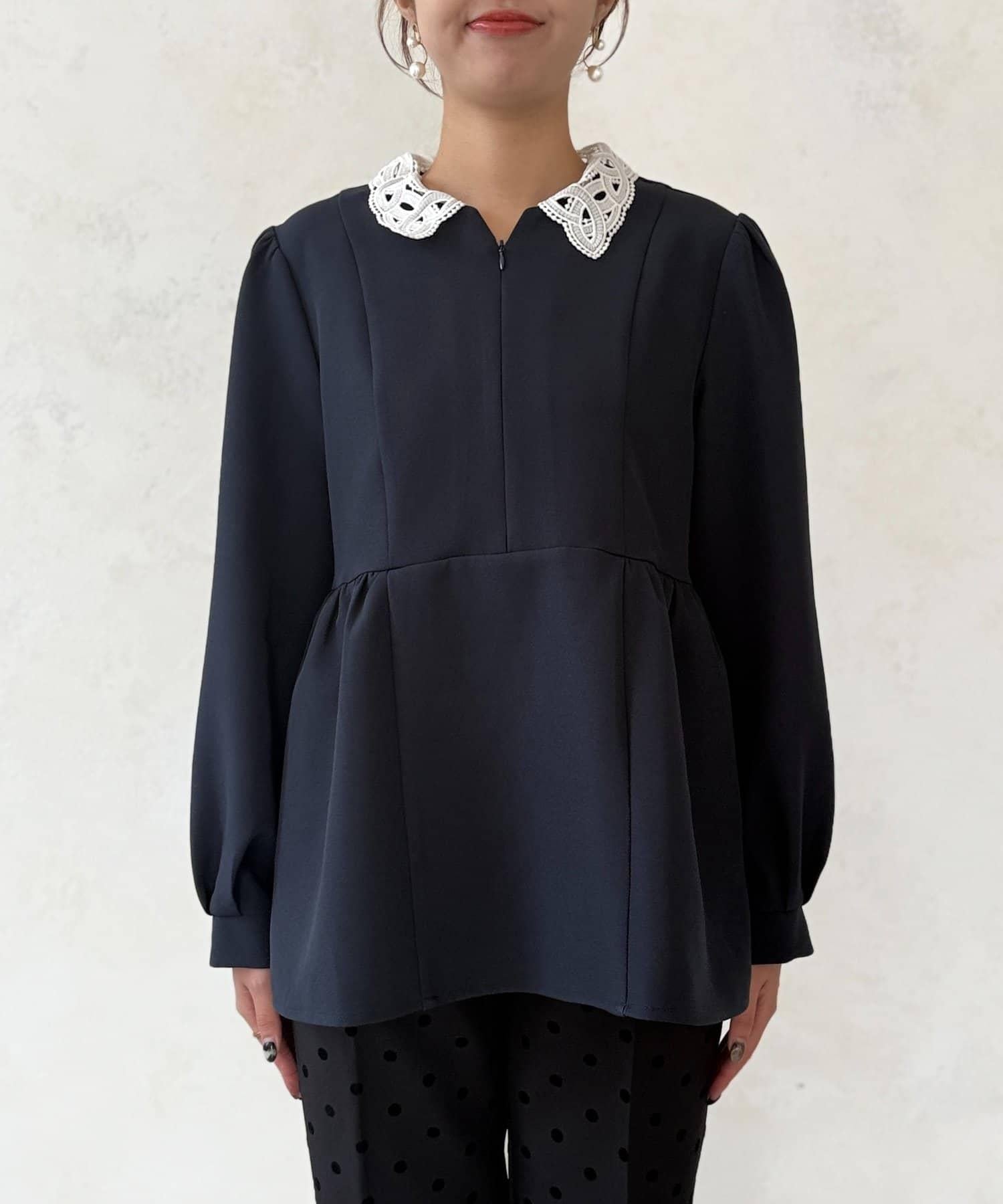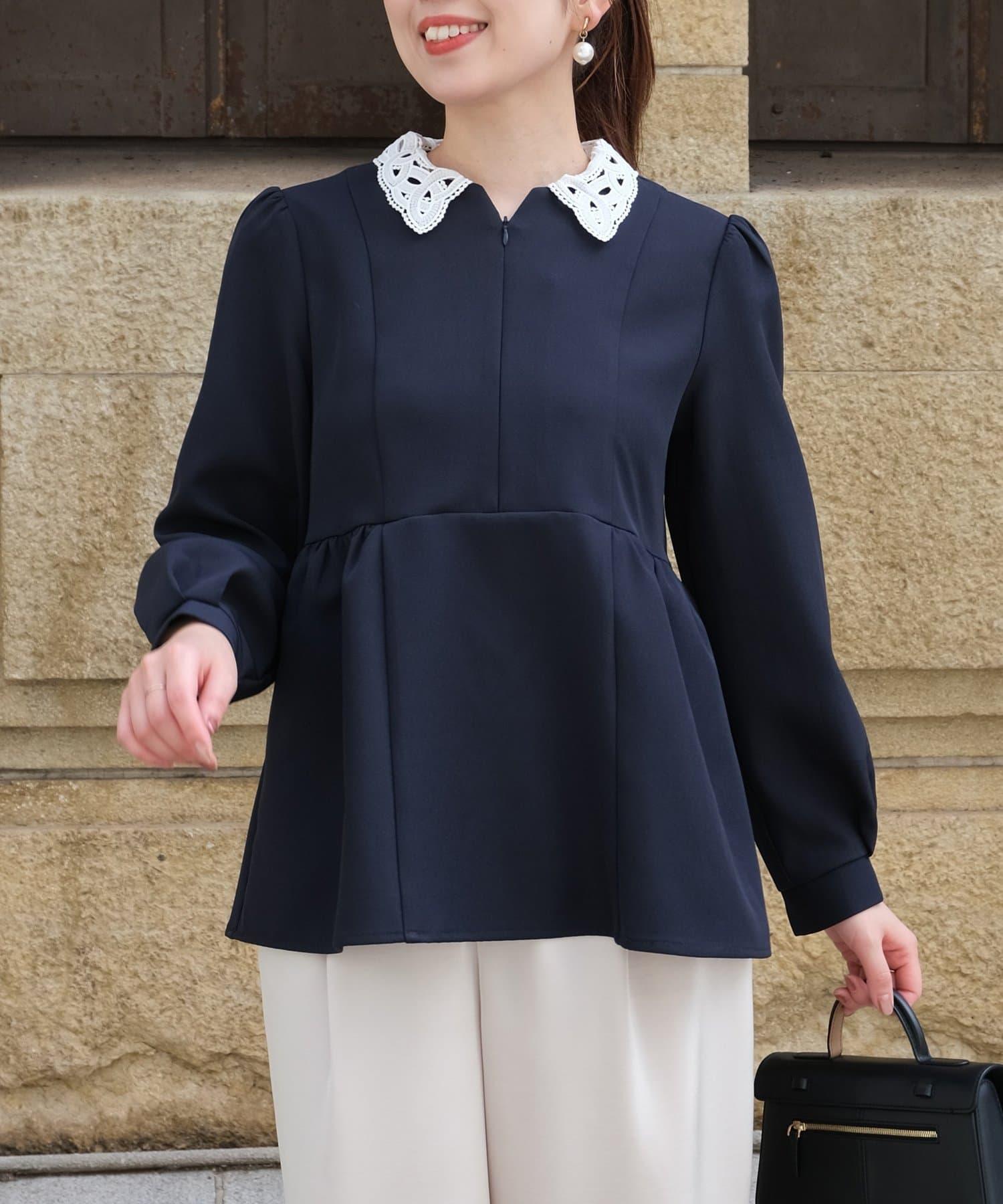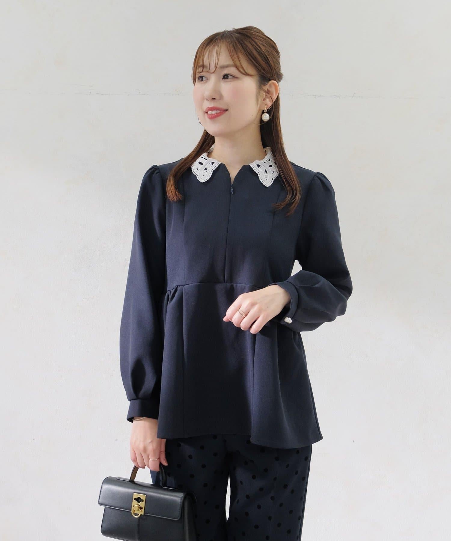 【MAYURI企畫】【適合正式場合】可拆卸領前拉鍊荷葉邊下襬襯衫