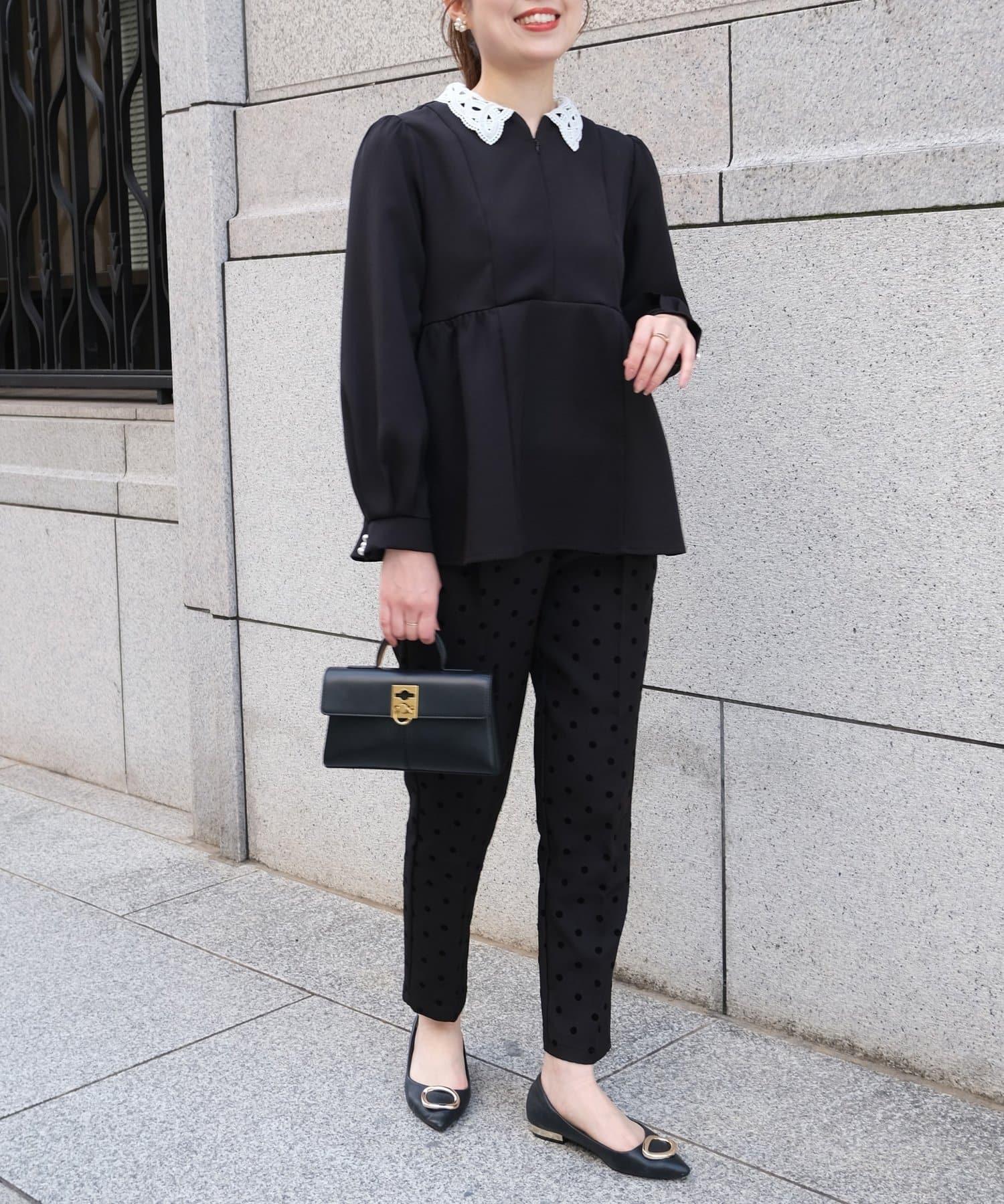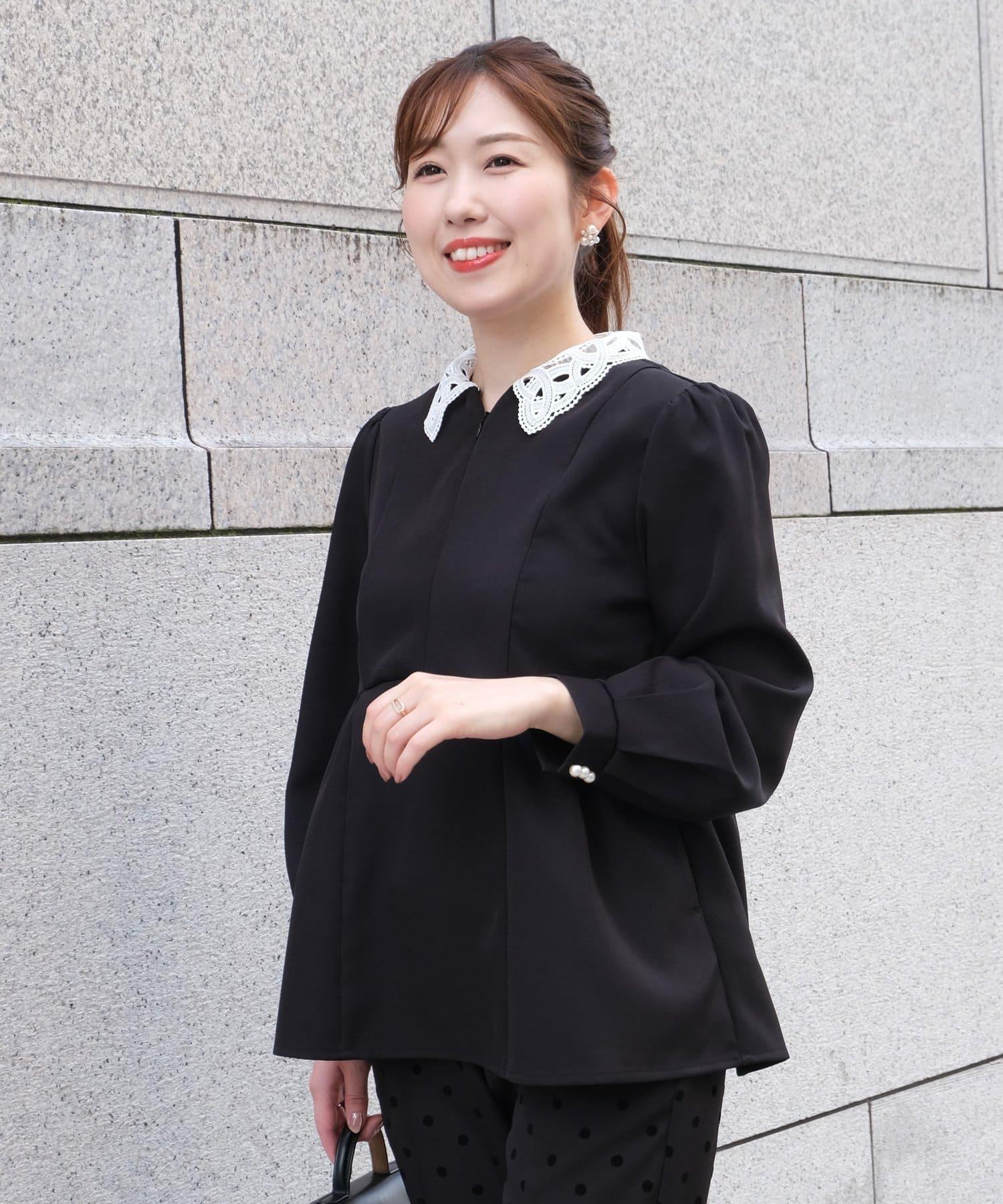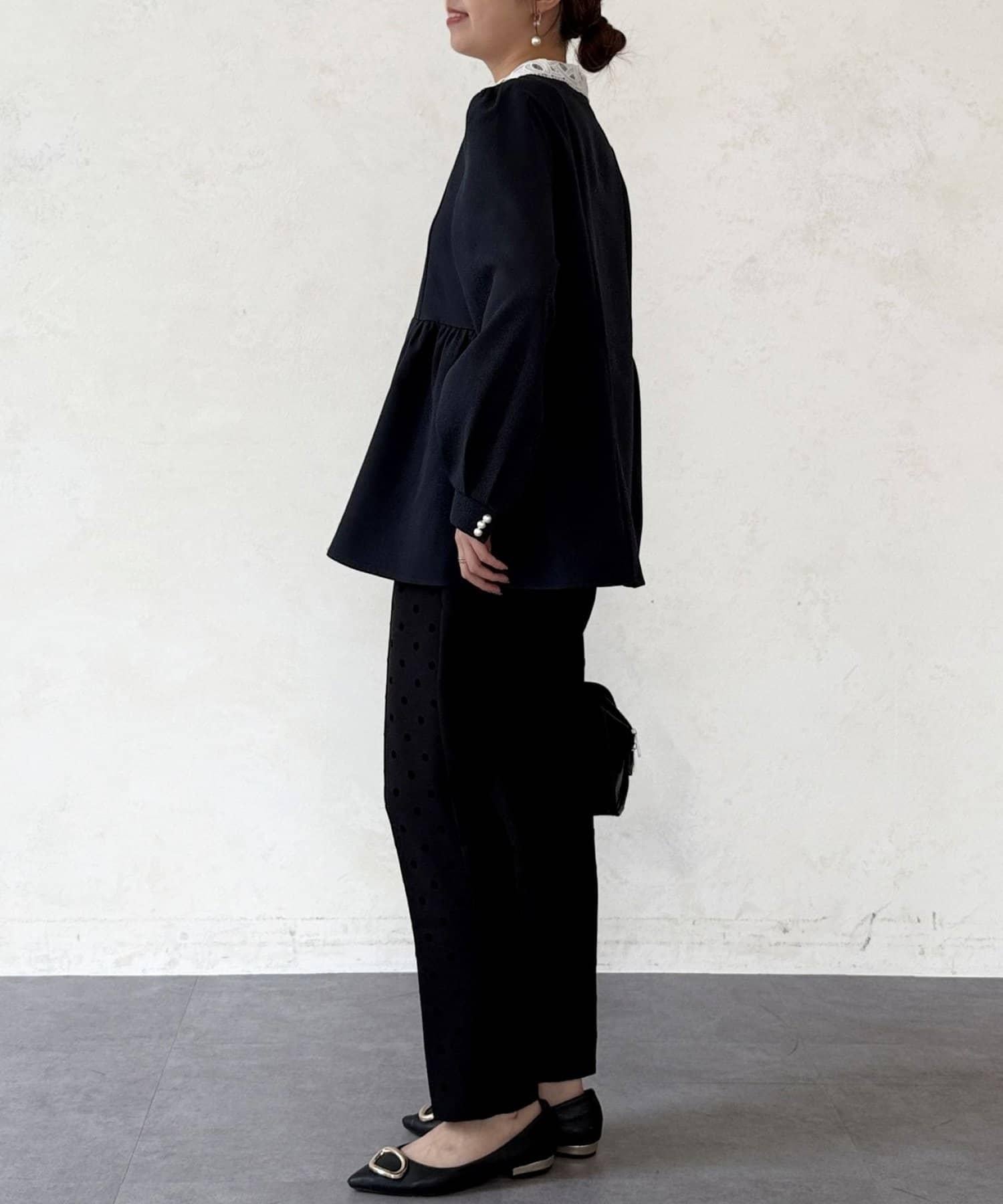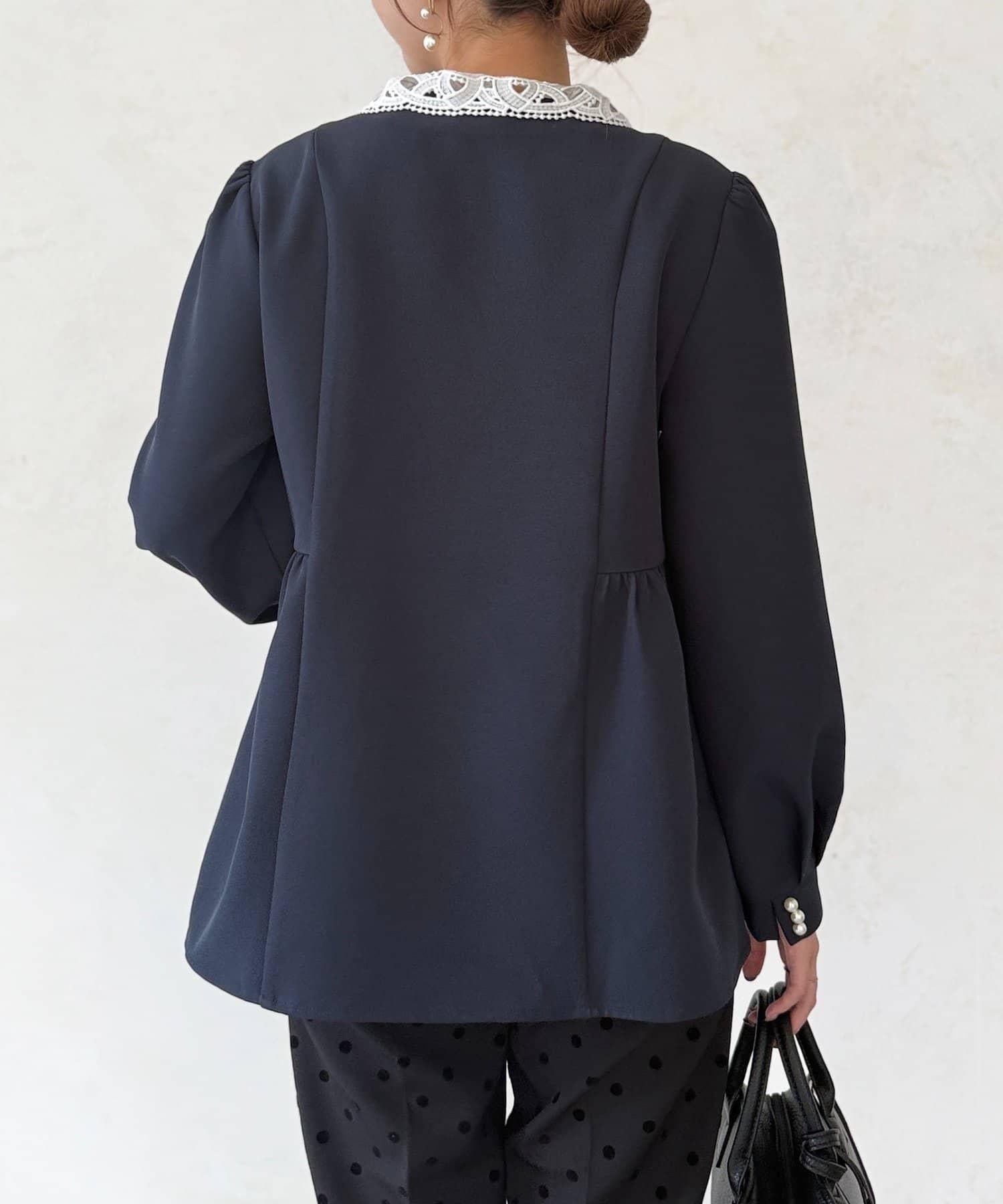 【MAYURI企畫】【適合正式場合】可拆卸領前拉鍊荷葉邊下襬襯衫