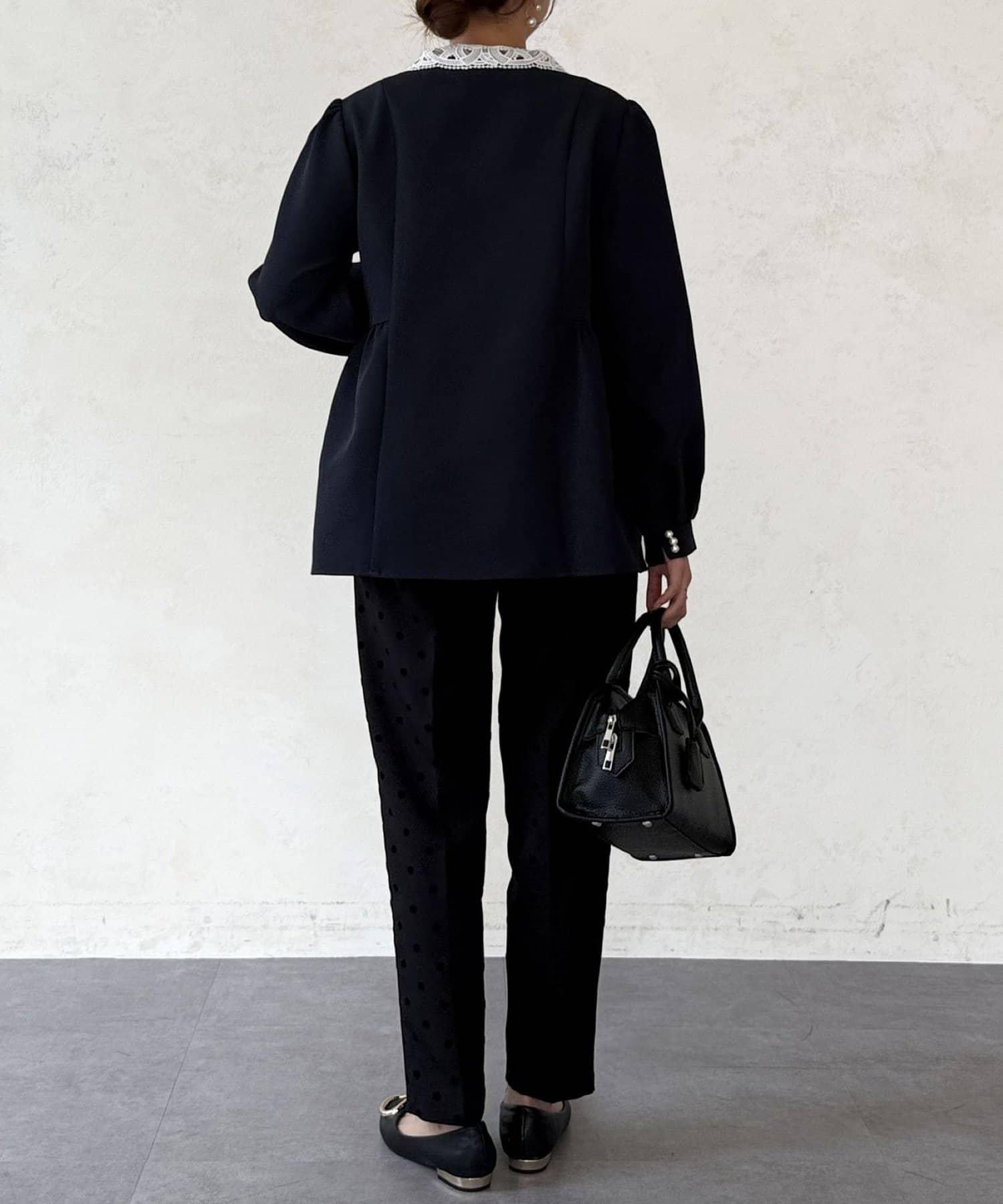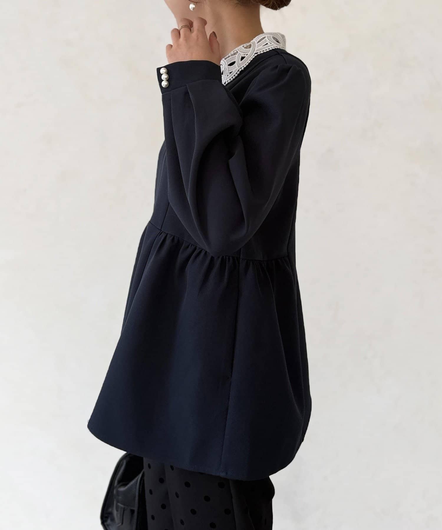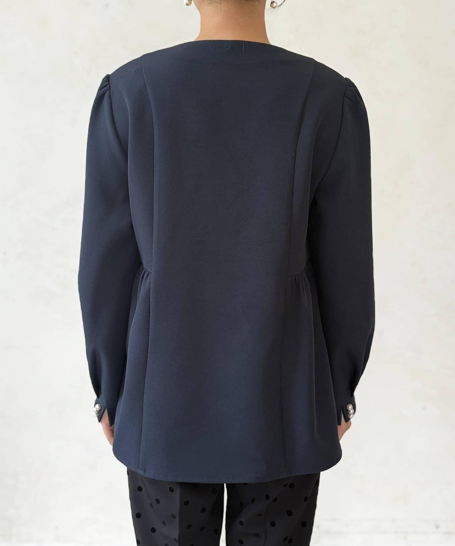 袖子上的珍珠鈕釦給人一種含蓄的魅力,非常適合禮儀場合。