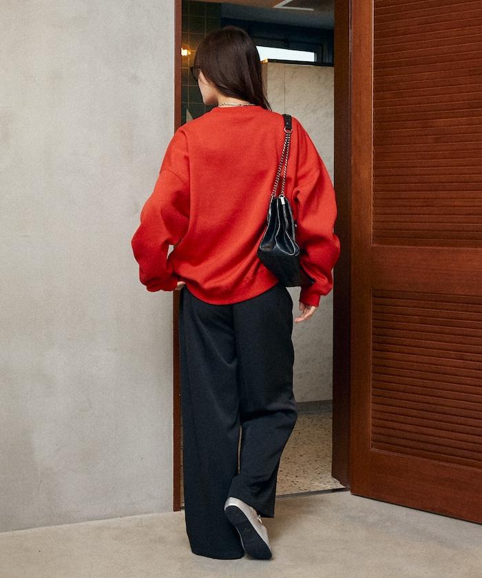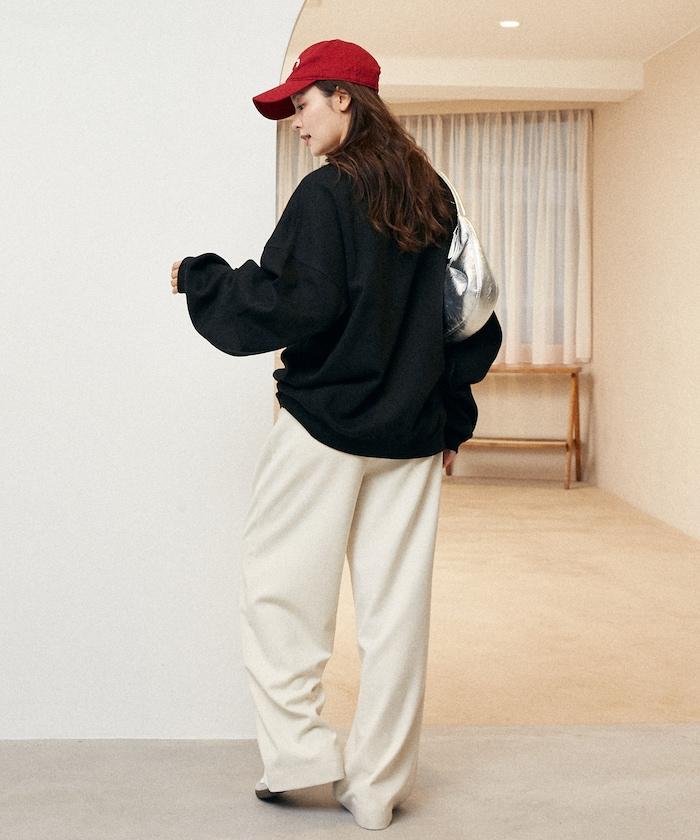 選取徽標和印花的配色,搭配同色系的內搭和配飾,完成統一的搭配◎。