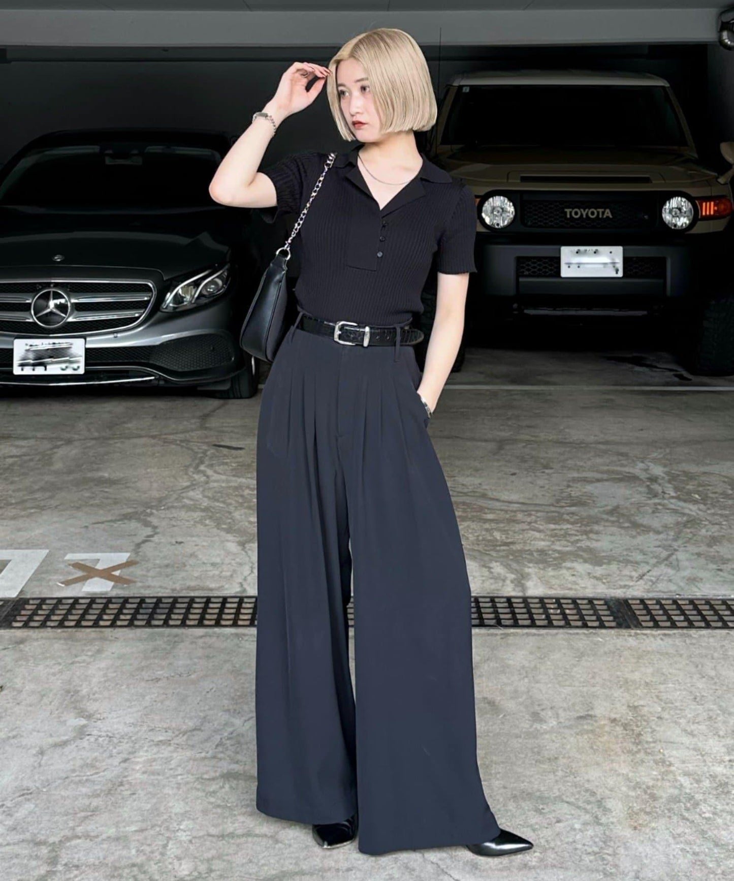 也建議搭配短款上衣,並將腰部內收,使腰部看起來更纖細!