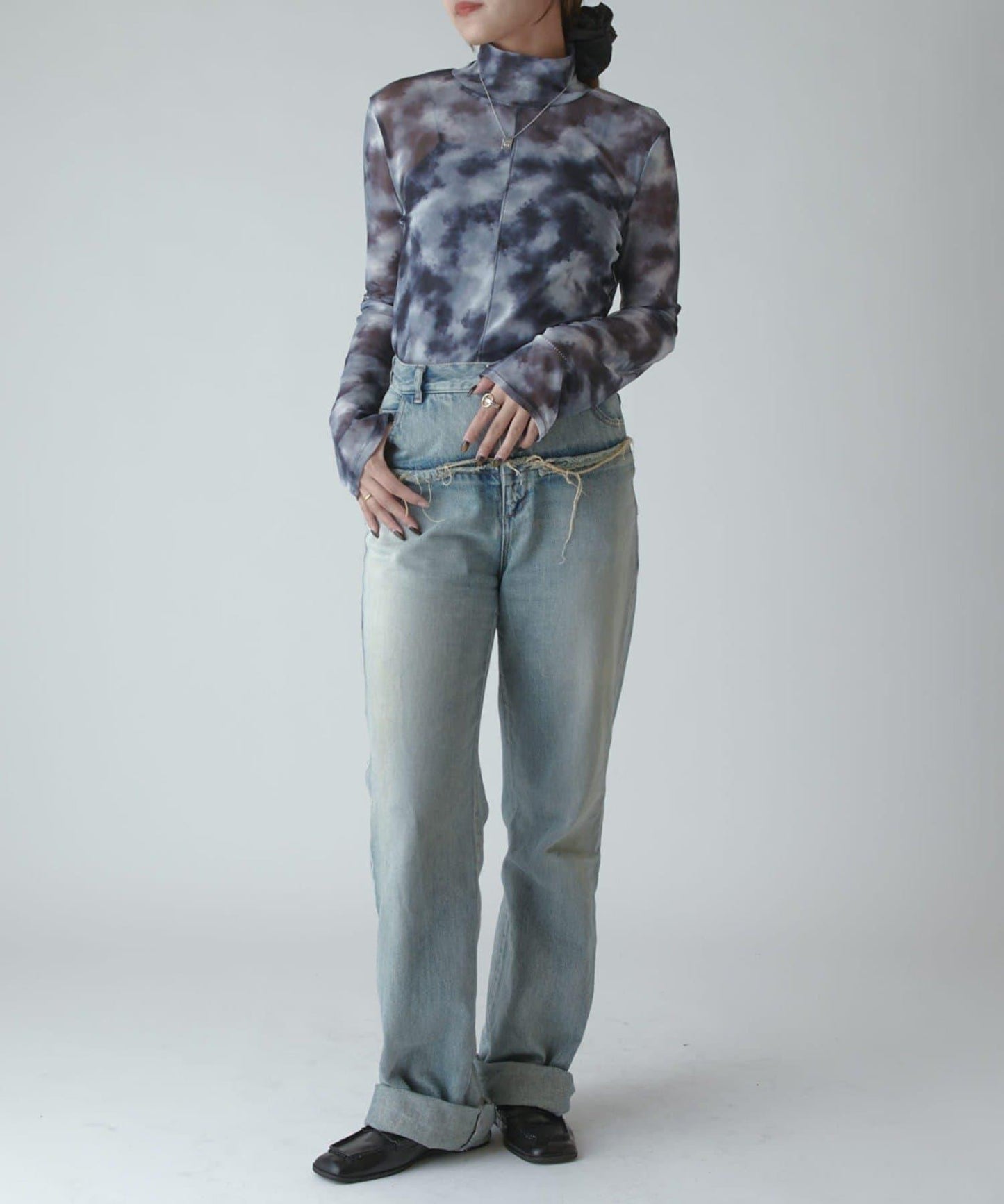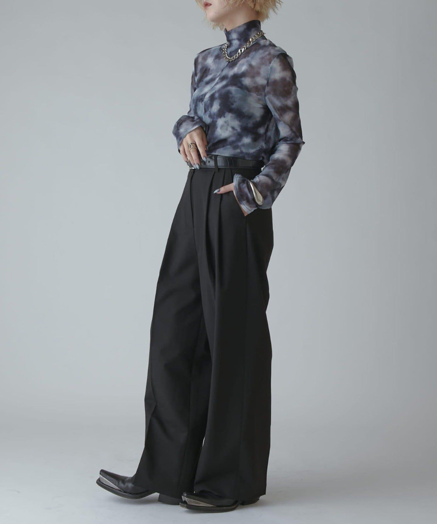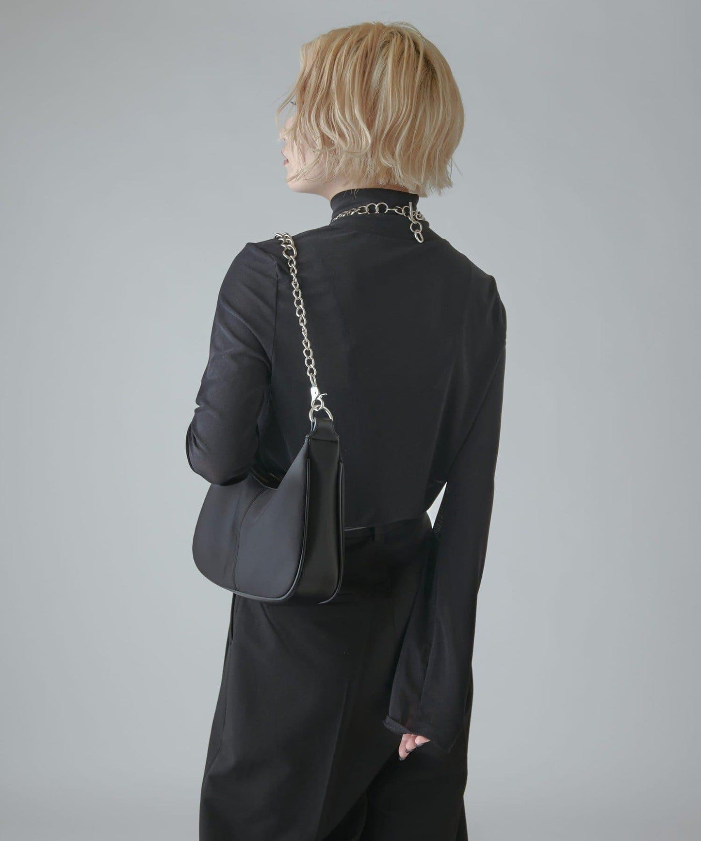 模擬領口的高度恰到好處,搭配項鍊也很不錯。