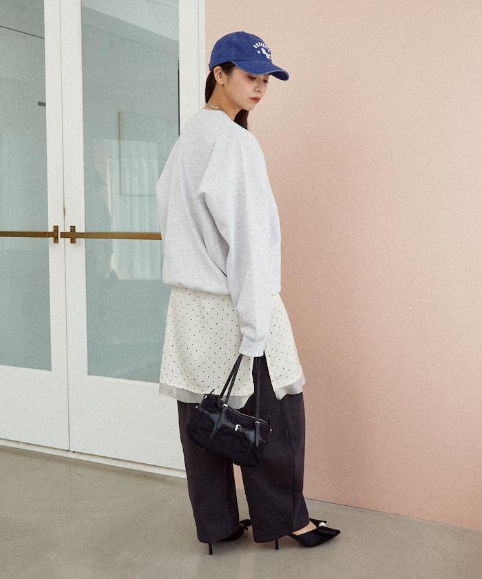 長度剛好遮住臀部,略微偏大的廓形避免了身體曲線的起伏。
