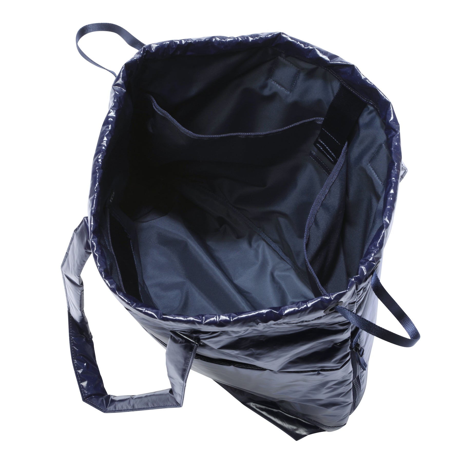 Tote bag,規格在擠壓開口繩時從方形變成圓形的抽繩輪廓。外部口袋用於存儲和設計,內部口袋用於存儲筆記本電腦和平板電腦。側面口袋在包包掛在肩上時易於打開和關閉,方便存放智能手機。