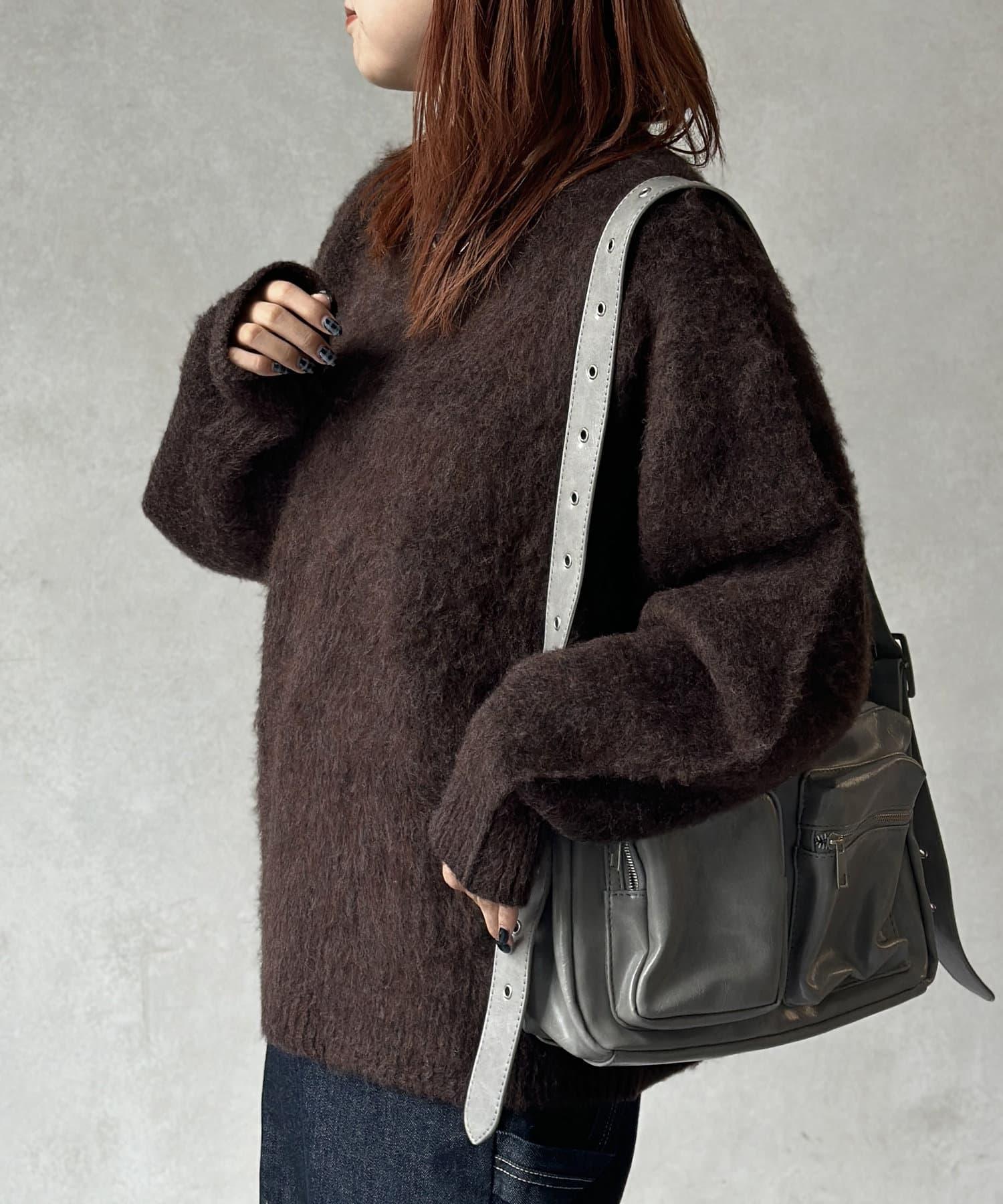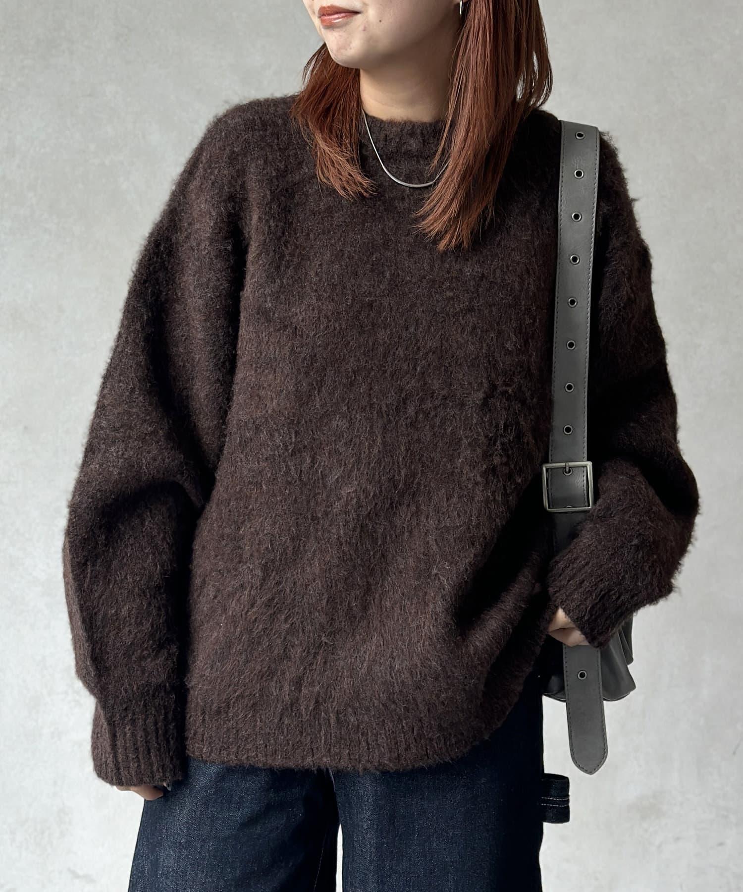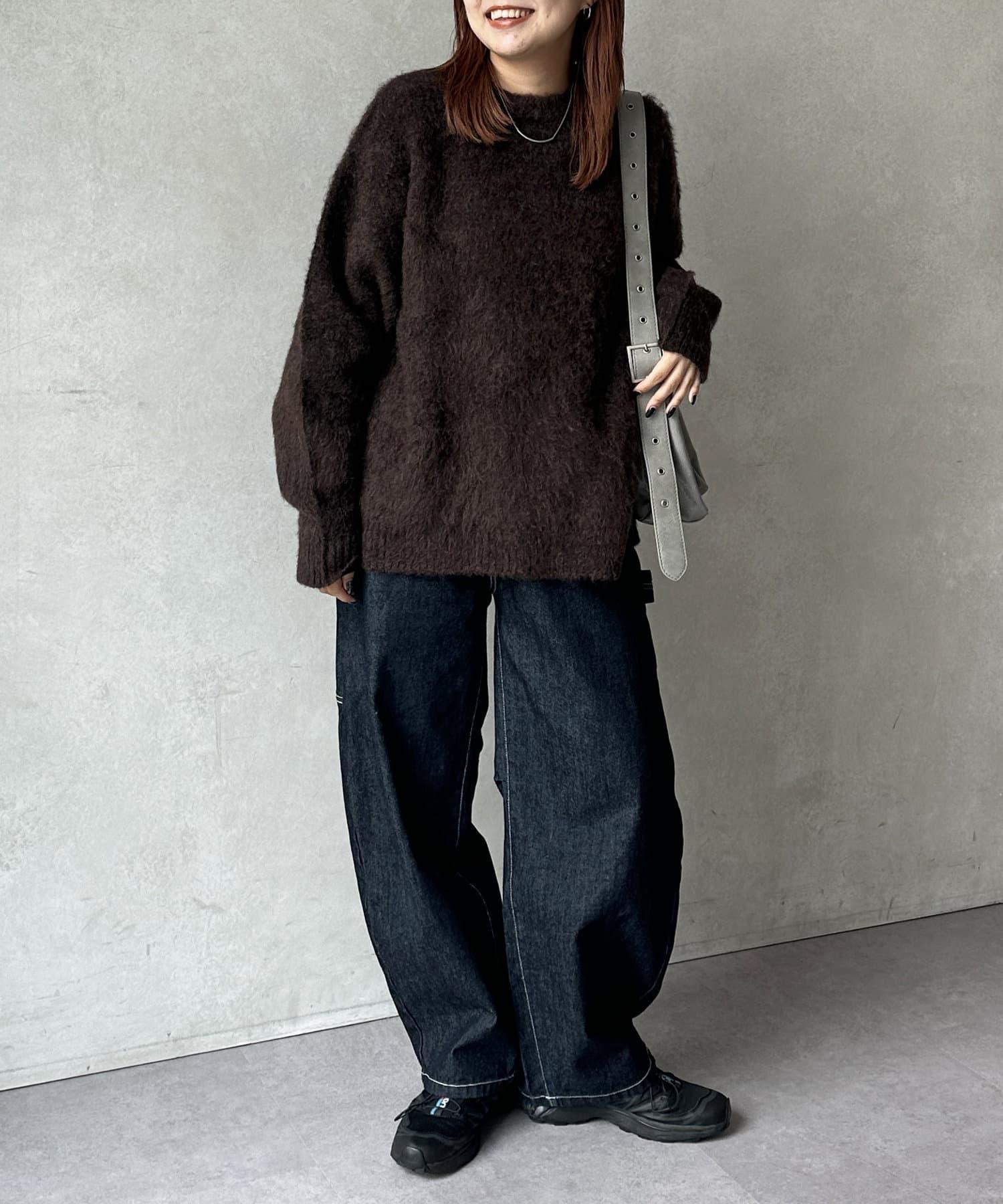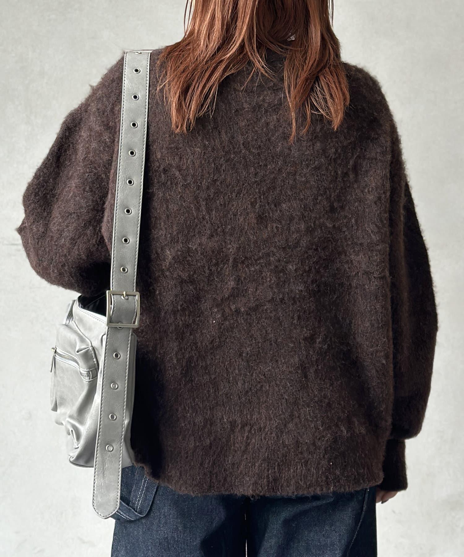 寬鬆、蓬鬆的仿馬海毛面料打造出潮流感十足的廓形。
