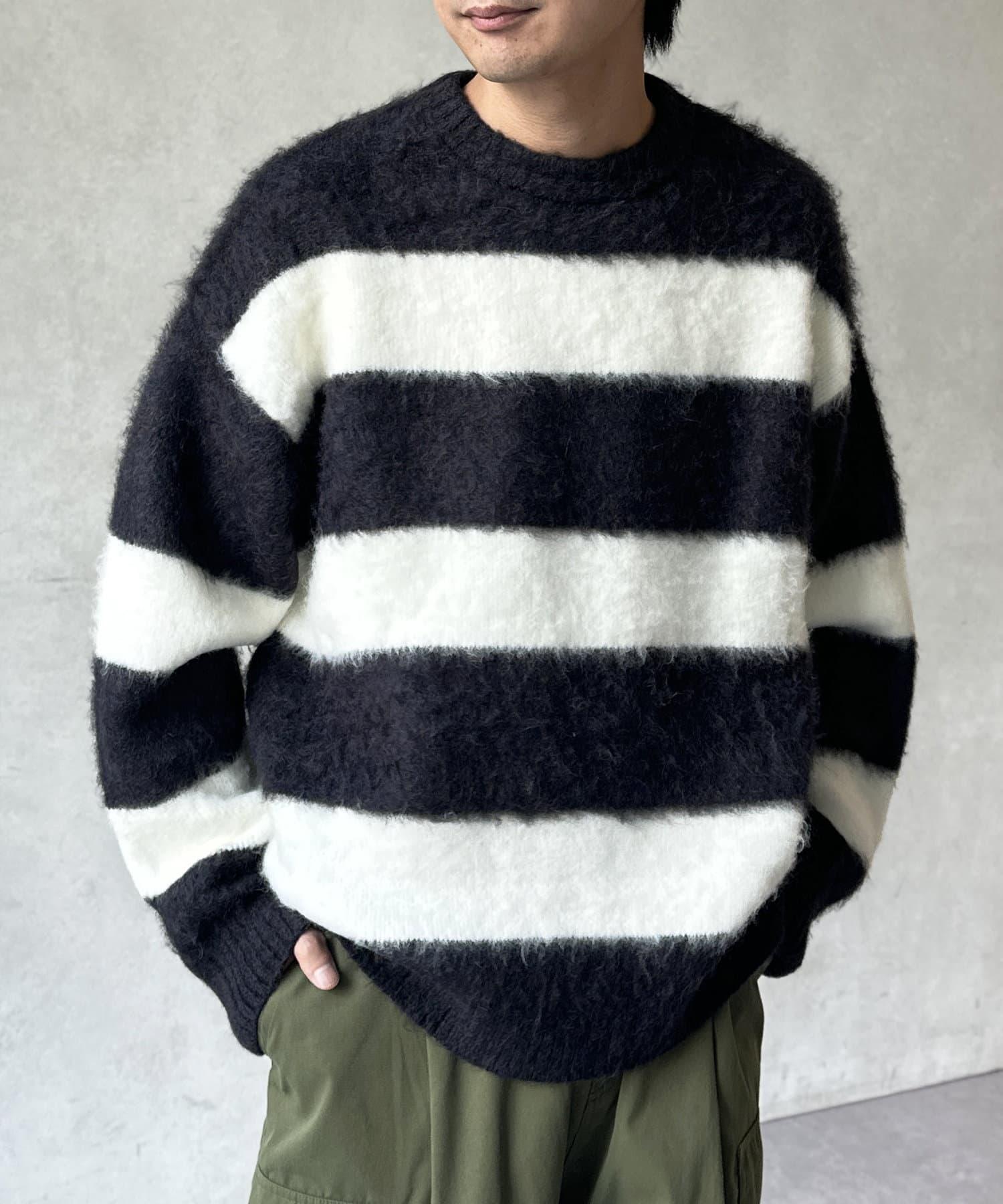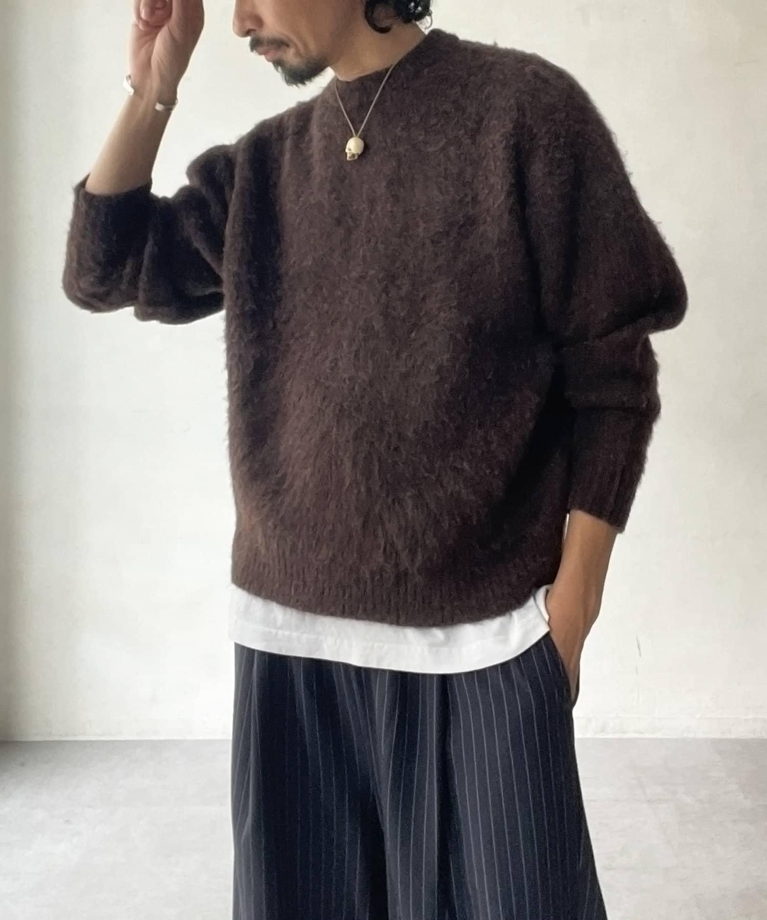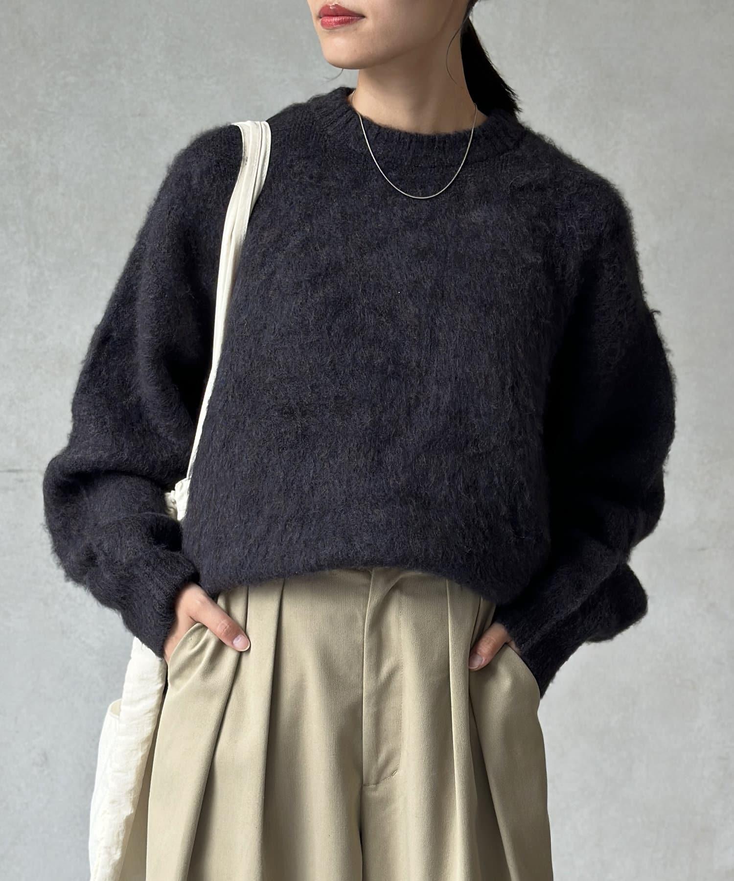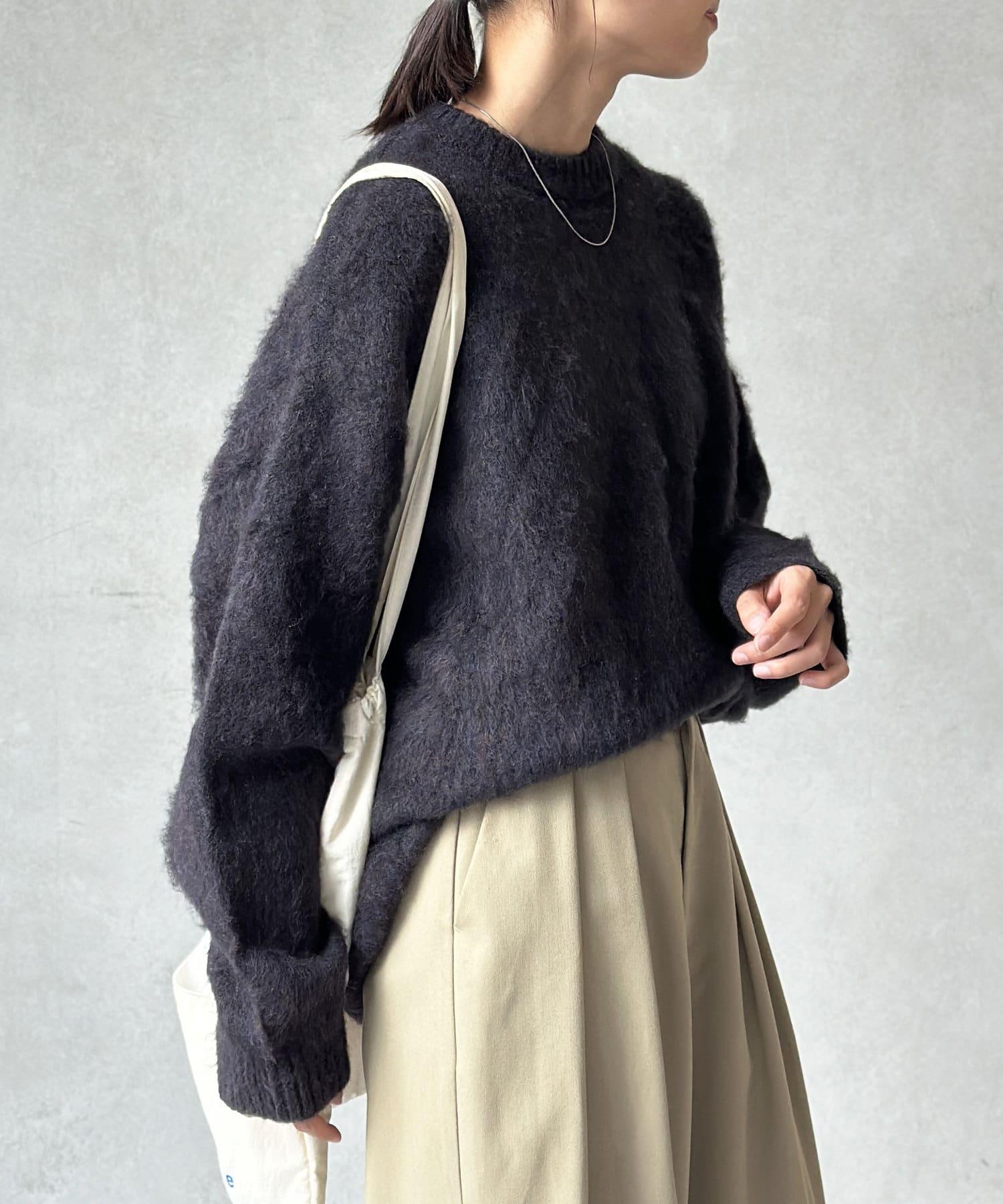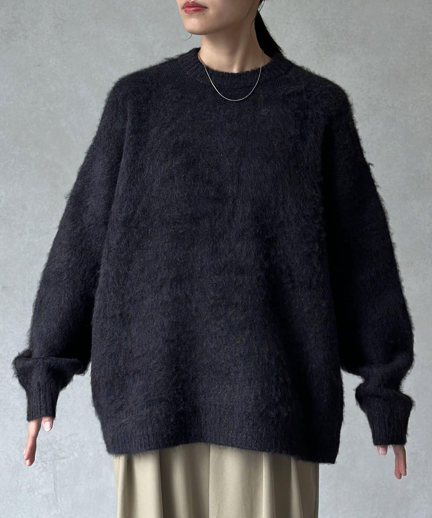 寬鬆、蓬鬆的仿馬海毛面料打造出潮流感十足的廓形。