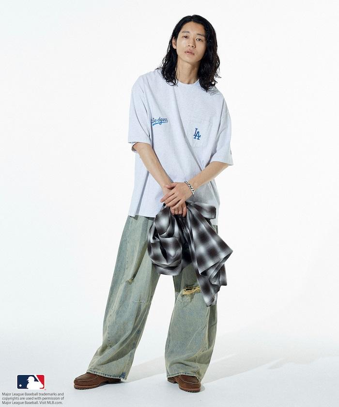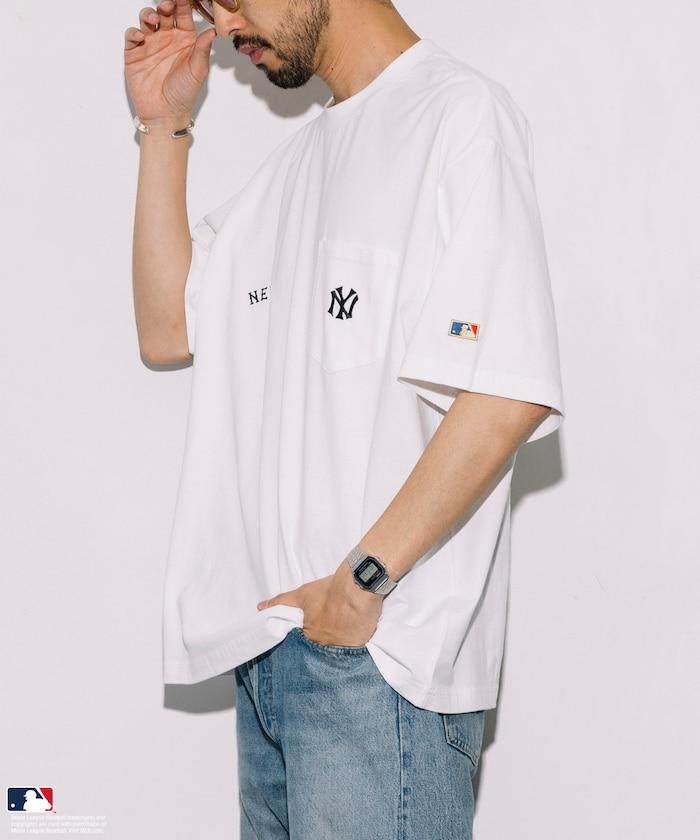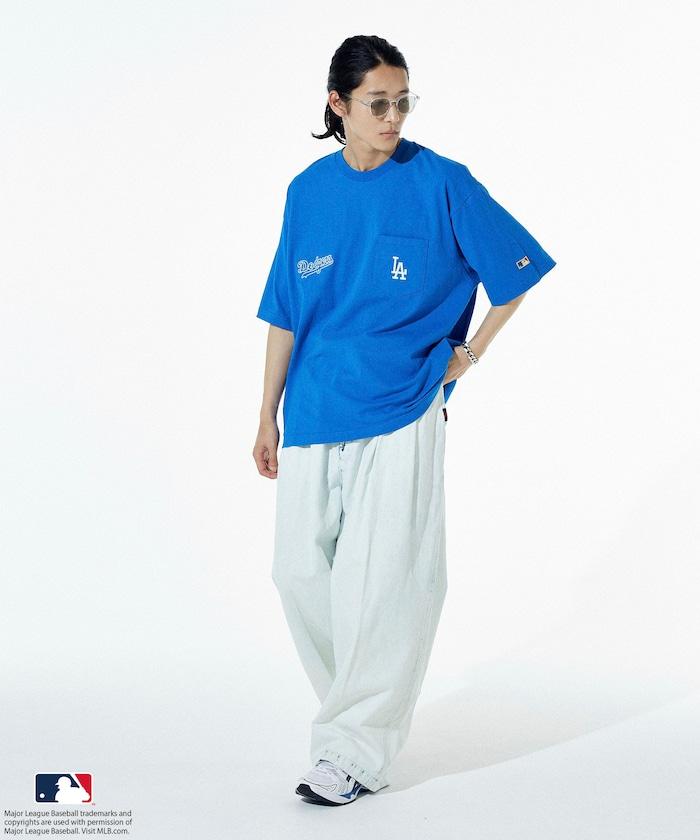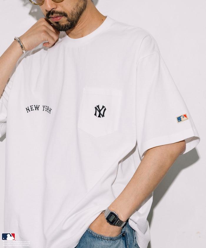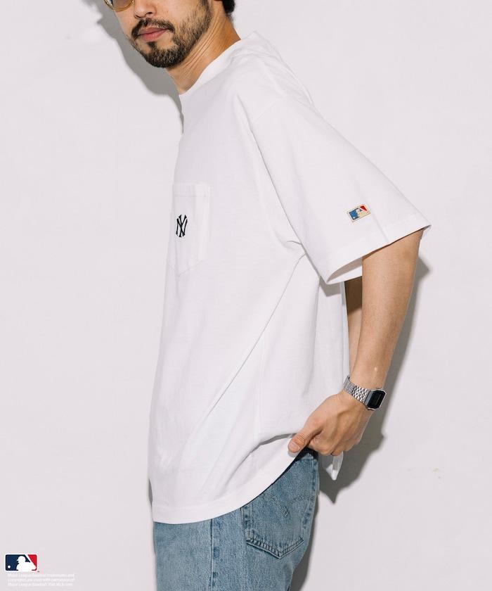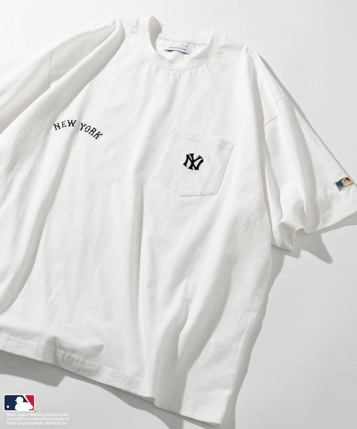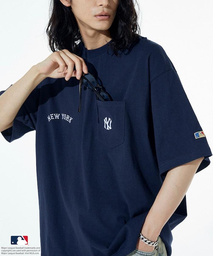 以 MLB 徽標和口袋為點綴進行剪裁和縫製。