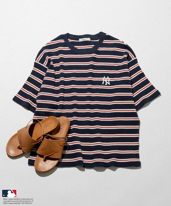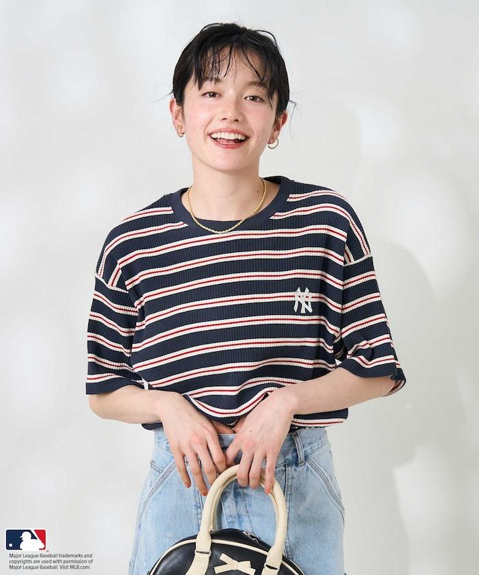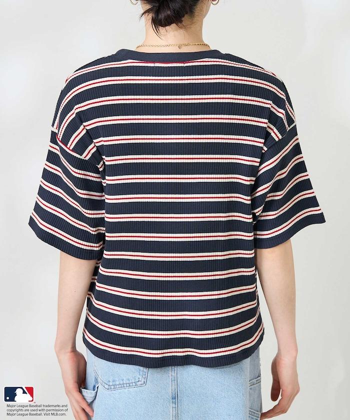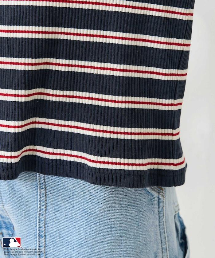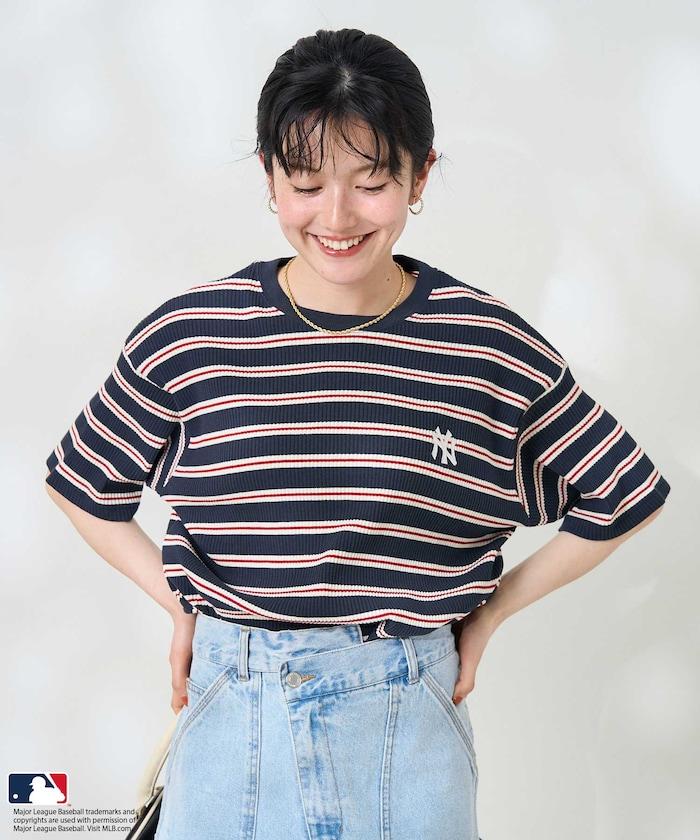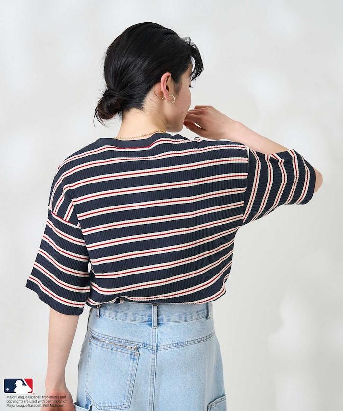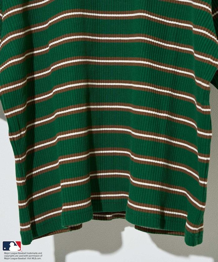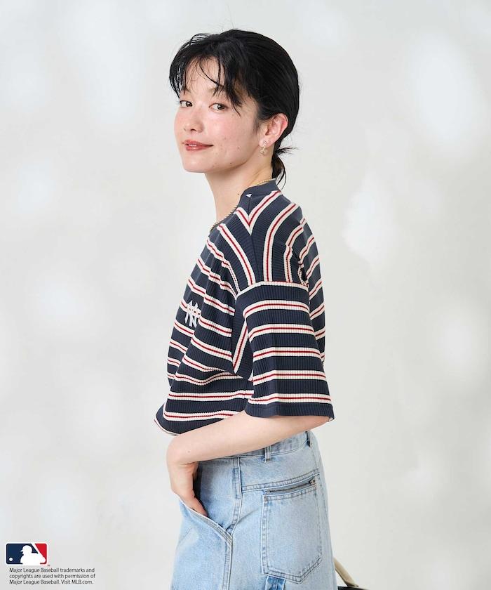 帶有多條紋裝飾的 MLBT 襯衫,烘托季節氣氛。
