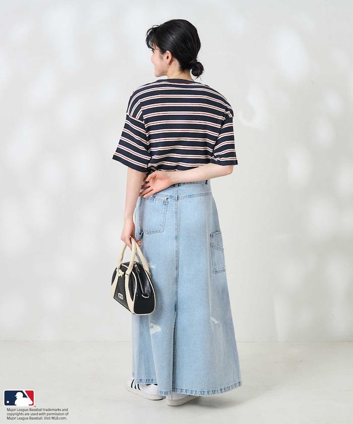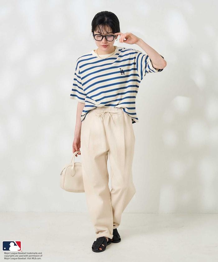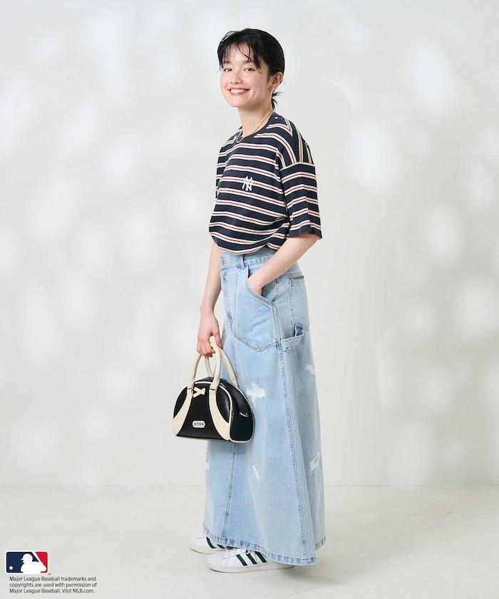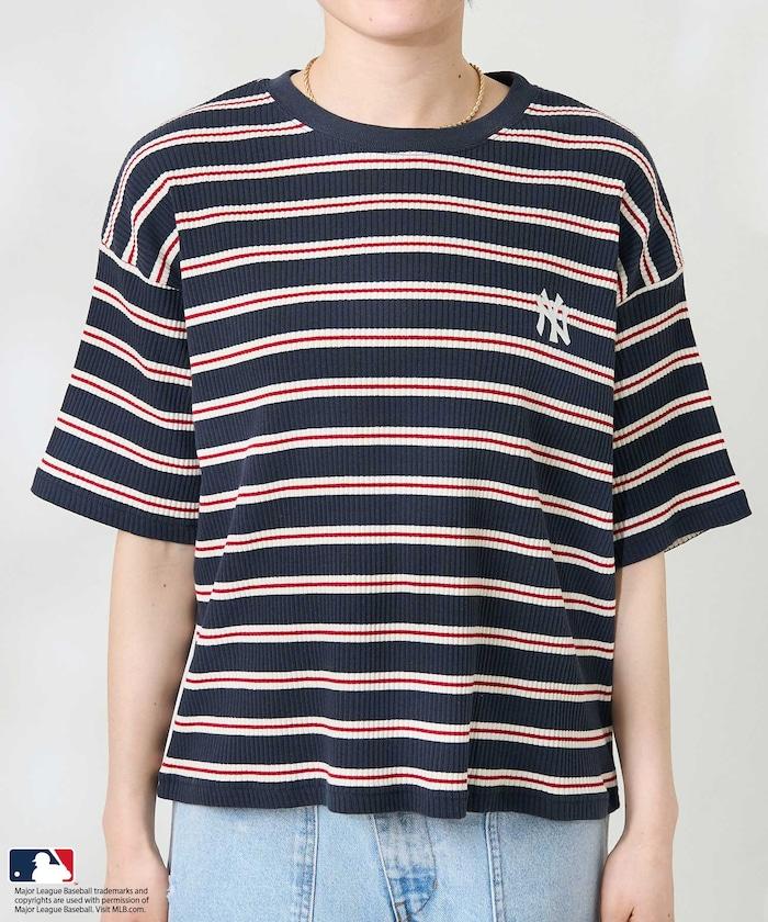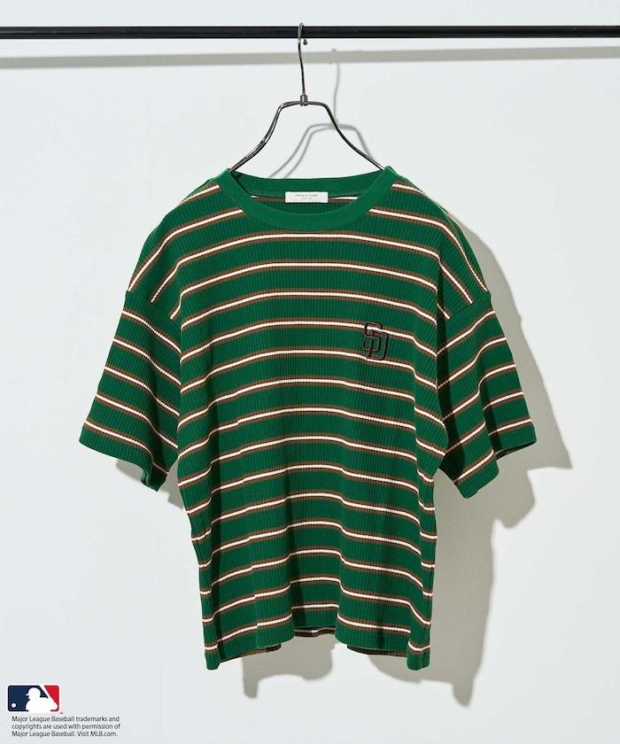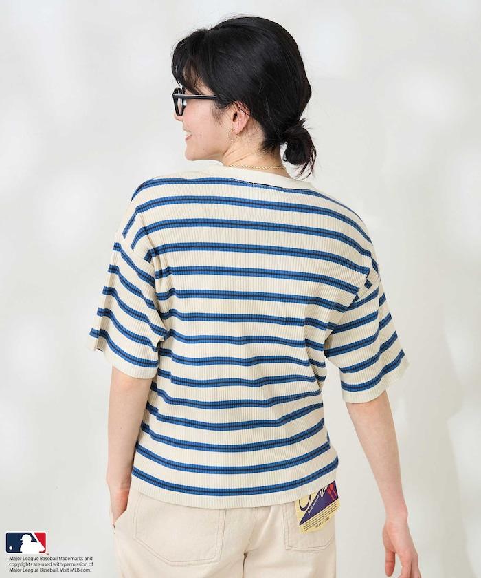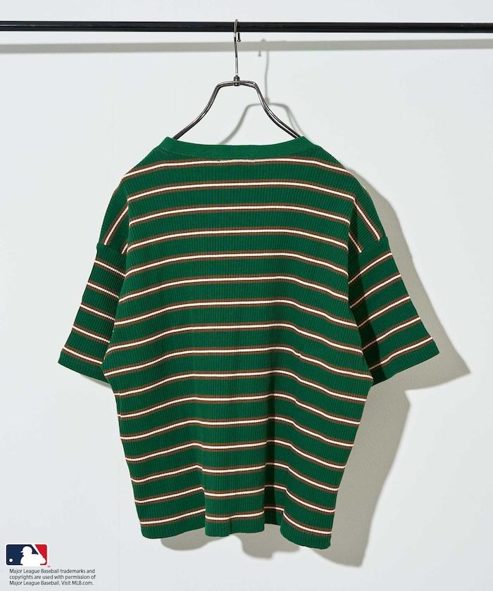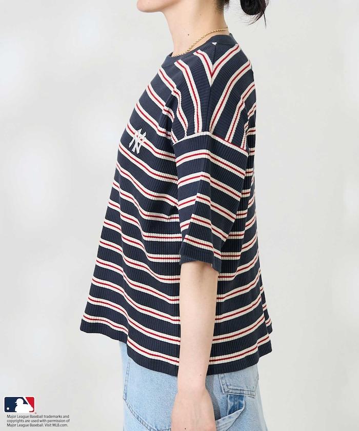 帶有多條紋裝飾的 MLBT 襯衫,烘托季節氣氛。