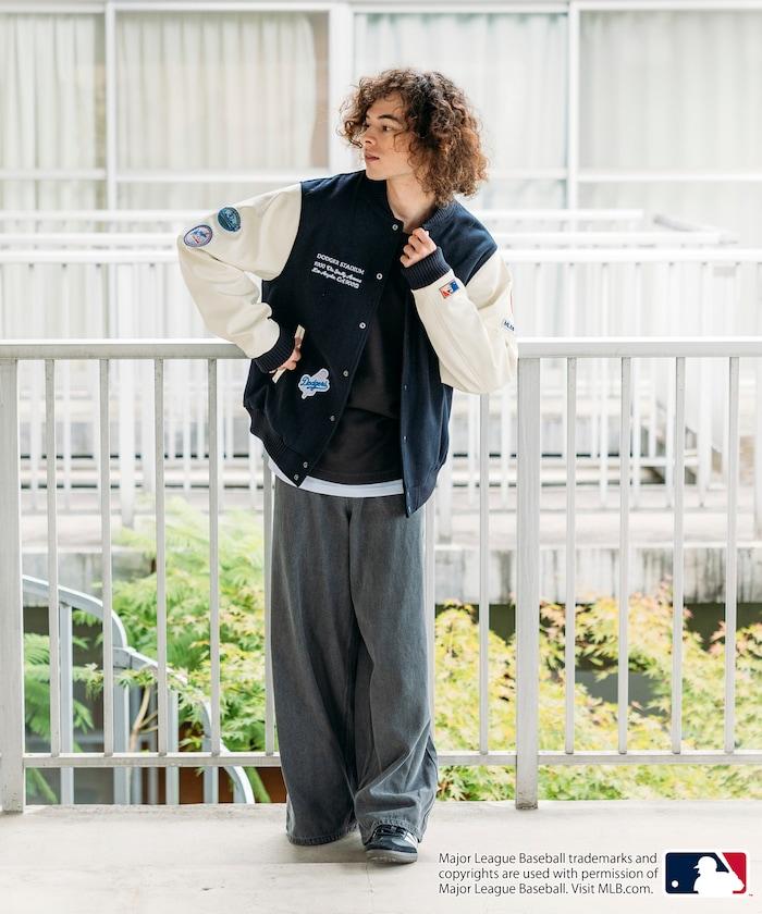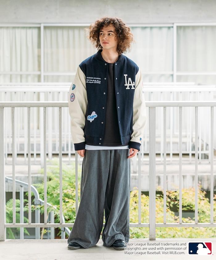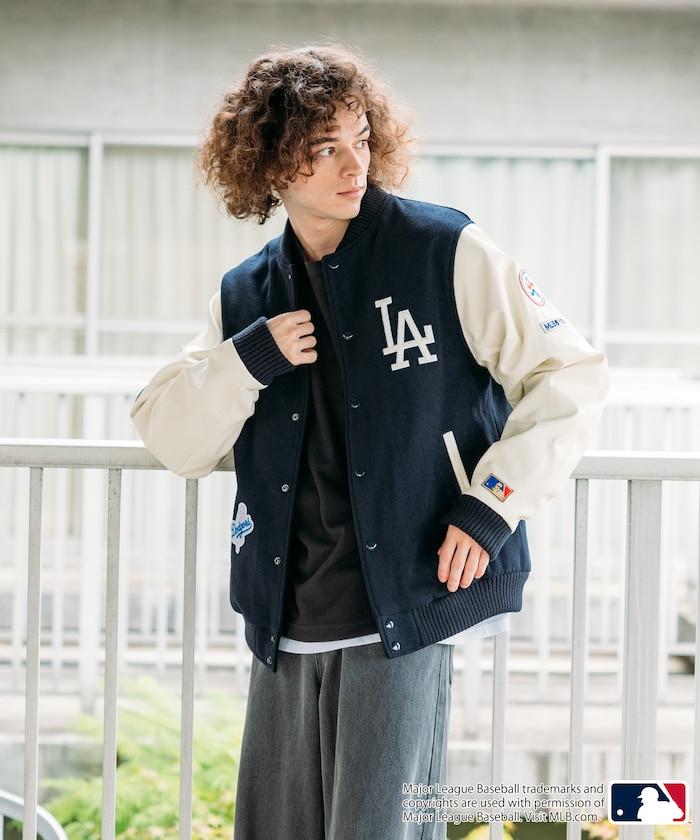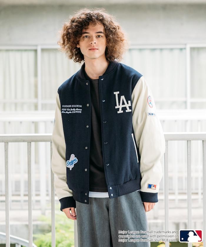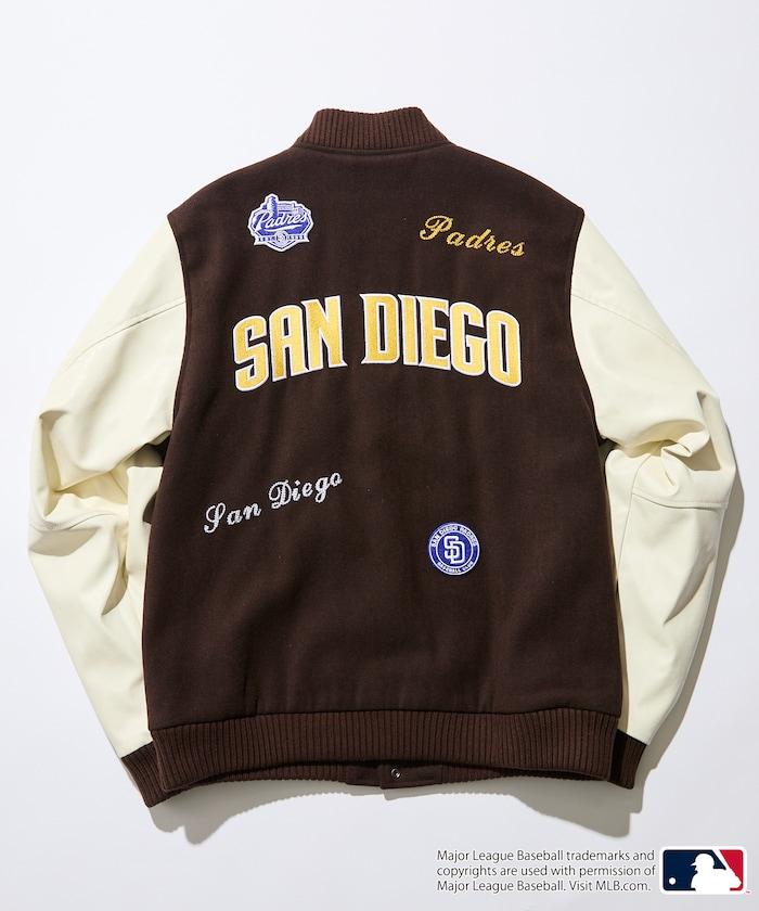 這款體育場夾克的刺繡和補丁上印有道奇隊、教士隊和洋基隊的隊徽,極具衝擊力。