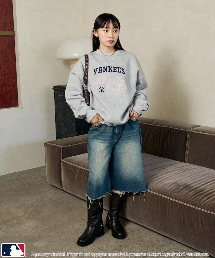 採用韓國時尚風格設計的可愛連衣裙。精緻的花朵與街頭風格的隊徽設計相結合,可愛至極,讓這款單品成為你造型中的明星。