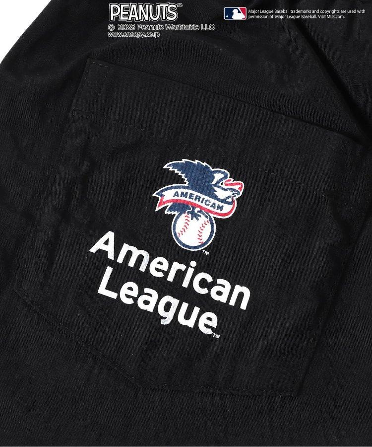 寬大、易於活動的四分之一長半身褲上繡有醒目的美國聯盟和全國聯盟圖案。