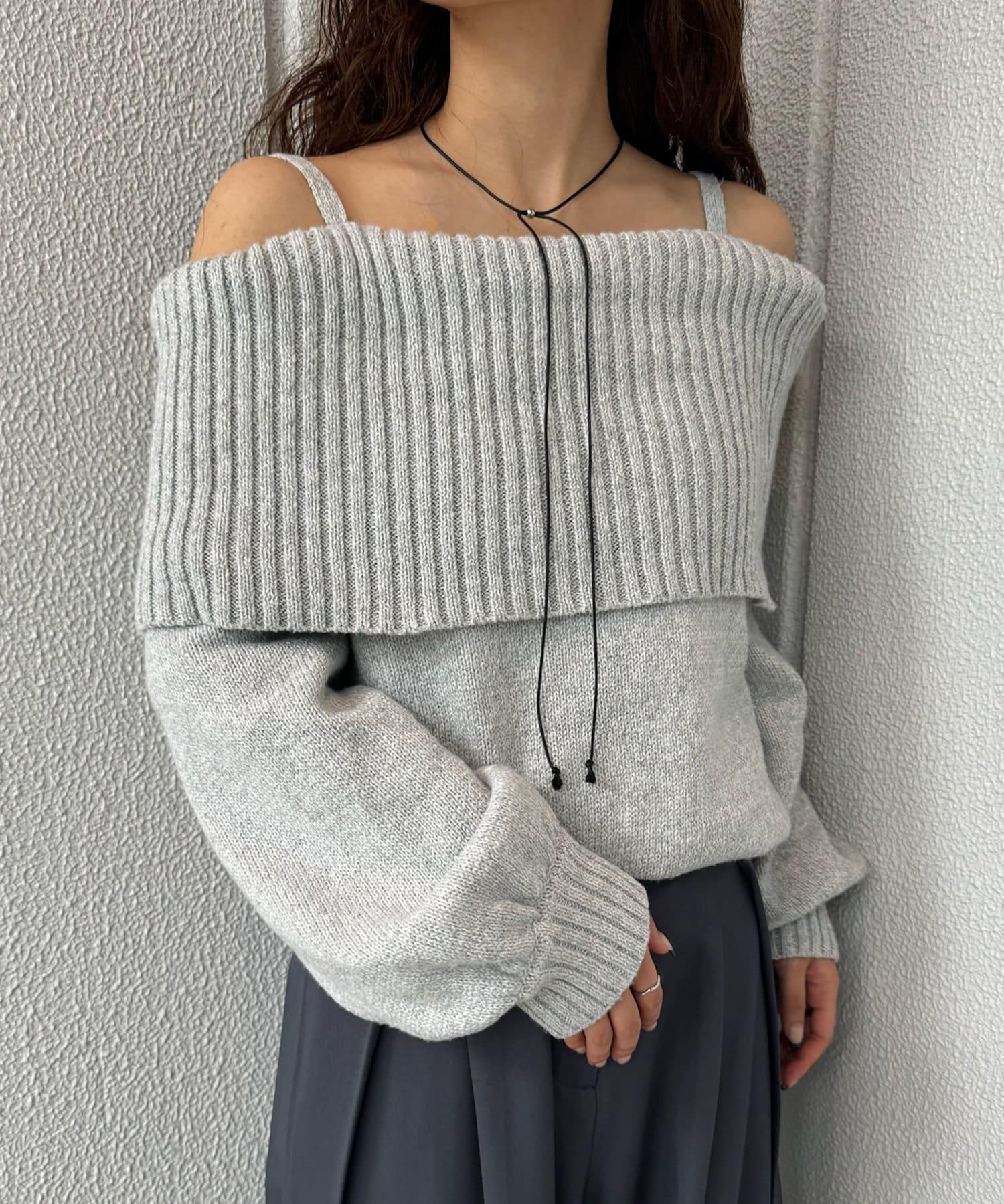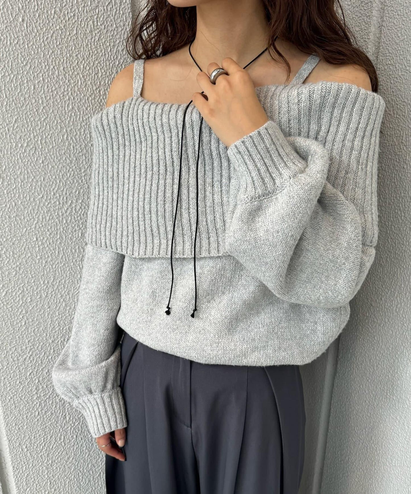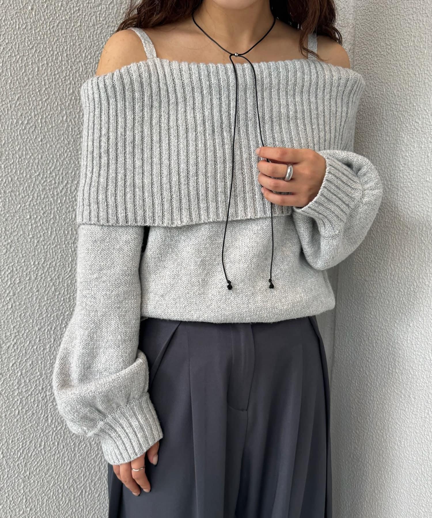 露肩設計配以垂直羅紋,使肩部線條和臉部看起來更加流暢!