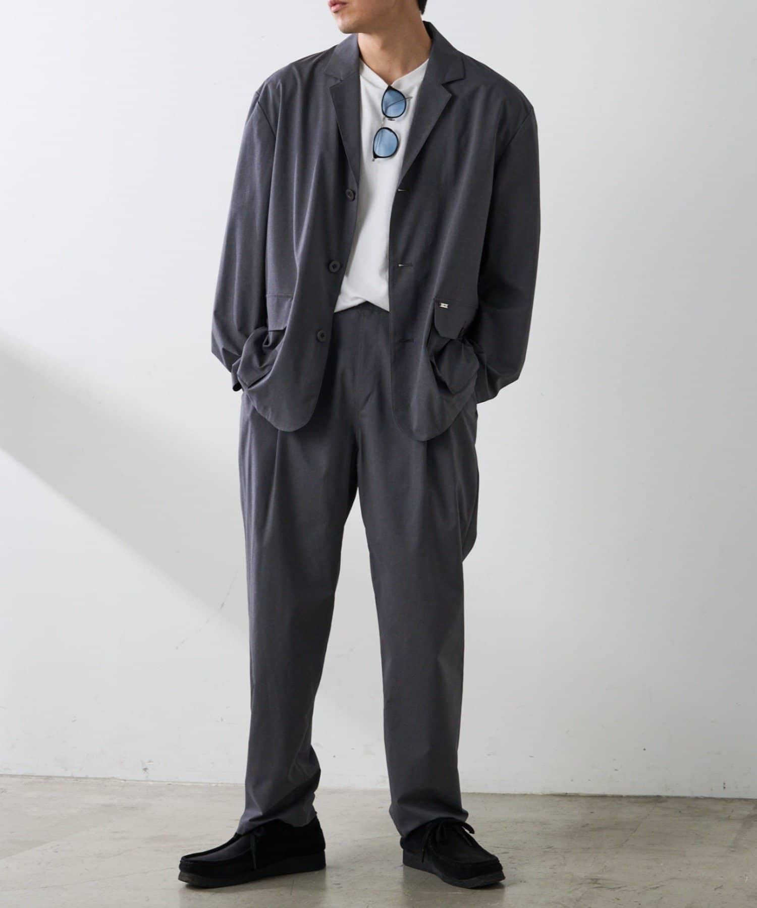 採用結實而有彈性的面料打造出的輪廓,即使只穿一件 T 恤也很好看。