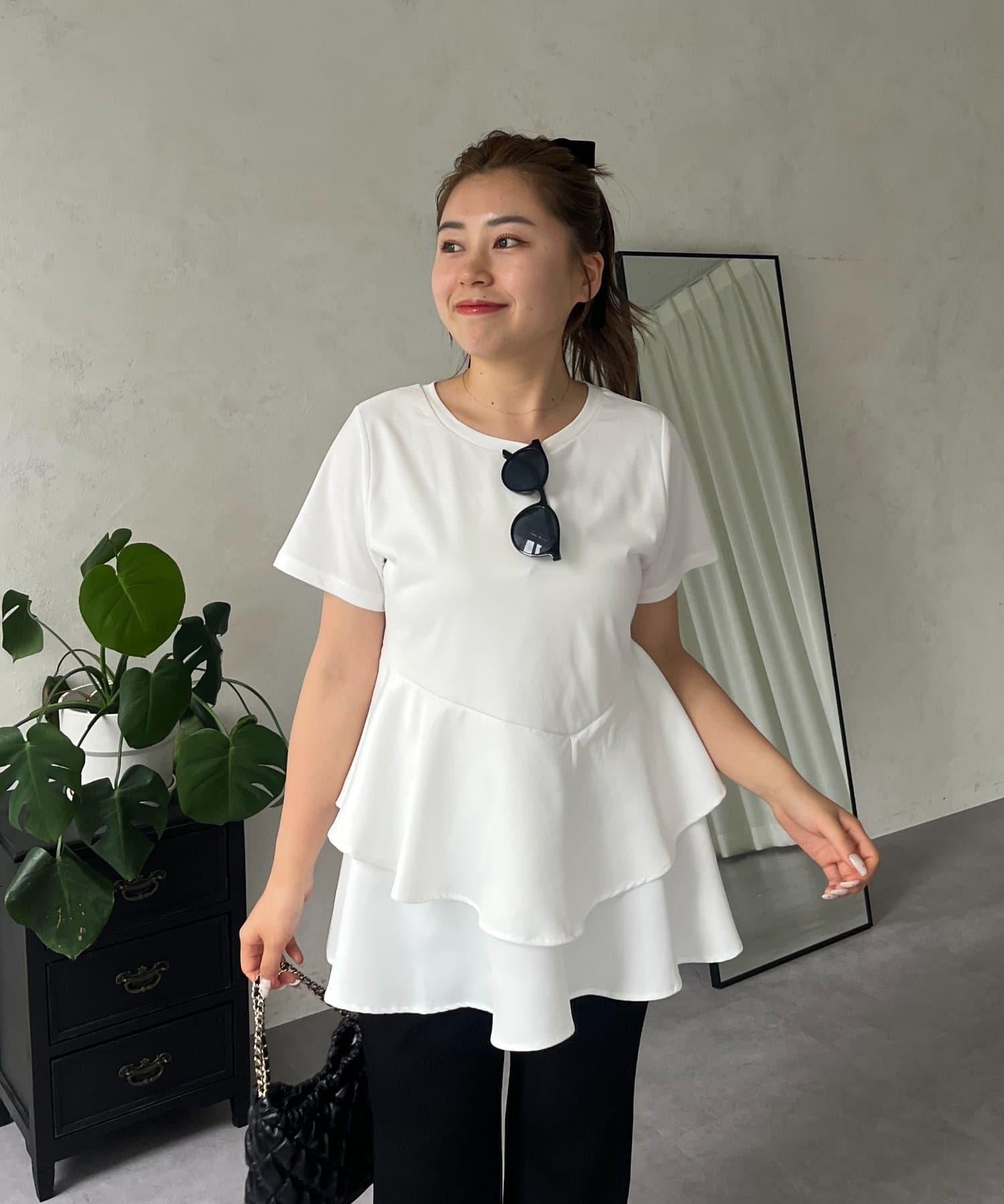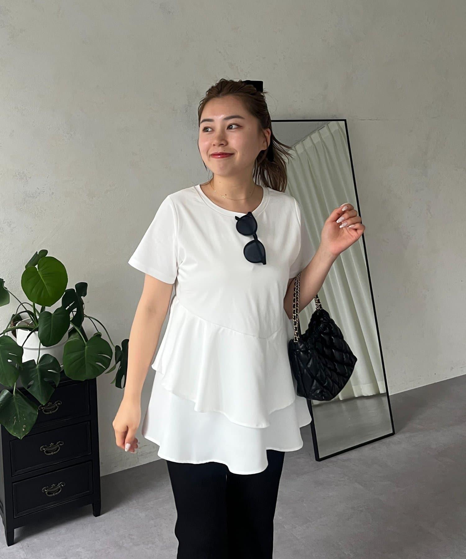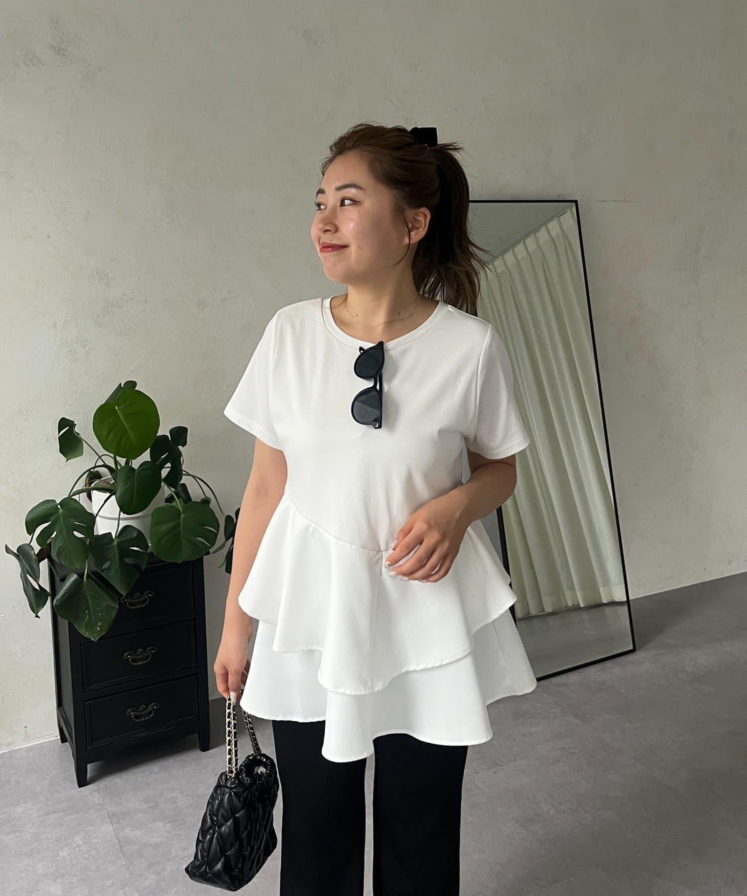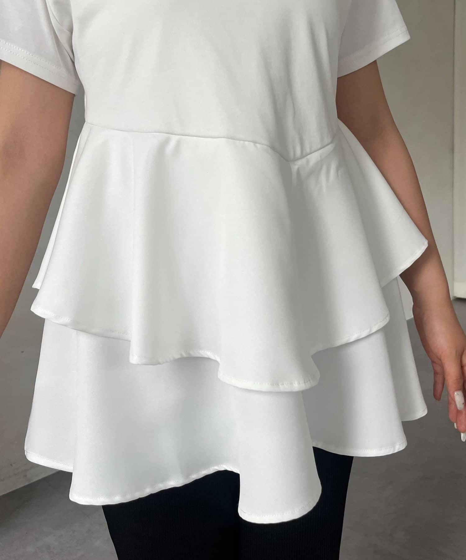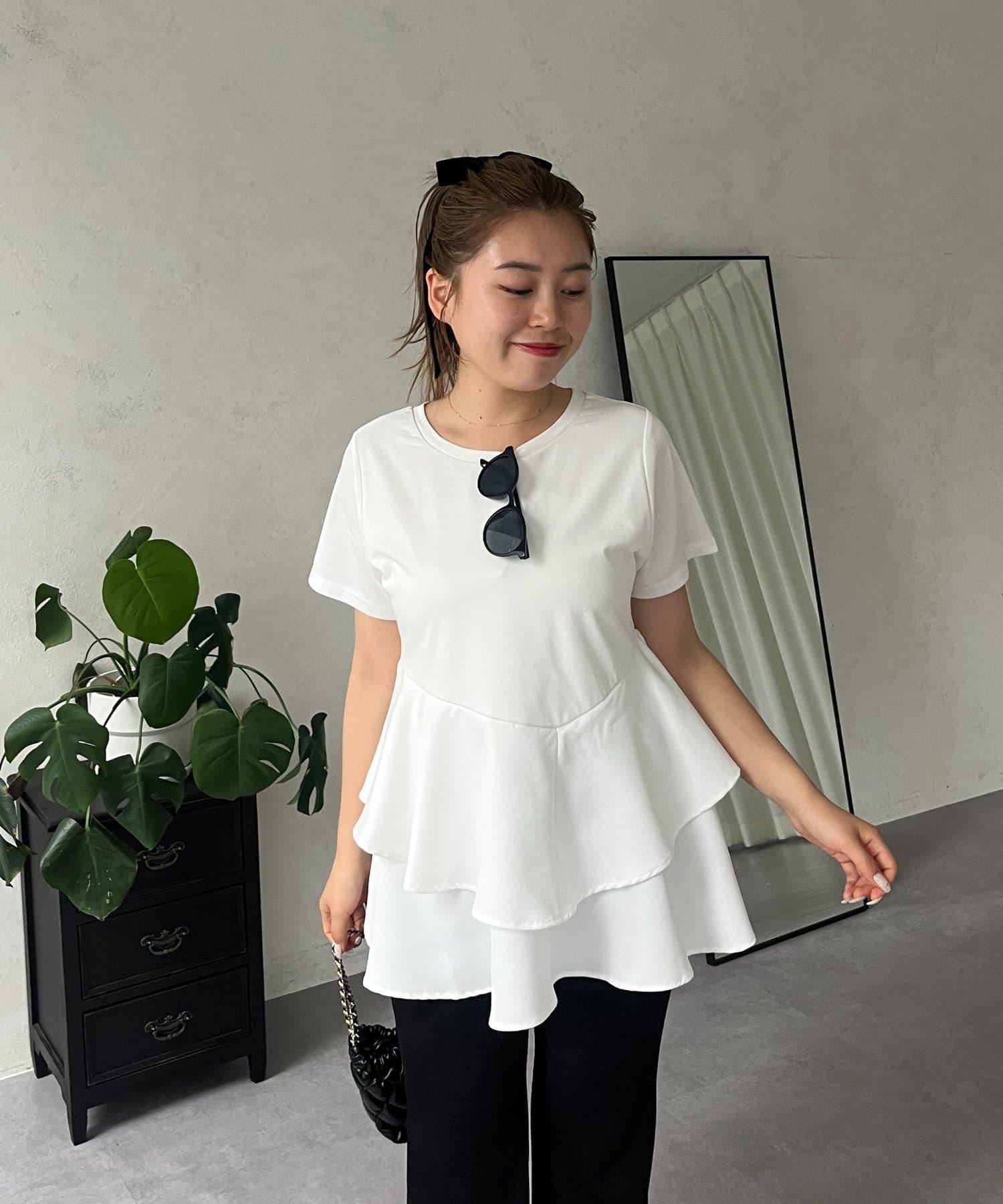 【MOMO】不對稱荷葉邊拼接荷葉邊T恤