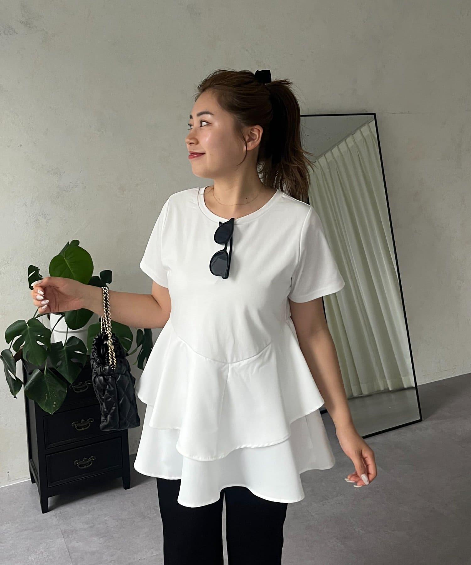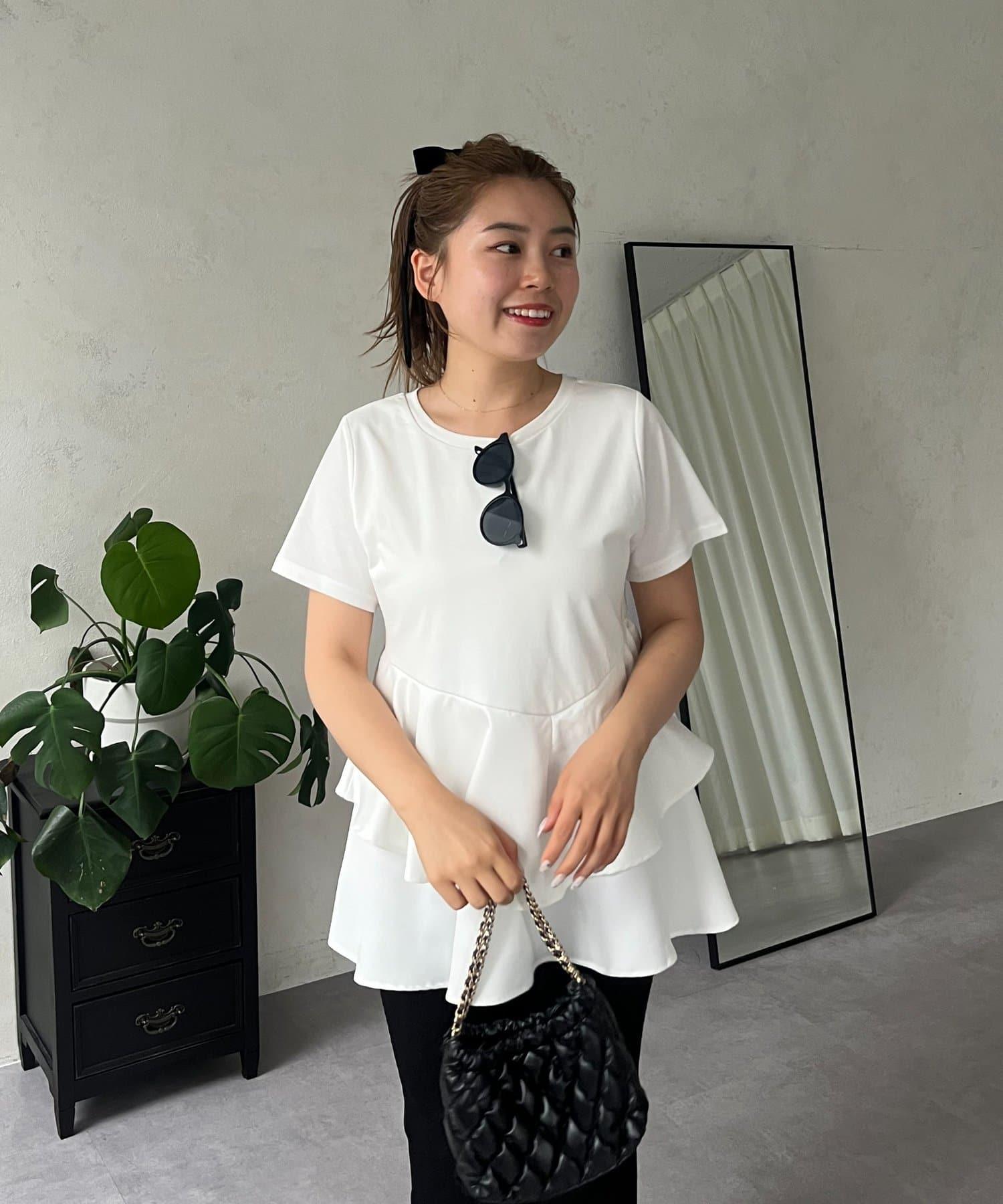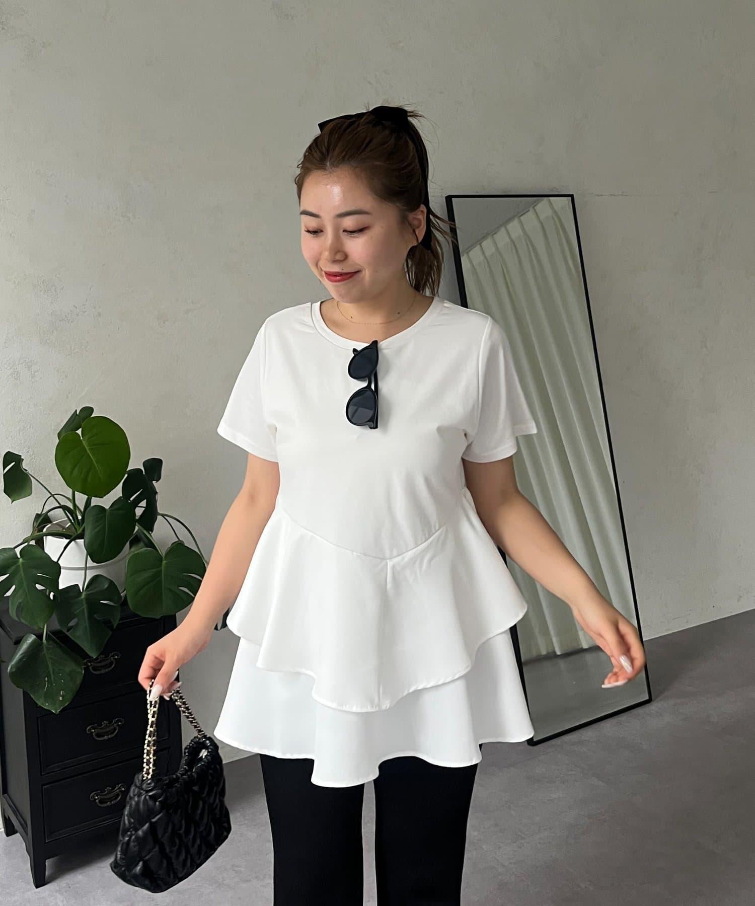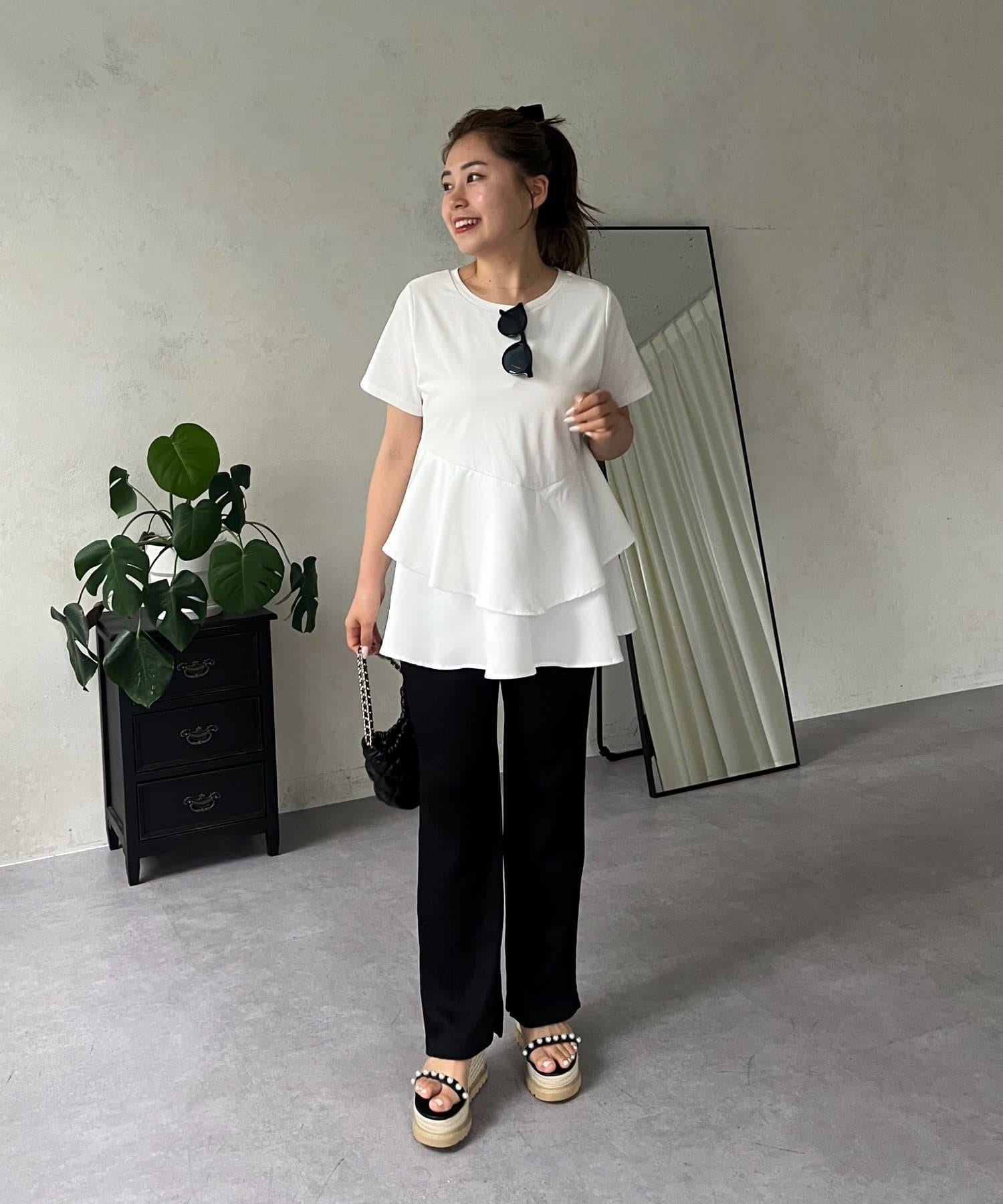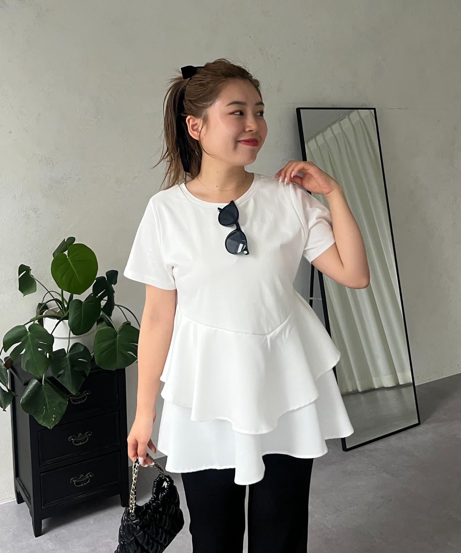 【MOMO】不對稱荷葉邊拼接荷葉邊T恤